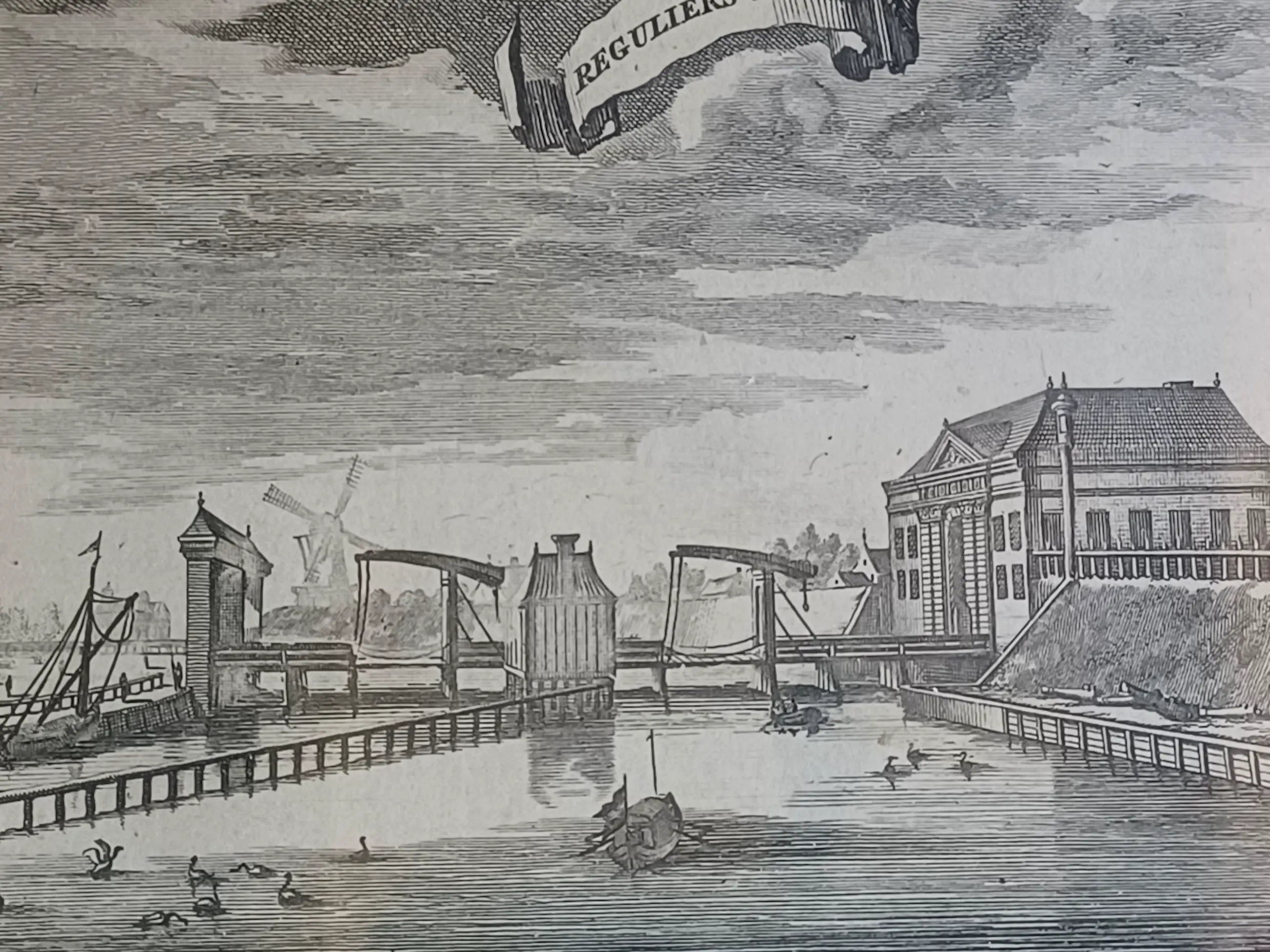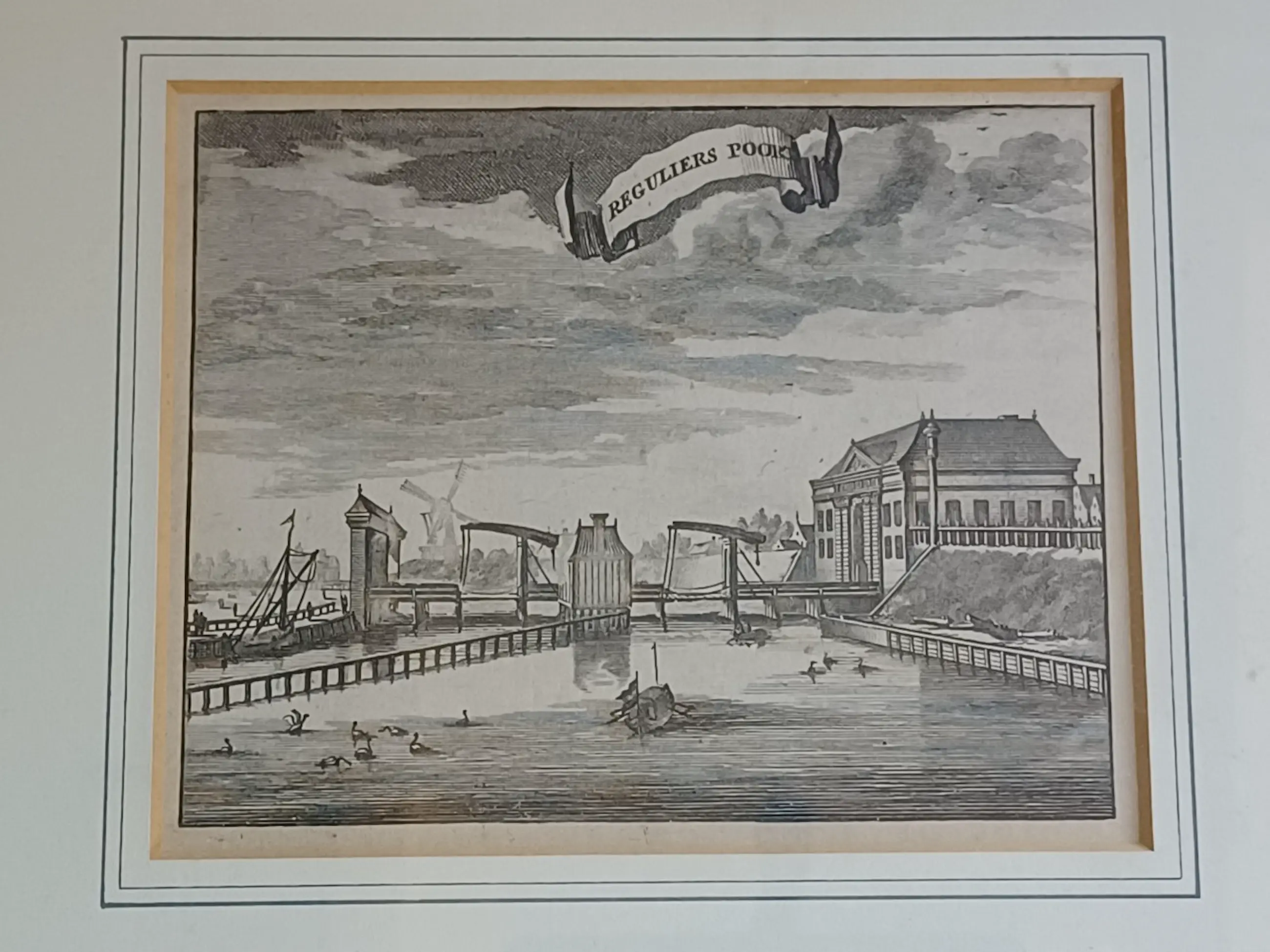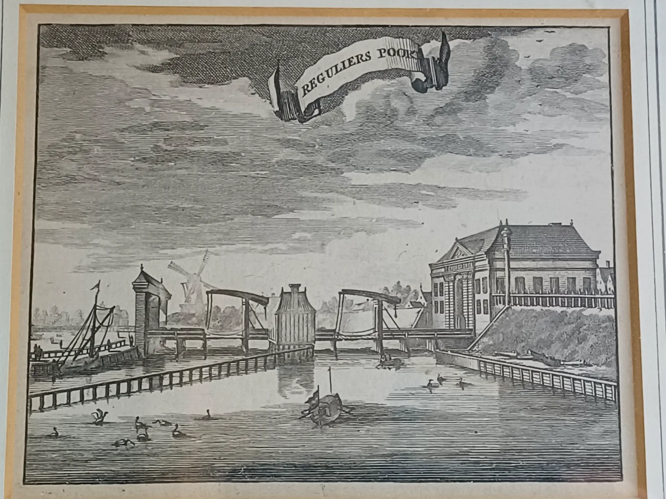 REGULIERS POORT Kopergravure, uitgegeven in 1693 te Amsterdam in Beschryvinge van Amsterdam, (...), Casparus Commelin.