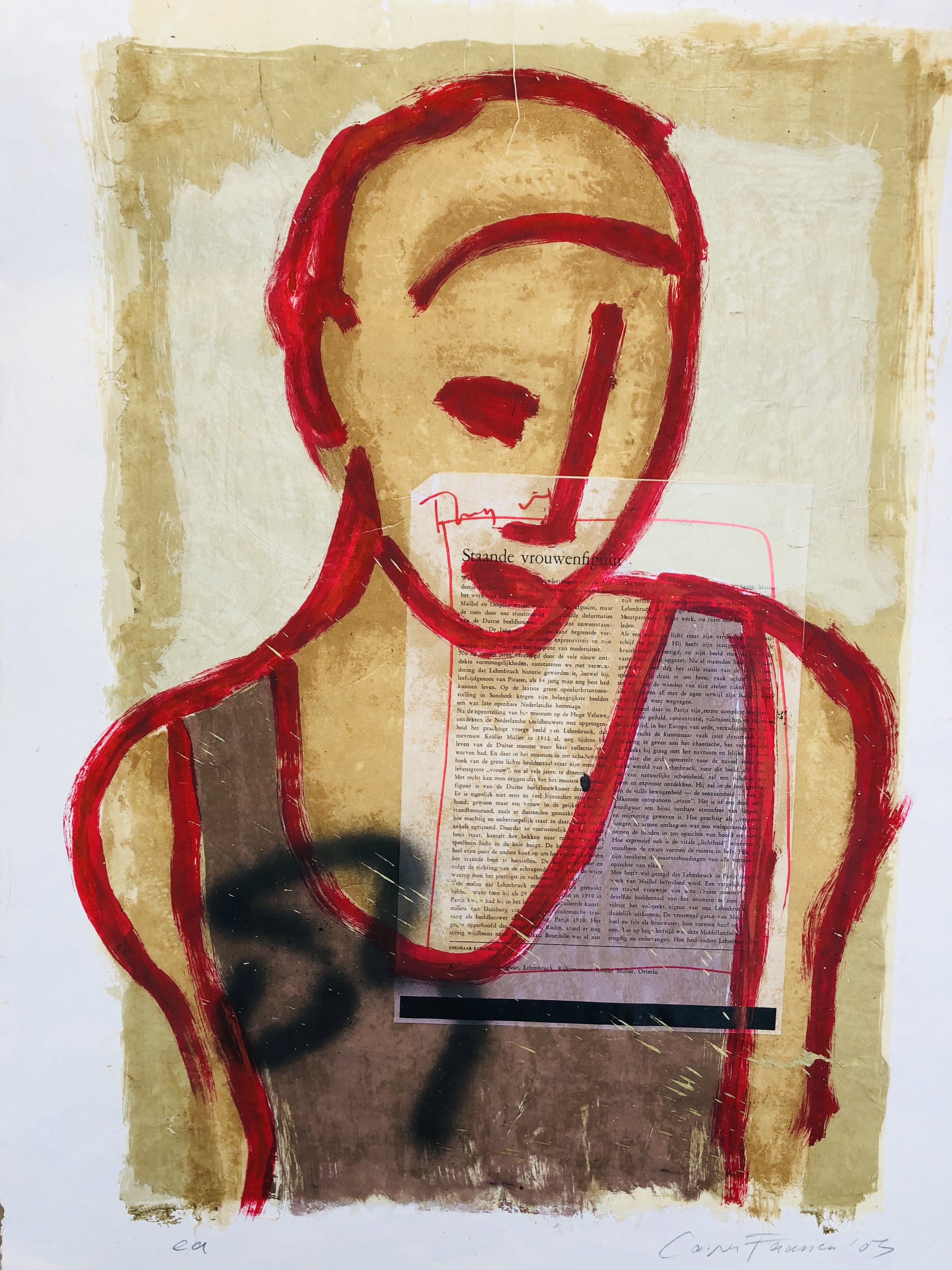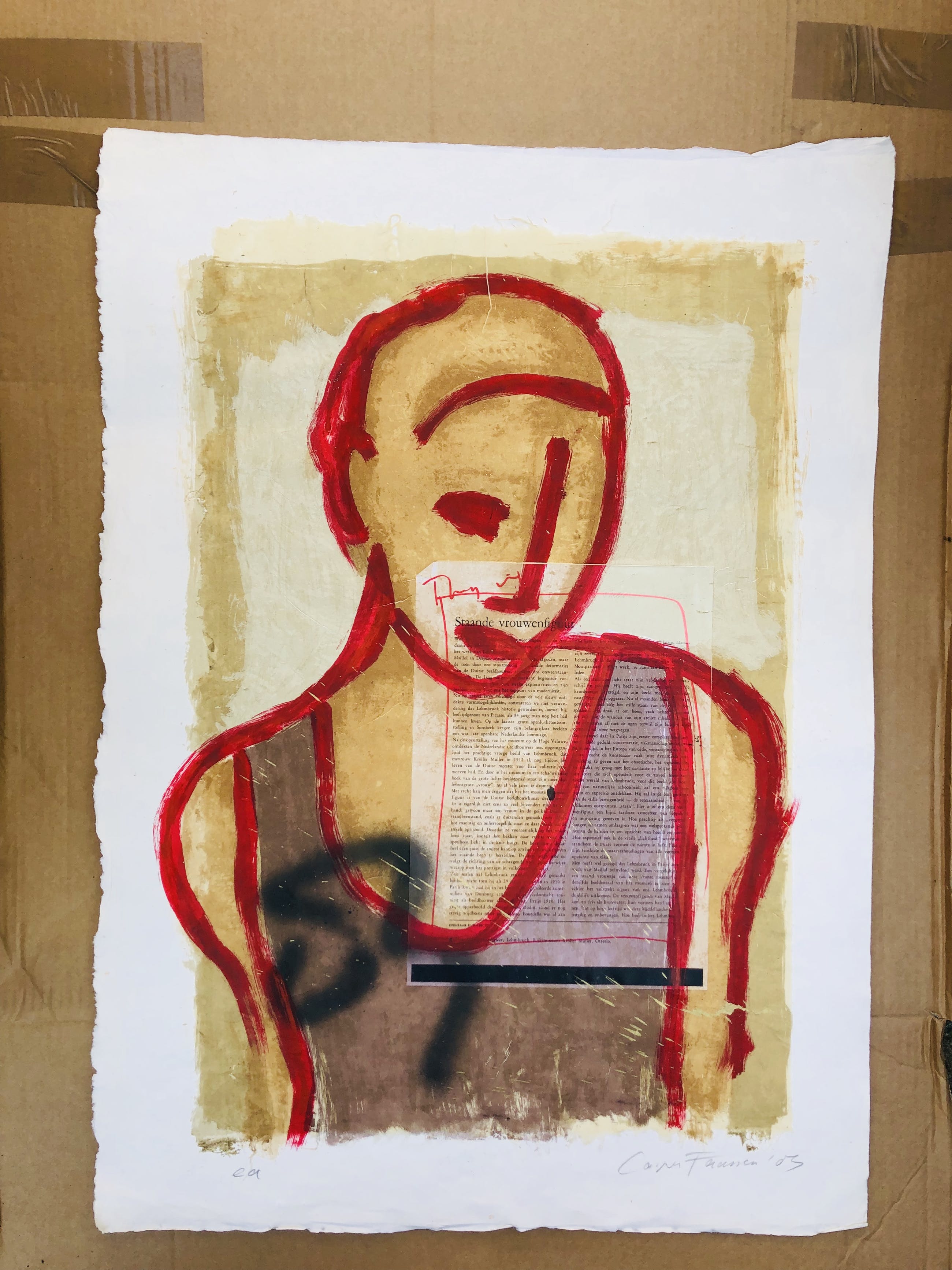 Hand bewerkte(acryl verf en goud verf en spraypaint.) zeefdruk/collage ( boekpagina's) van Casper Faassen. Elke zeefdruk uit deze serie is uniek, omdat deze collage is bewerkt door de kunstenaar. Het werk verkeert in perfecte conditie.U kunt het werk vooraf komen bekijken bij galerie Rotor of na aankoop ophalen. het werk kan ook verzonden worden via aangetekende post.