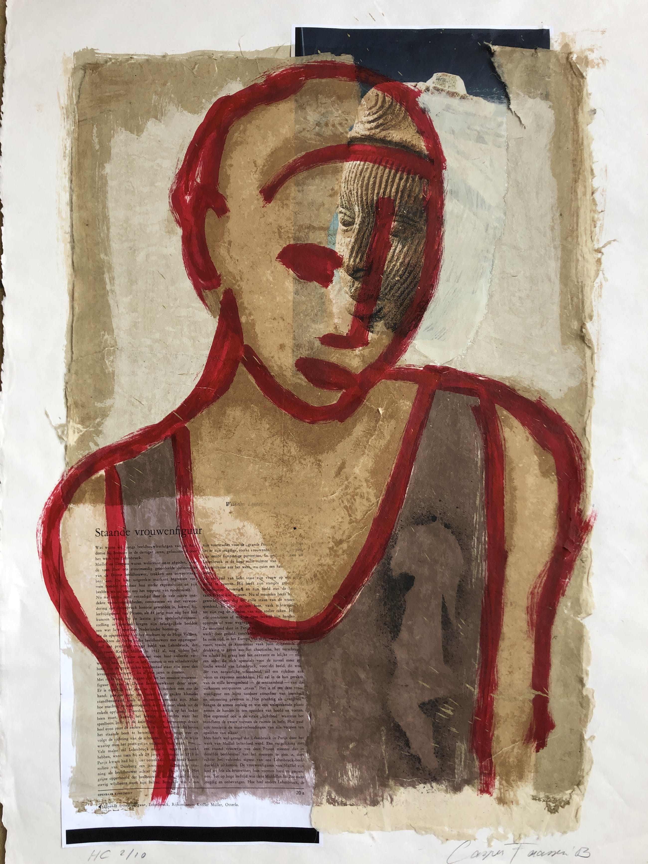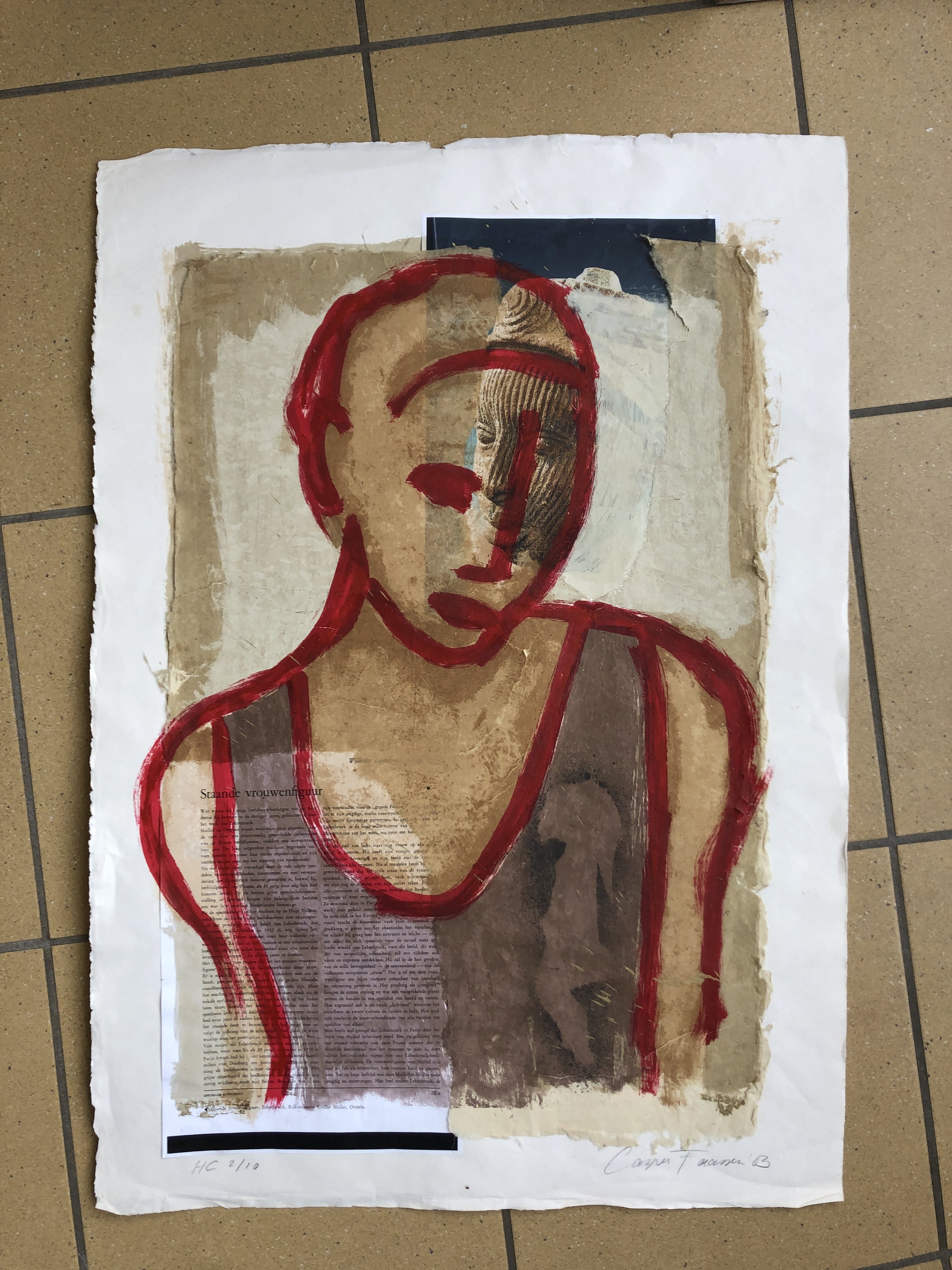 Hand bewerkte(acryl verf en goud verf.)  zeefdruk/collage ( boekpagina's) van Casper Faassen. Elke zeefdruk uit deze serie is uniek, omdat deze collage is bewerkt door de kunstenaar. Het werk verkeert in perfecte conditie.U kunt het werk vooraf komen bekijken bij galerie Rotor of na aankoop ophalen. het werk kan ook verzonden worden via aangetekende post.