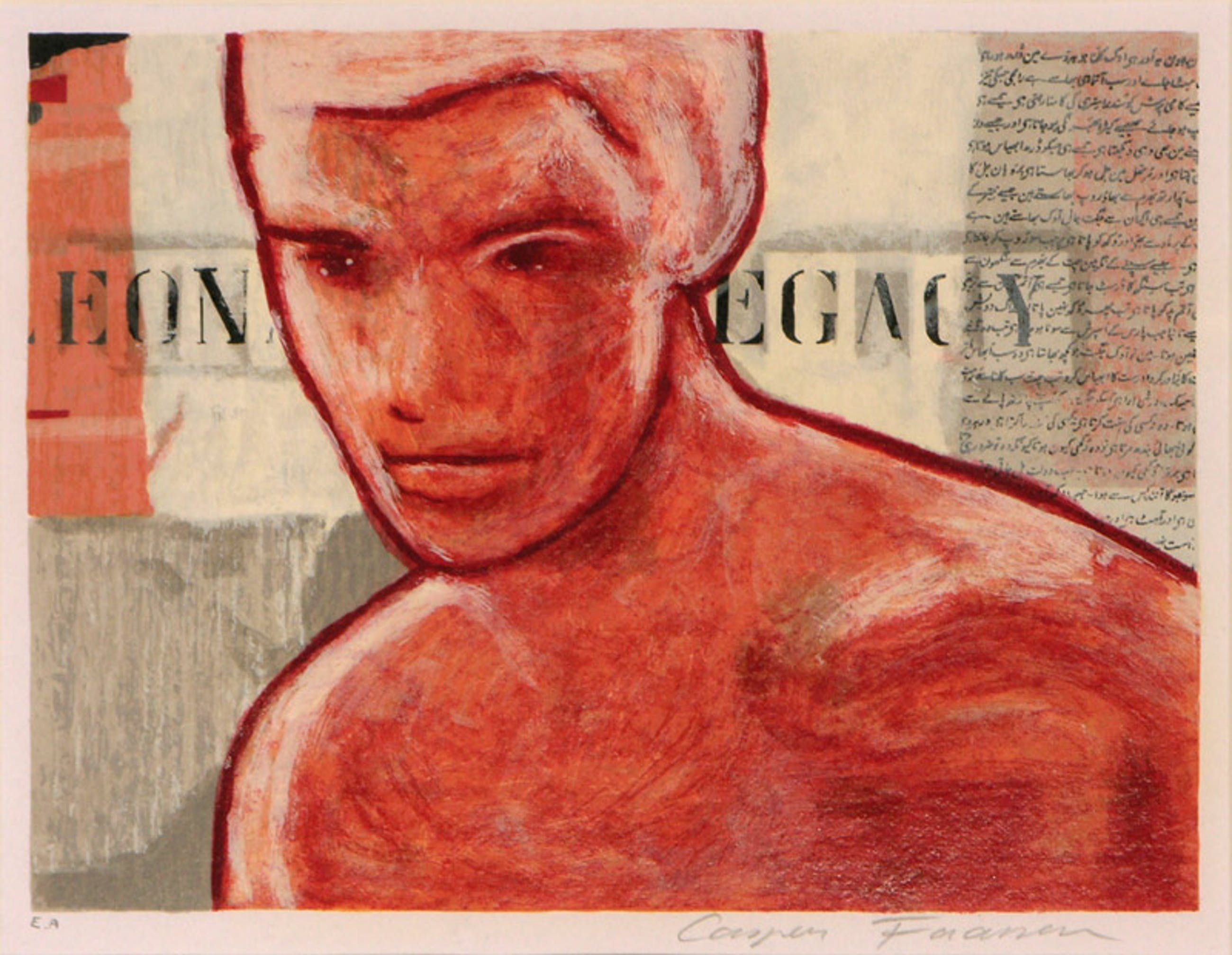 Casper Faasen ingelijst in een blanke lijst, getiteld Man (e.a.)In goede staat achter glas.