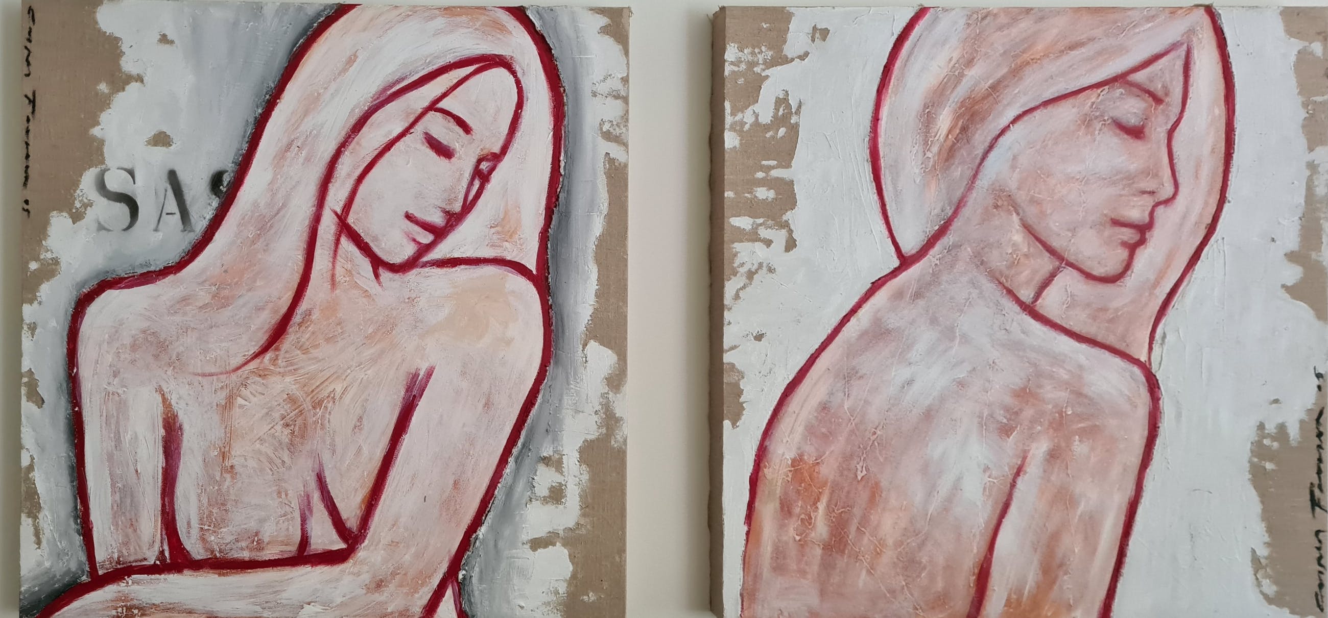 2 prachtige werken van Casper Faassen, omstreeks 2004. Op jute.