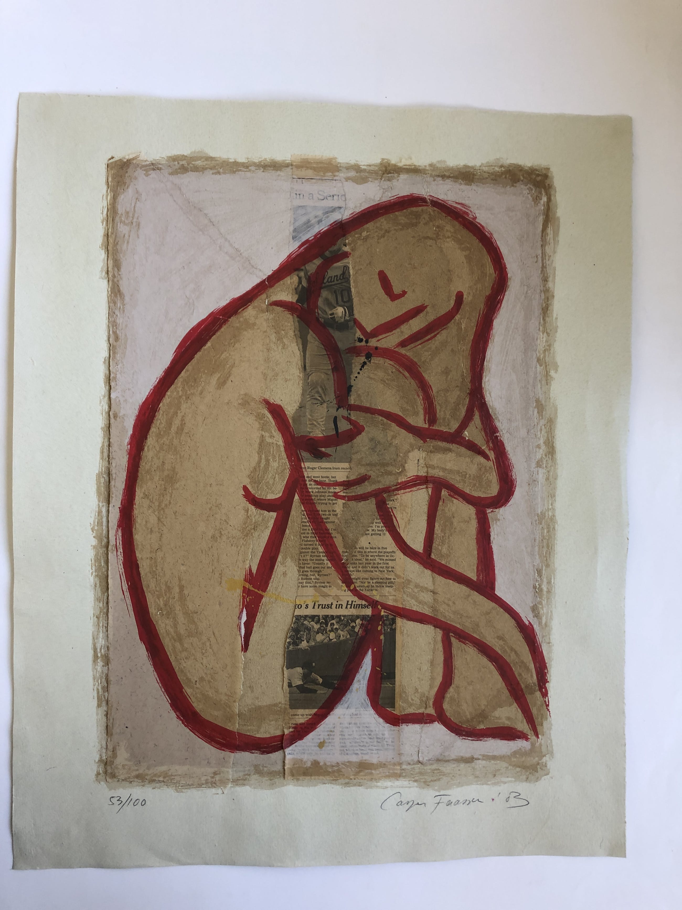 Hand bewerkte(acryl verf en goud verf.)  zeefdruk/collage ( boekpagina's) van Casper Faassen. Elke zeefdruk uit deze serie is uniek, omdat deze collage is bewerkt door de kunstenaar. Het werk verkeert in perfecte conditie.U kunt het werk vooraf komen bekijken bij galerie Rotor of na aankoop ophalen. het werk kan ook verzonden worden via aangetekende post.