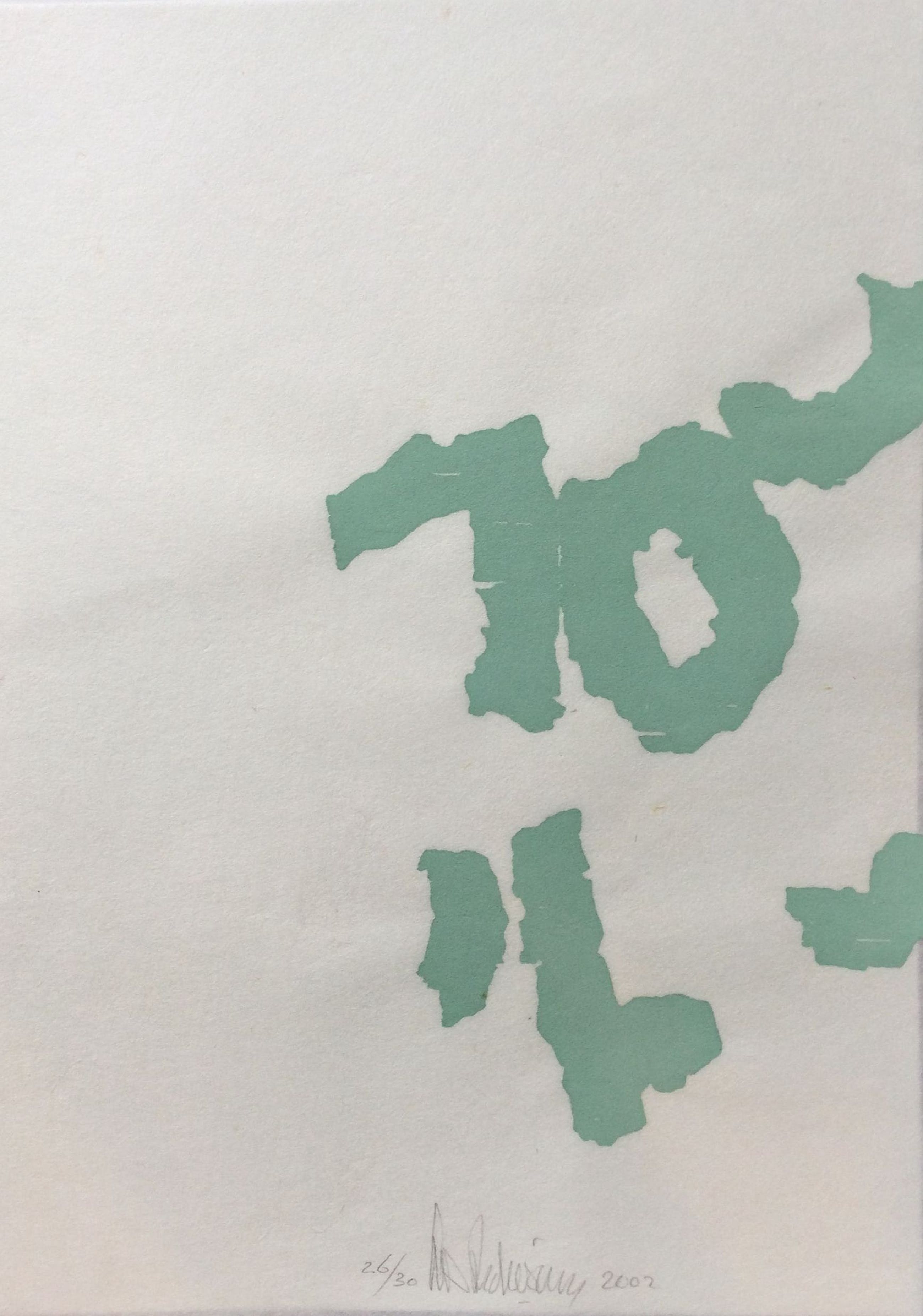C5163-A1, Cees Andriessen, Abstracte voorstelling, onderdeel van Edition Gogh 2002, zonder lijst, houtsnede op geschept papier, papiermaat 30 x 22 cm, middenonder handgesigneerd, oplage 26/30, gedateerd 2002.