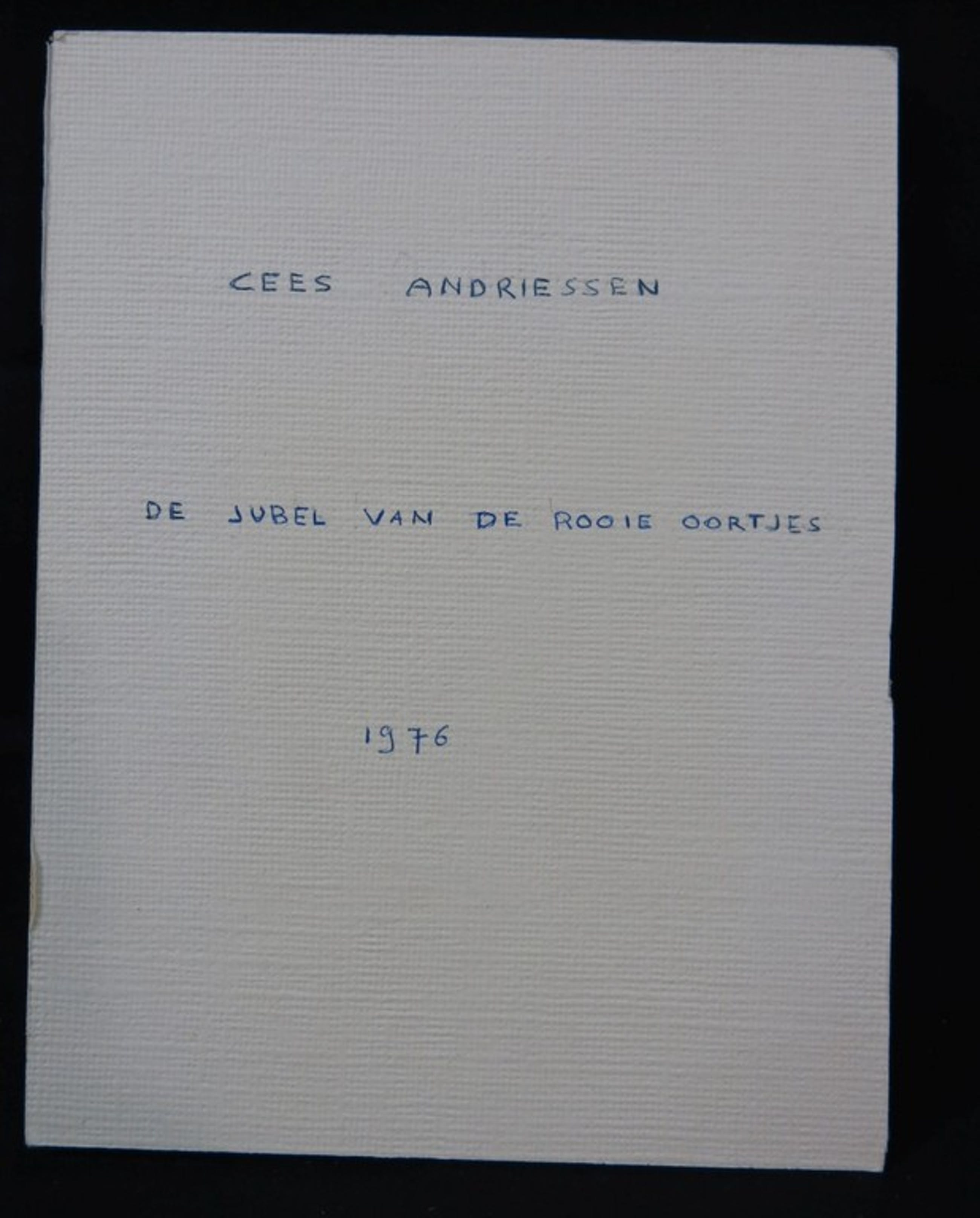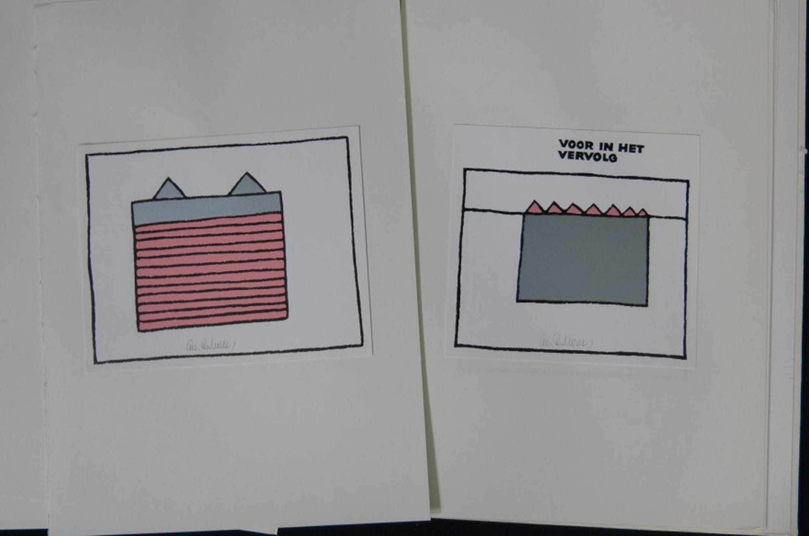 De oorspronkelijke uitgave bevat 24 kleine lino’s, dit mapje bevat 17 niet ingebonden pagina’s. Niet ingebonden, kartonnen omslag met gelijmd voorblad.