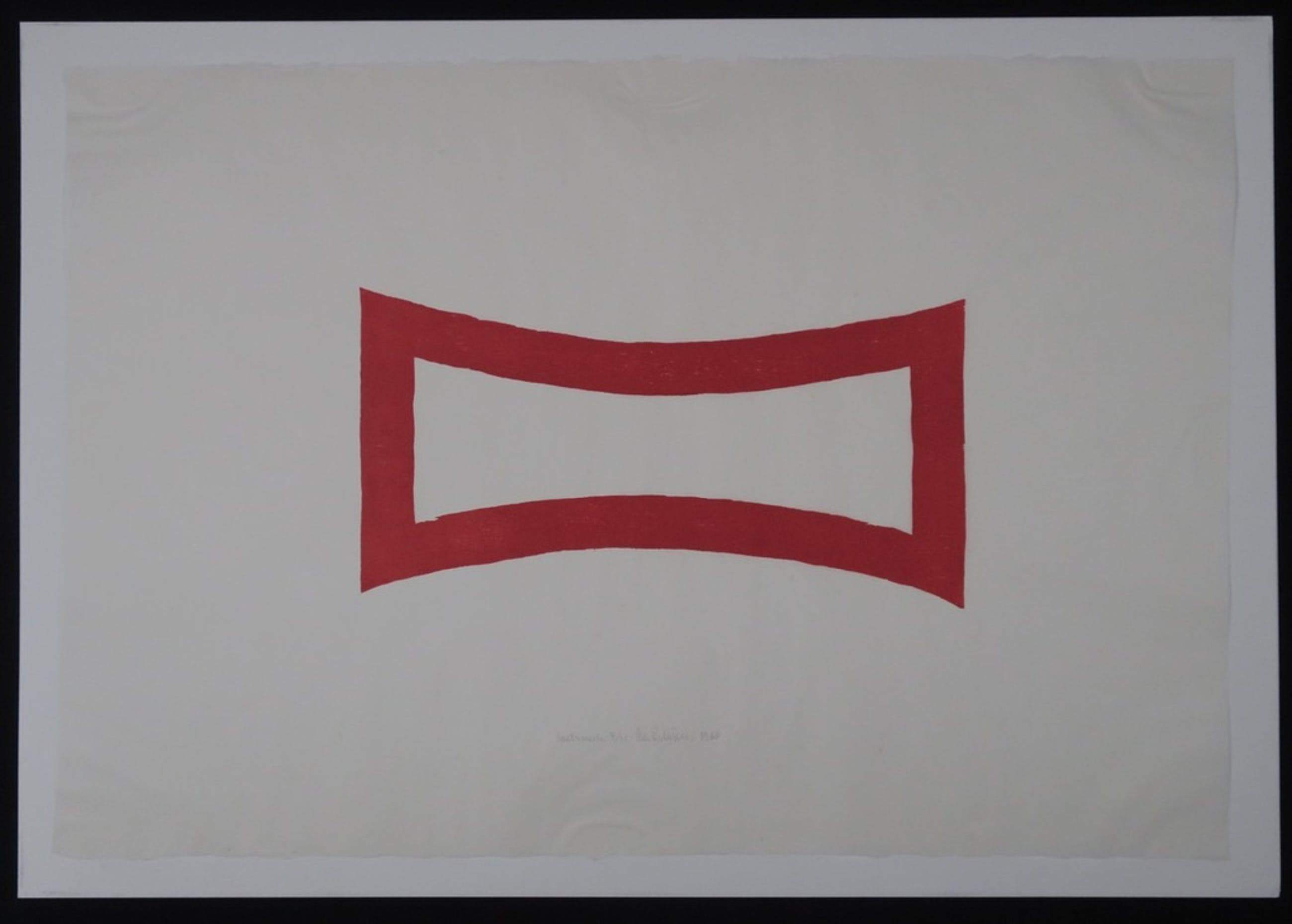 Materiaal: Houtsnede op Rijstpapier, randen op onderblad geplakt.