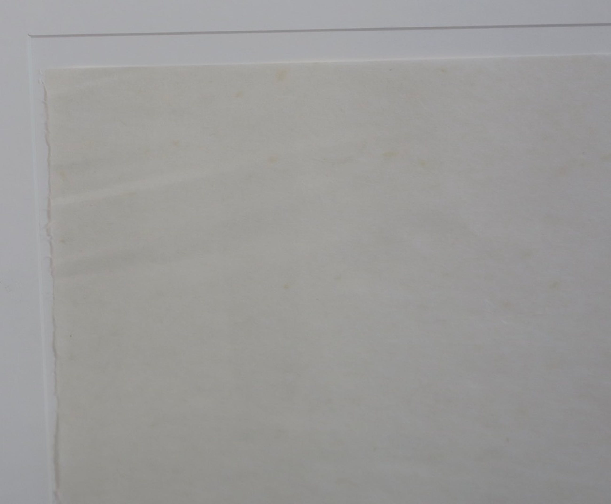 Conditie: In goede staat, maar met lichte kreuk/vouwlijntjes en oxidatiestipjes in het blad, haast onvermijdelijk bij dit fragiele papier.