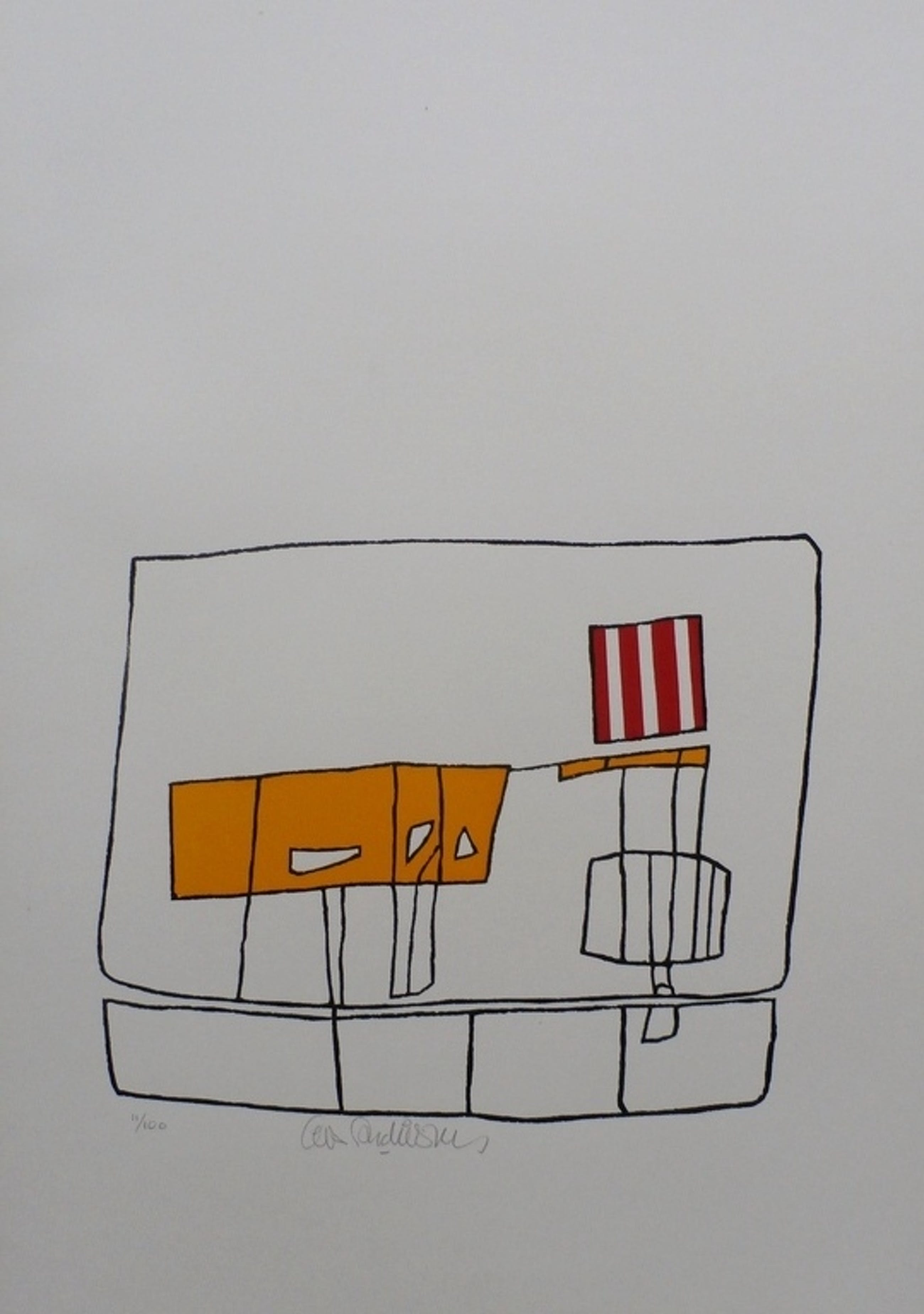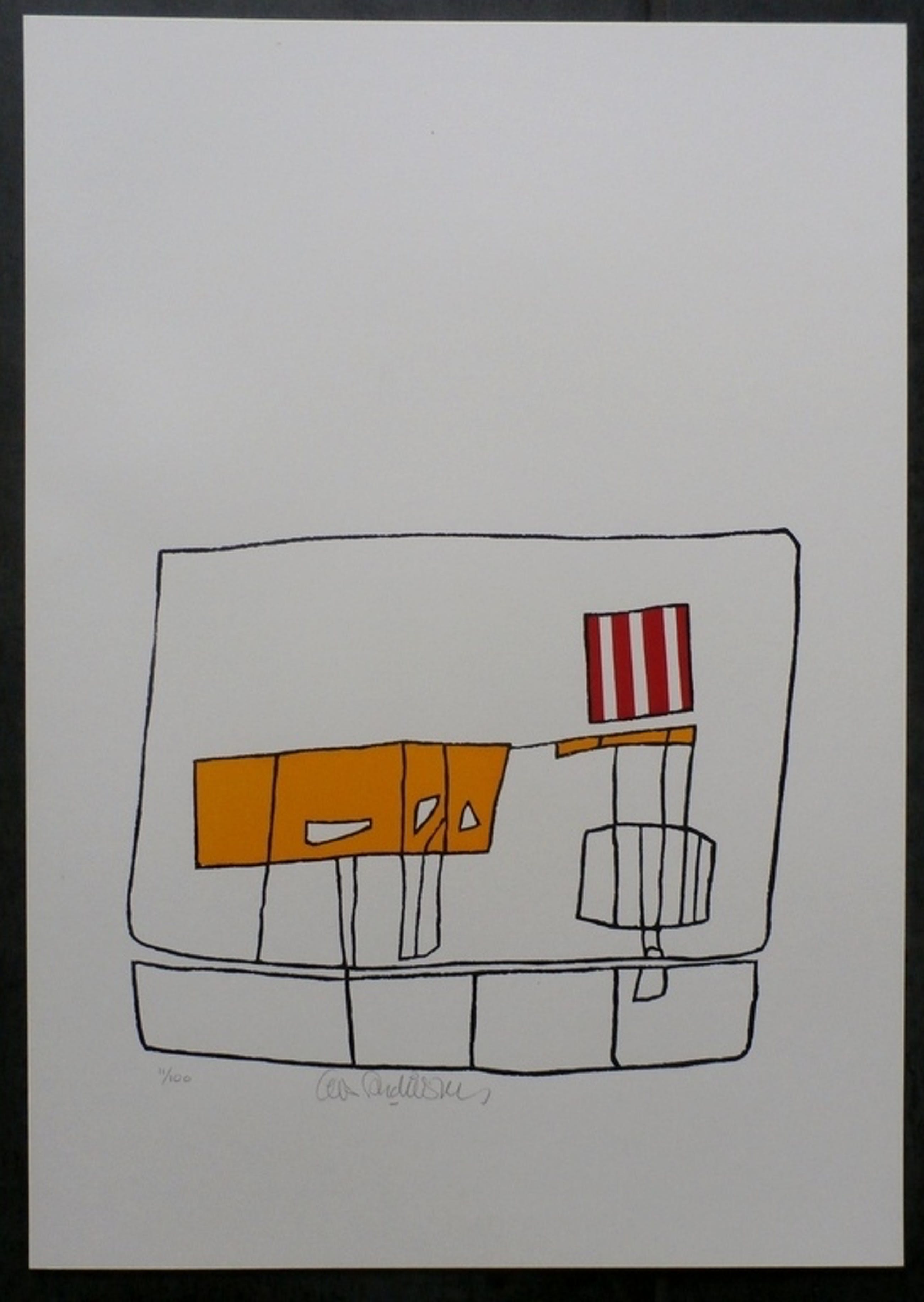 Linosnede van Cees Andriessen uit 1974. Titel: Bollewop. Nummer: 11/100. Middenonder met potlood gesigneerd door de kunstenaar. Afmetingen blad: H42 x b 30 cm. Conditie: in goede staat. De authenciteit van dit werk wordt volledig gegarandeerd. Een certificaat van echtheid kan, op verzoek, worden meegeleverd.