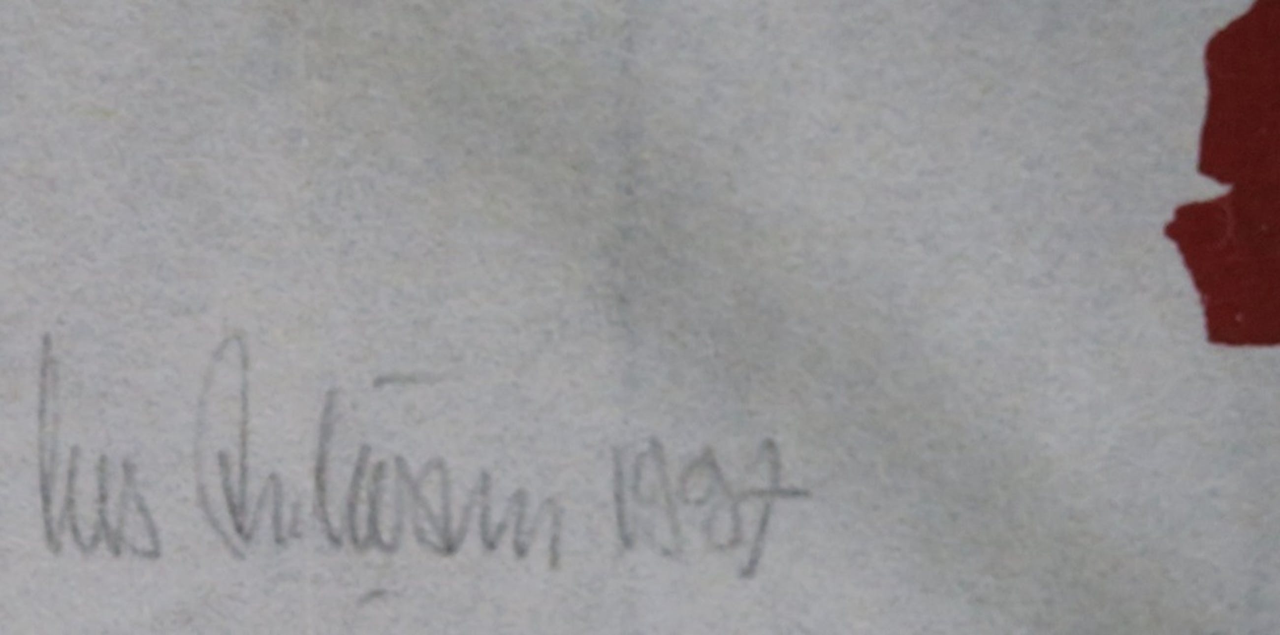 Kleine beschadigingen aan lijsten worden niet beschreven! Bij ingelijste werken achter glas vermelden wij altijd glasschade. Passe-partouts worden op geen enkele manier gegarandeerd en ook niet altijd meegezonden. Alleen als een werk niet uit het passe-partout te halen is, zal dit vermeld worden.