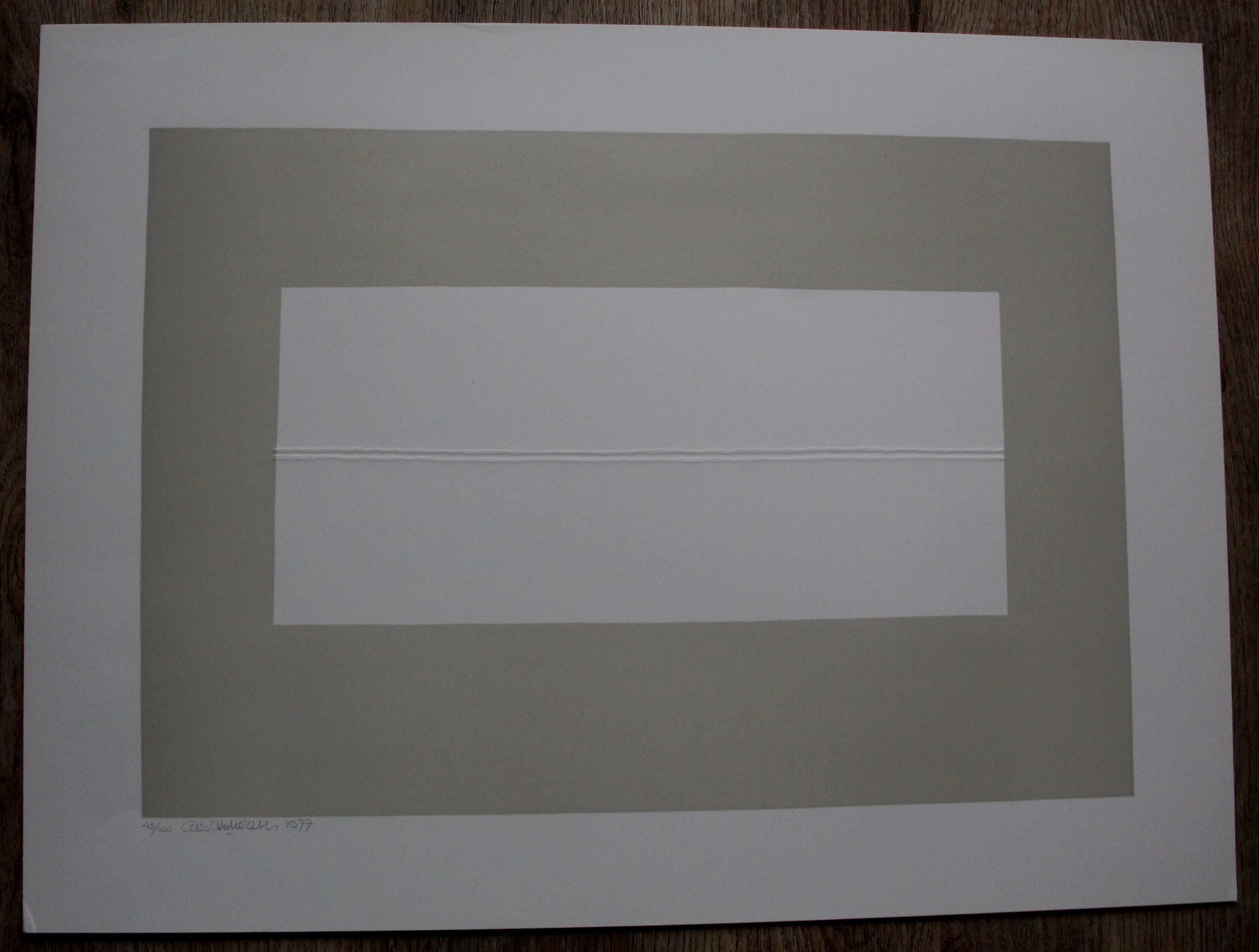 Linosnede van Cees Andriessen uit 1977. Oplage: 43/100. Afmetingen blad: H40 x b 53.5cm. Afmetingen voorstelling: H30 x b43.5cm. Het werk is links onderaan, met potlood, gesigneerd door de kunstenaar. De authenticiteit van dit werk wordt volledig gegarandeerd. Een certificaat van echtheid kan, op verzoek, worden gemaild.