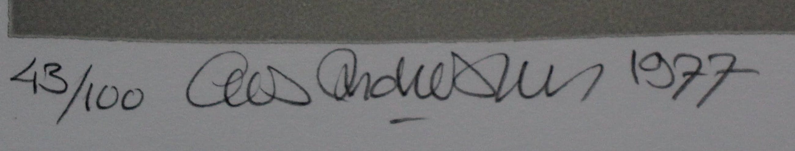 Linosnede/prägedruk van Cees Andriessen uit 1977. Oplage: 43/100. Afmetingen blad: H40 x b53.5cm. Afmetingen voorstelling: H30 x b43.5cm. Het werk is links onderaan, met potlood, gesigneerd door de kunstenaar. De authenticiteit van dit werk wordt volledig gegarandeerd. Een certificaat van echtheid kan, op verzoek, worden gemaild.