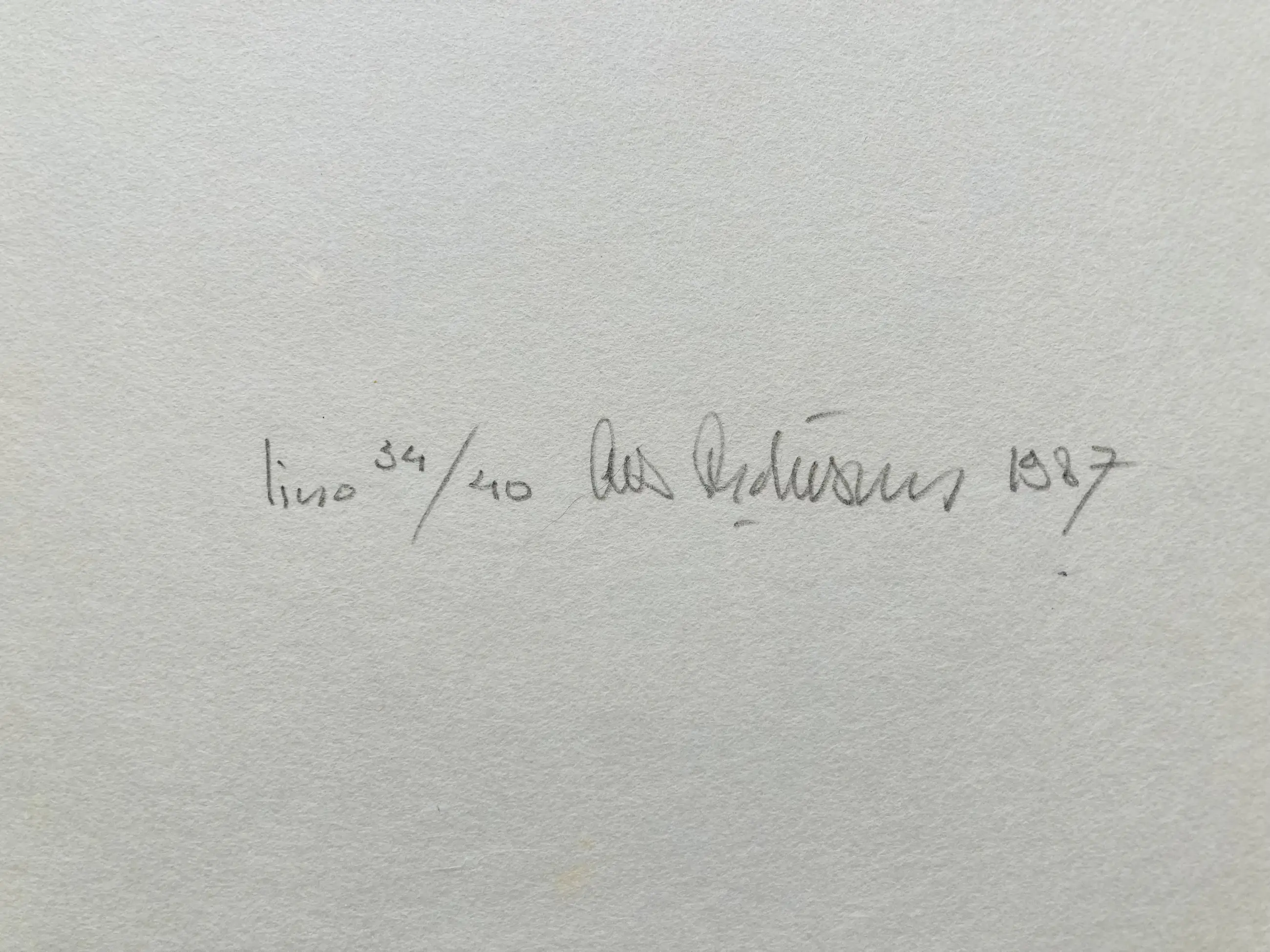 Gesigneerd en genummerd. De lino kan worden beoordeeld en/of opgehaald in de schatkamer van galerie Rotor in Gorcum of aangetekend worden verzonden in een stevige kartonnen verpakking.
