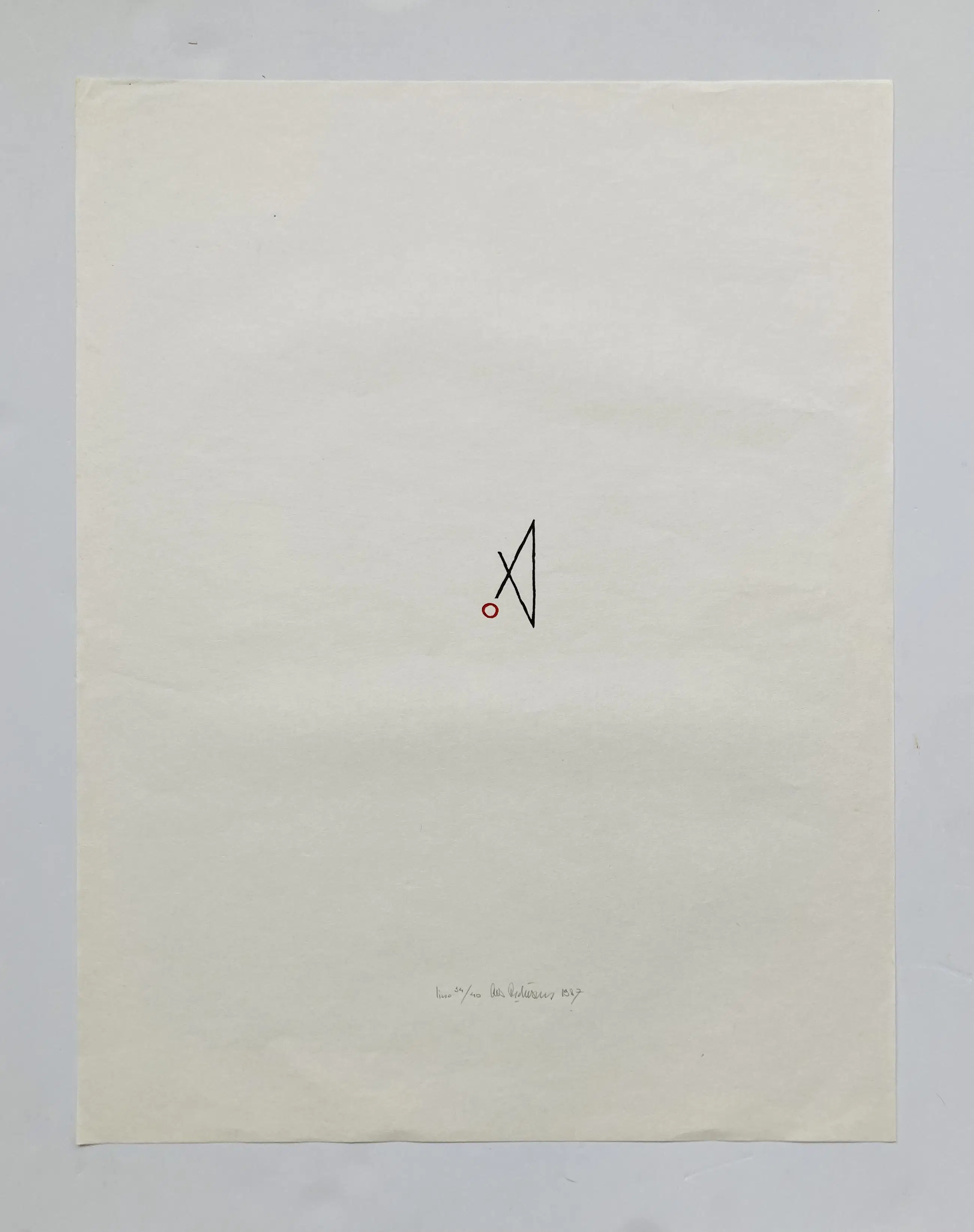 Interessant en minimalistisch werk van de Nederlandse kunstenaar Cees Andriessen. Het werk in goede staat. In de uiterste randen wat ouderdomssporen.