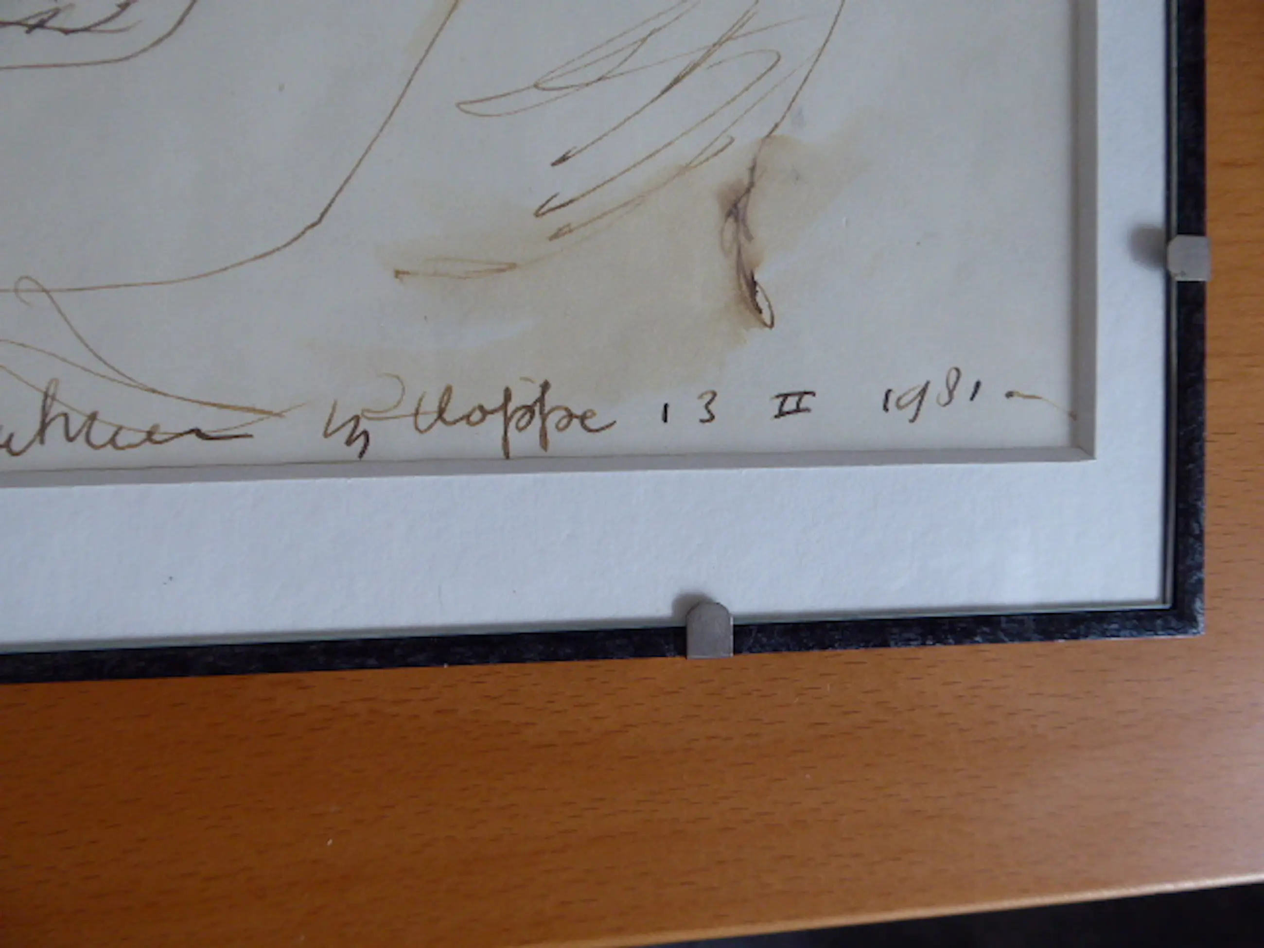 Aquarel met unieke historie!.Op 13 februari 1981 in mijn bijzijn door Bantzinger gemaakt aan de bar van cafe Hoppe. De unieke inkleuring werd aangebracht doordat Bantzinger daarvoor zijn penseel bij herhaling in een glas rode wijn doopte. De ook aanwezige Dirk van de Wedde stelde er geen prijs op en schonk het aan ondergetekende. Inlijsting toegevoegd.
