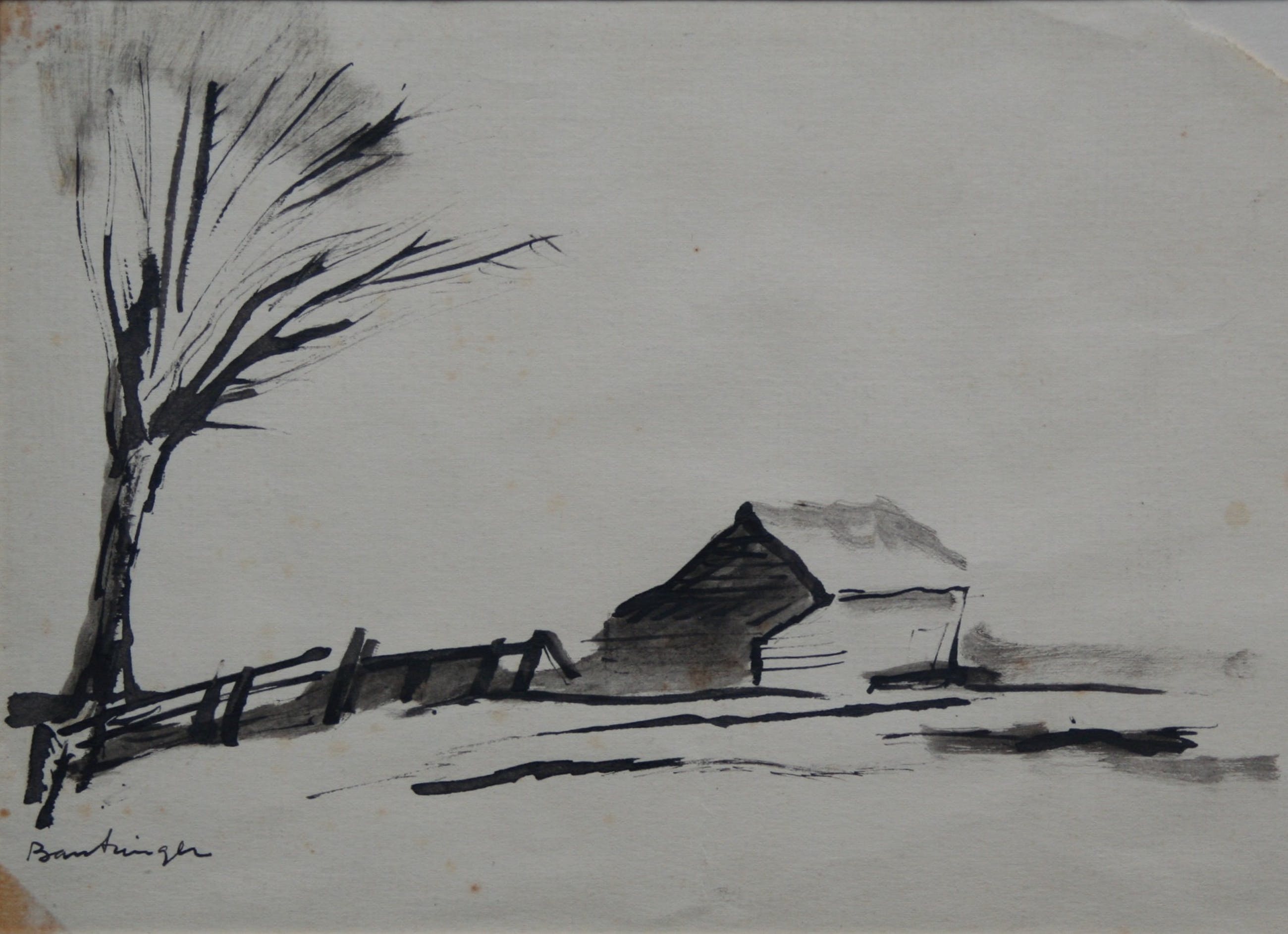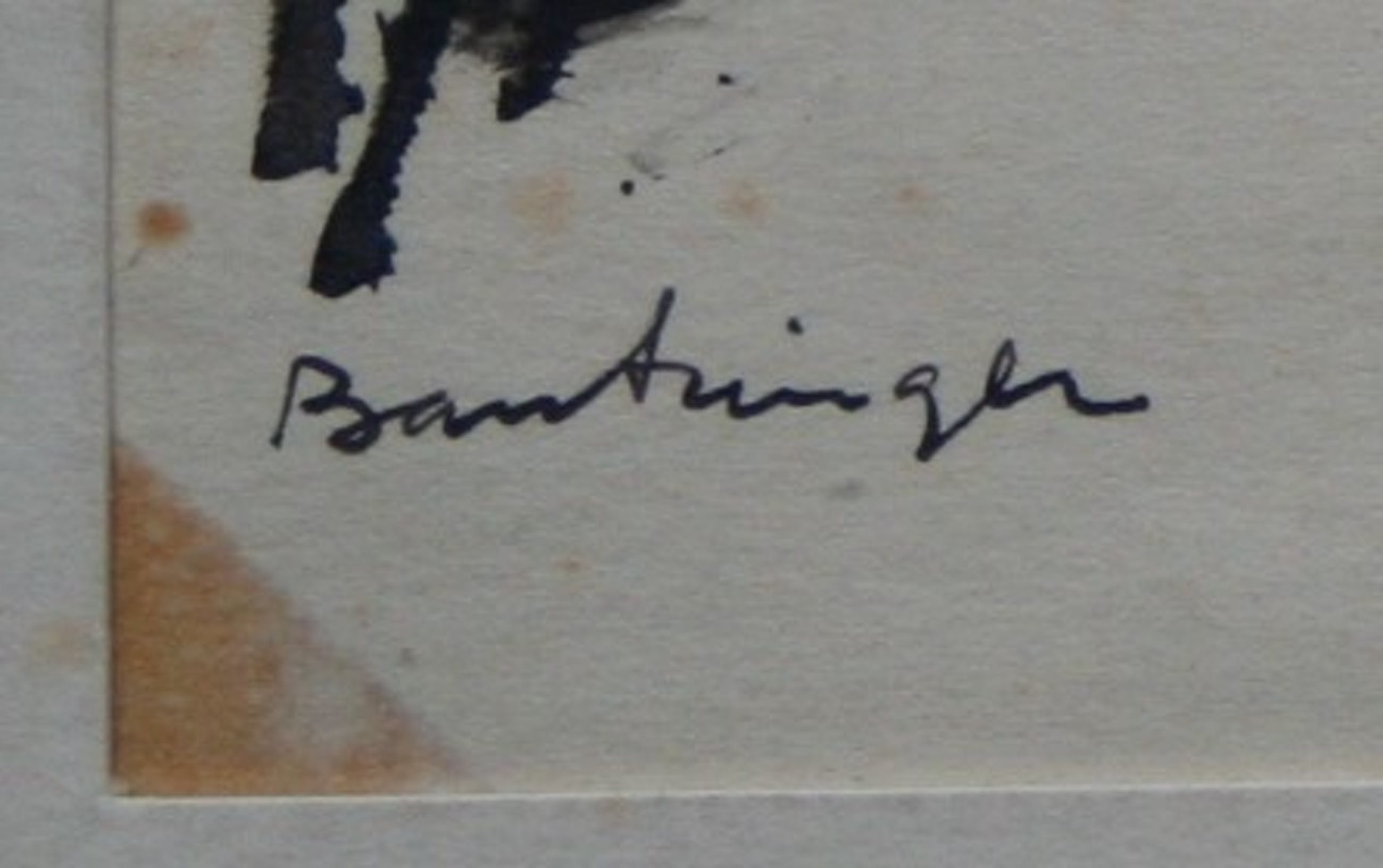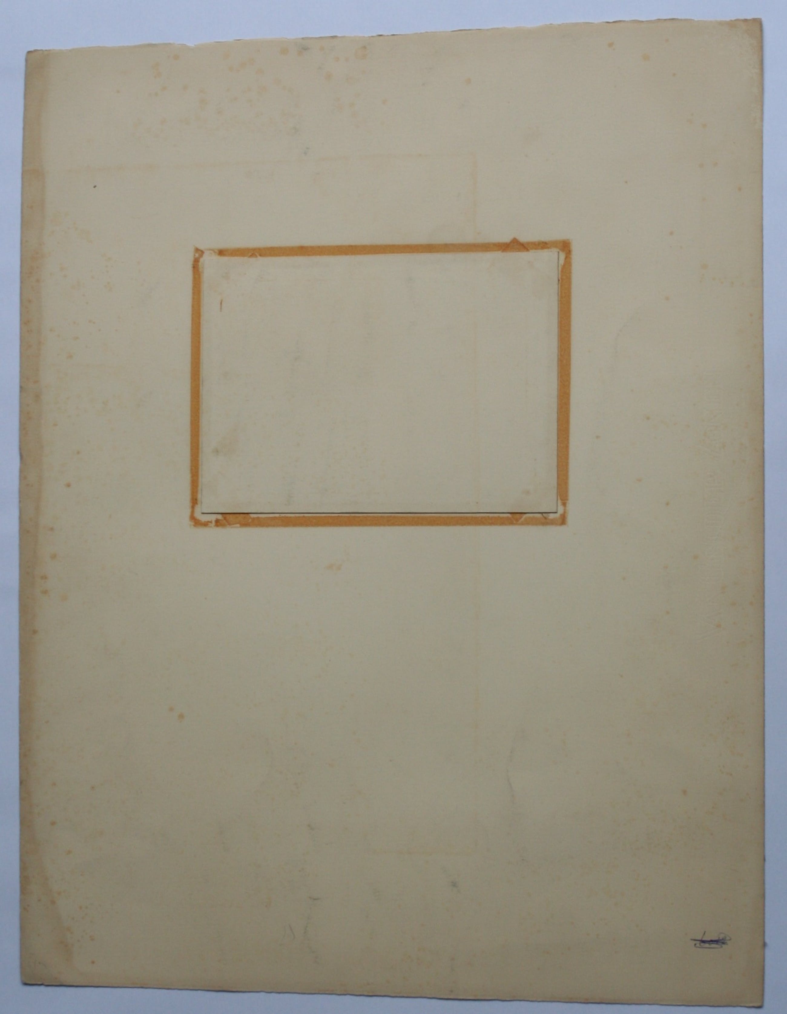 Tekening is slordig geplakt op een eenvoudig passe partout. Totale blad is 65 hoog en 51 breed. Voor de verzamelaar.