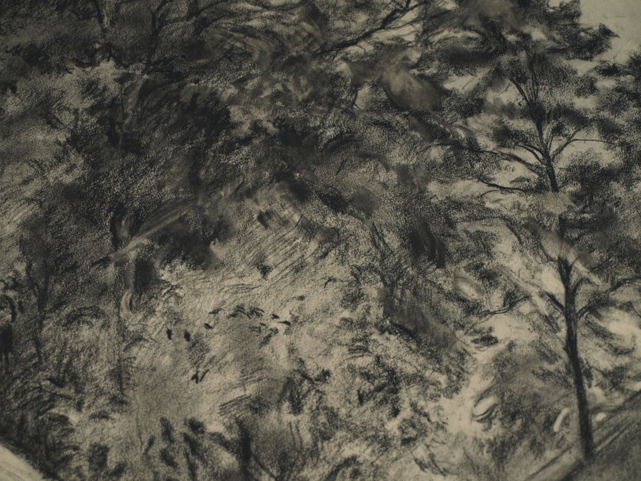 Een grote tekening van de kunstenaar Cees Bolding uit ca 1950 van een boerderij In het buurtschap Linde (bij het plaatsje Vorden) in de Achterhoek.