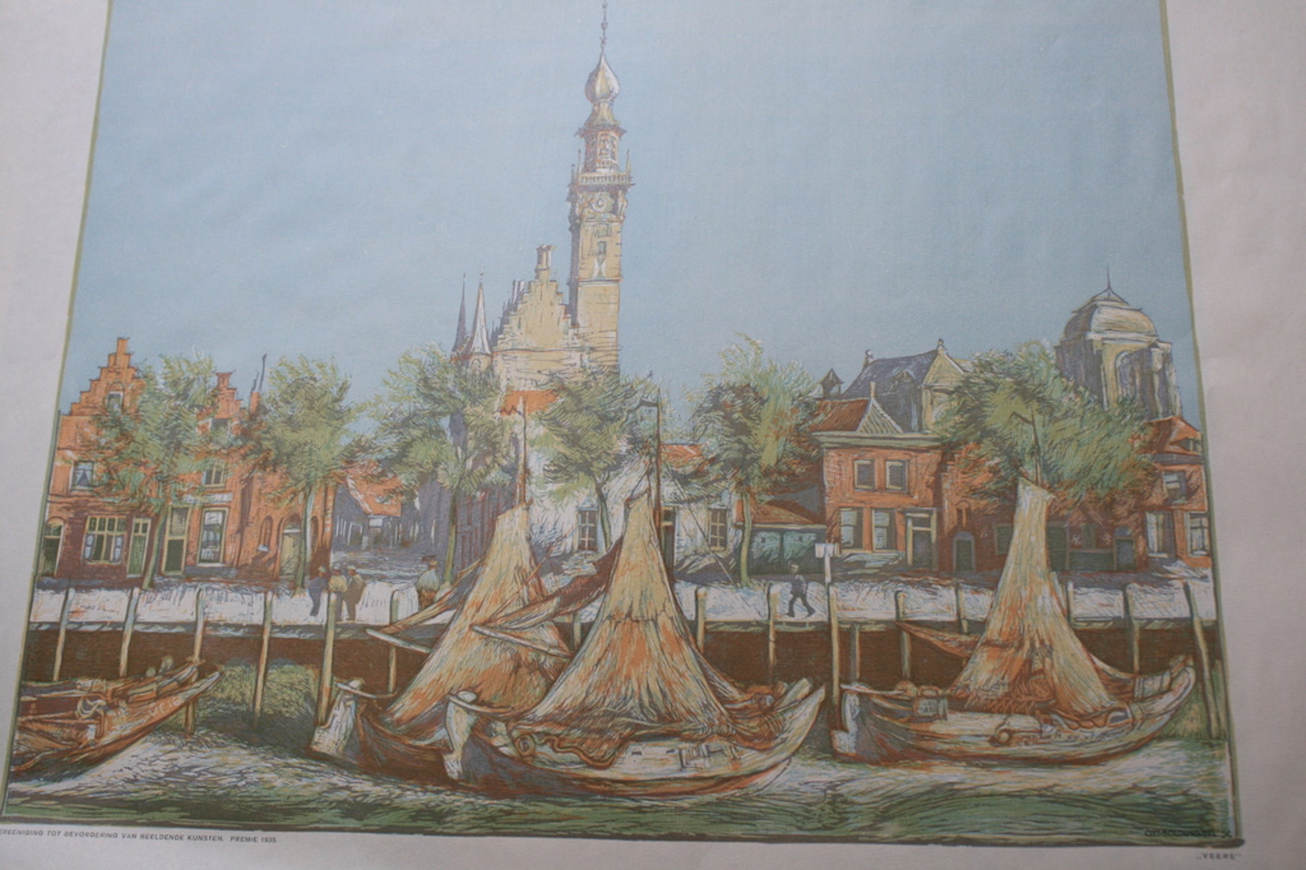 KLEURENLITHO UIT 1935 IN DE MAAT 35 X 43 CM