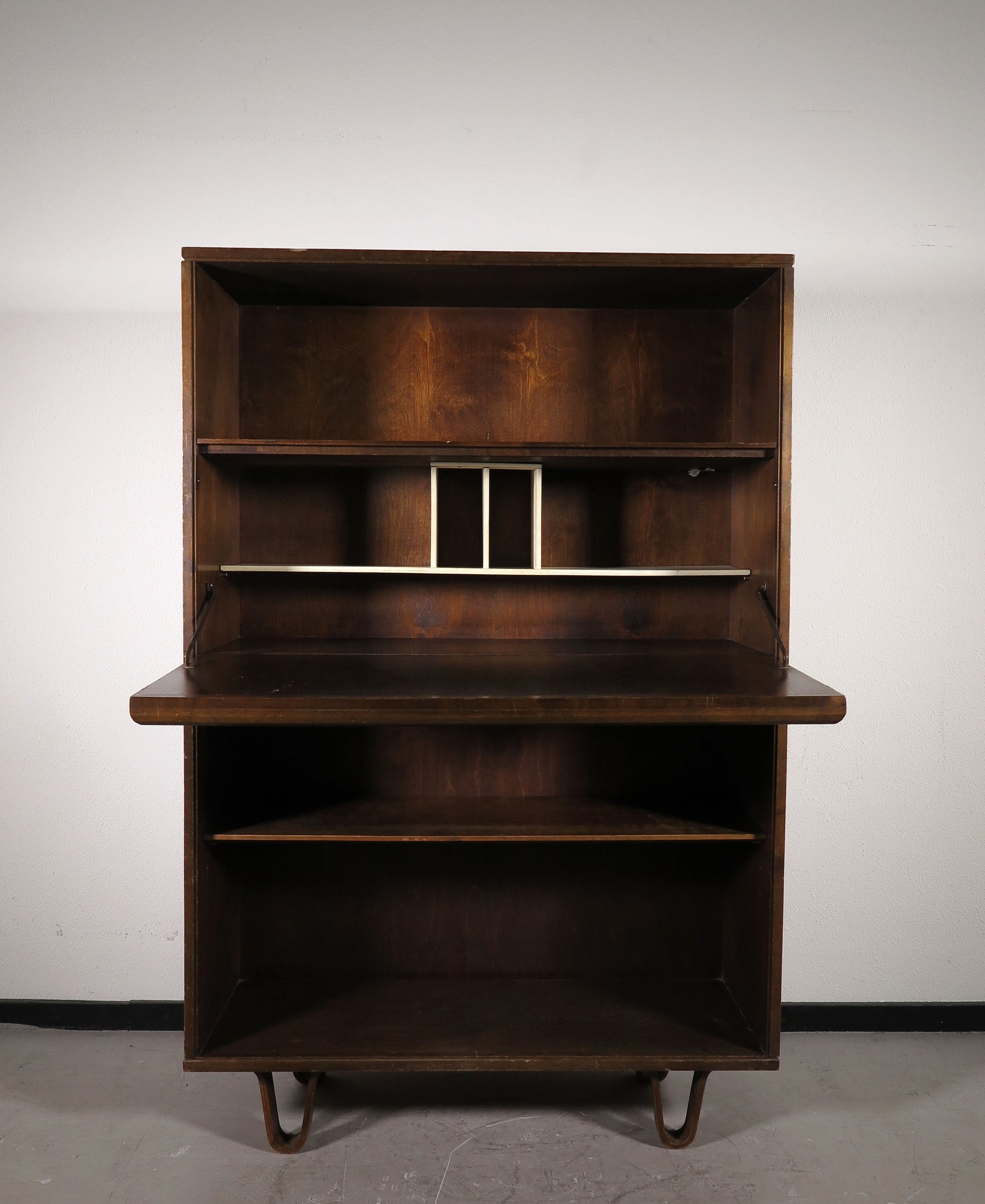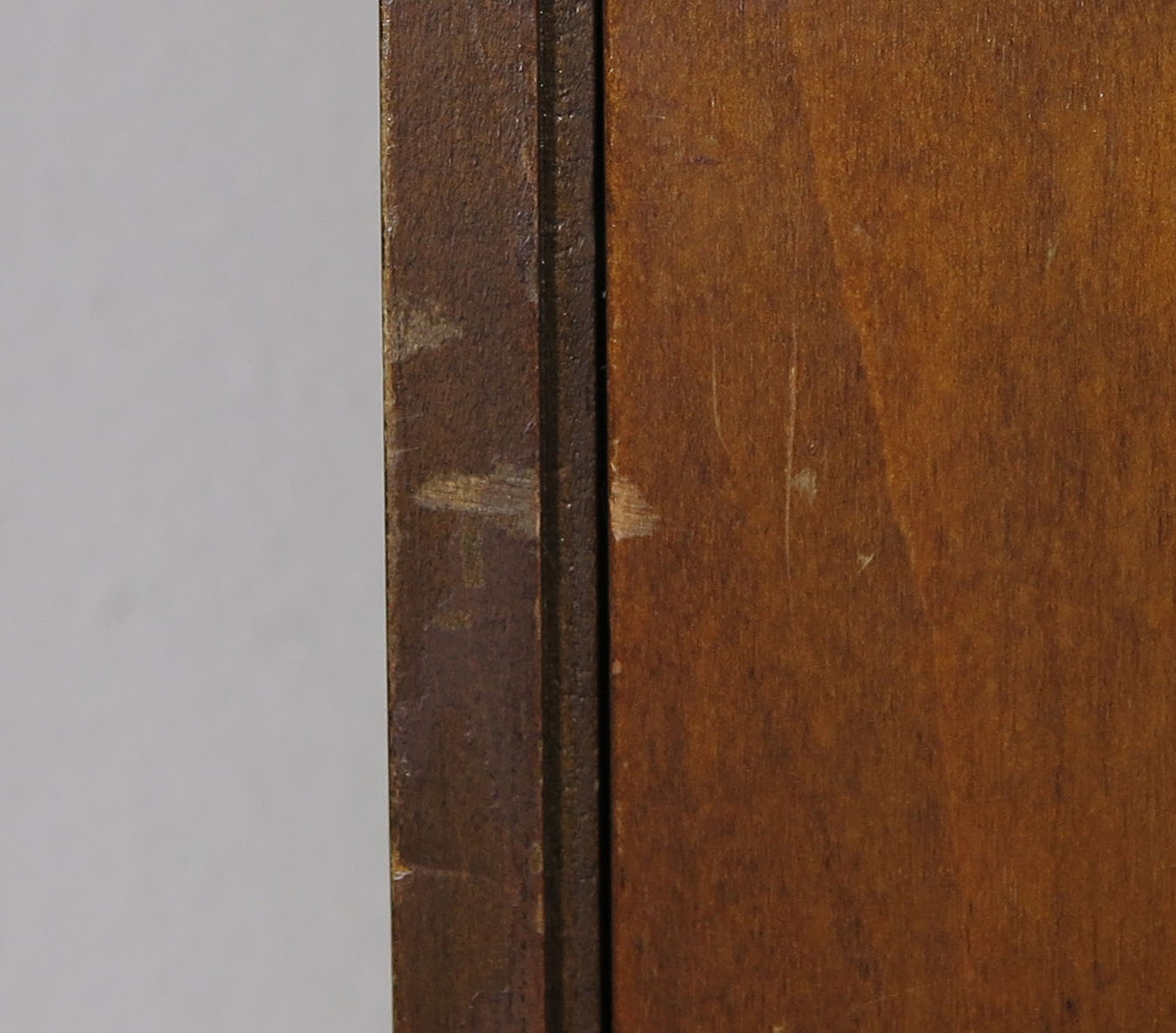 Let op! De kleur van het hout wijkt af op de foto's, zoals bijvoorbeeld de klep van de secretaire. Het gehele meubel is donker van kleur, zoals ook de binnenzijde van de kast. De afwijking op de foto's komt door de gebruikte lampen bij het maken van de foto's.