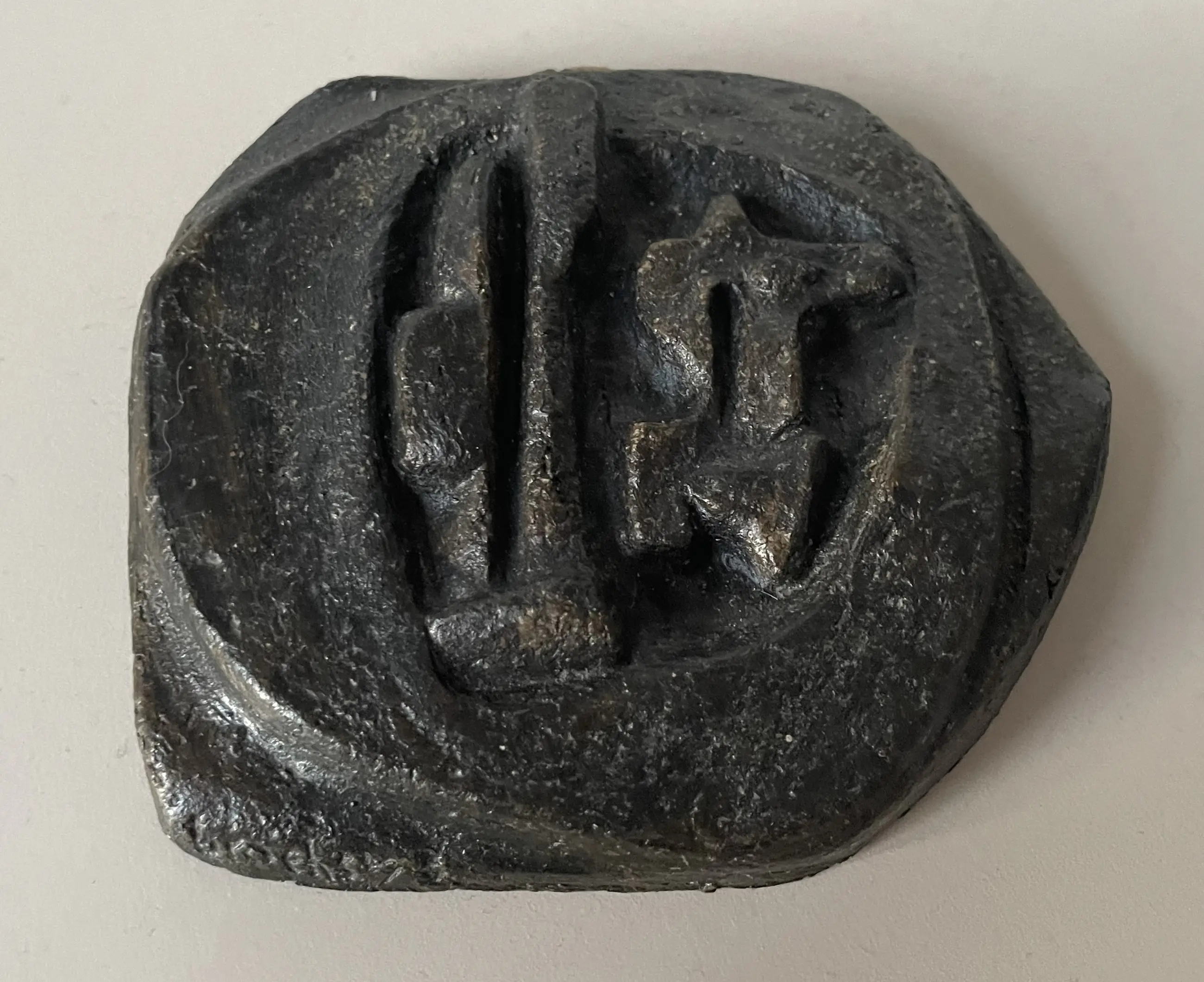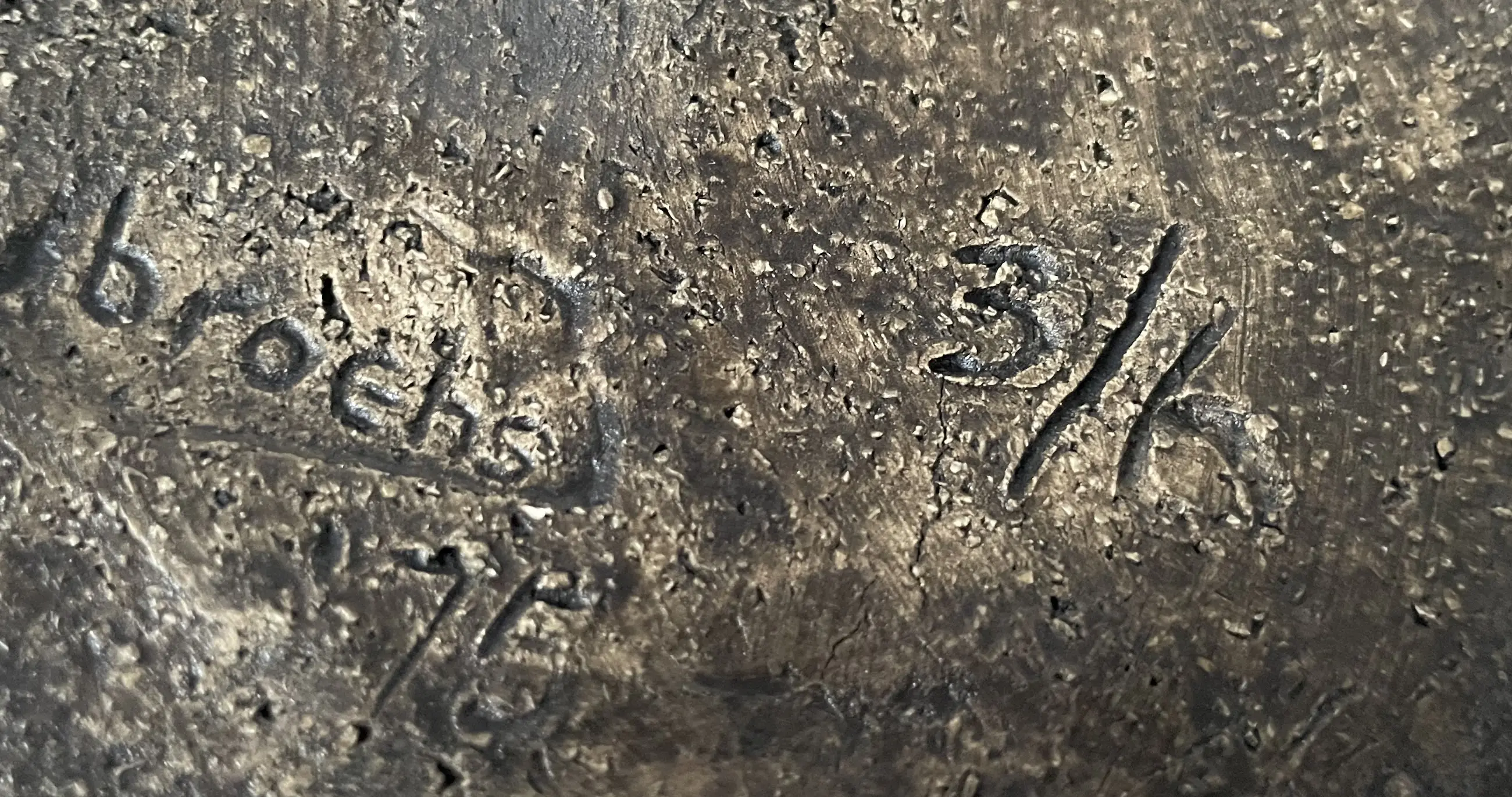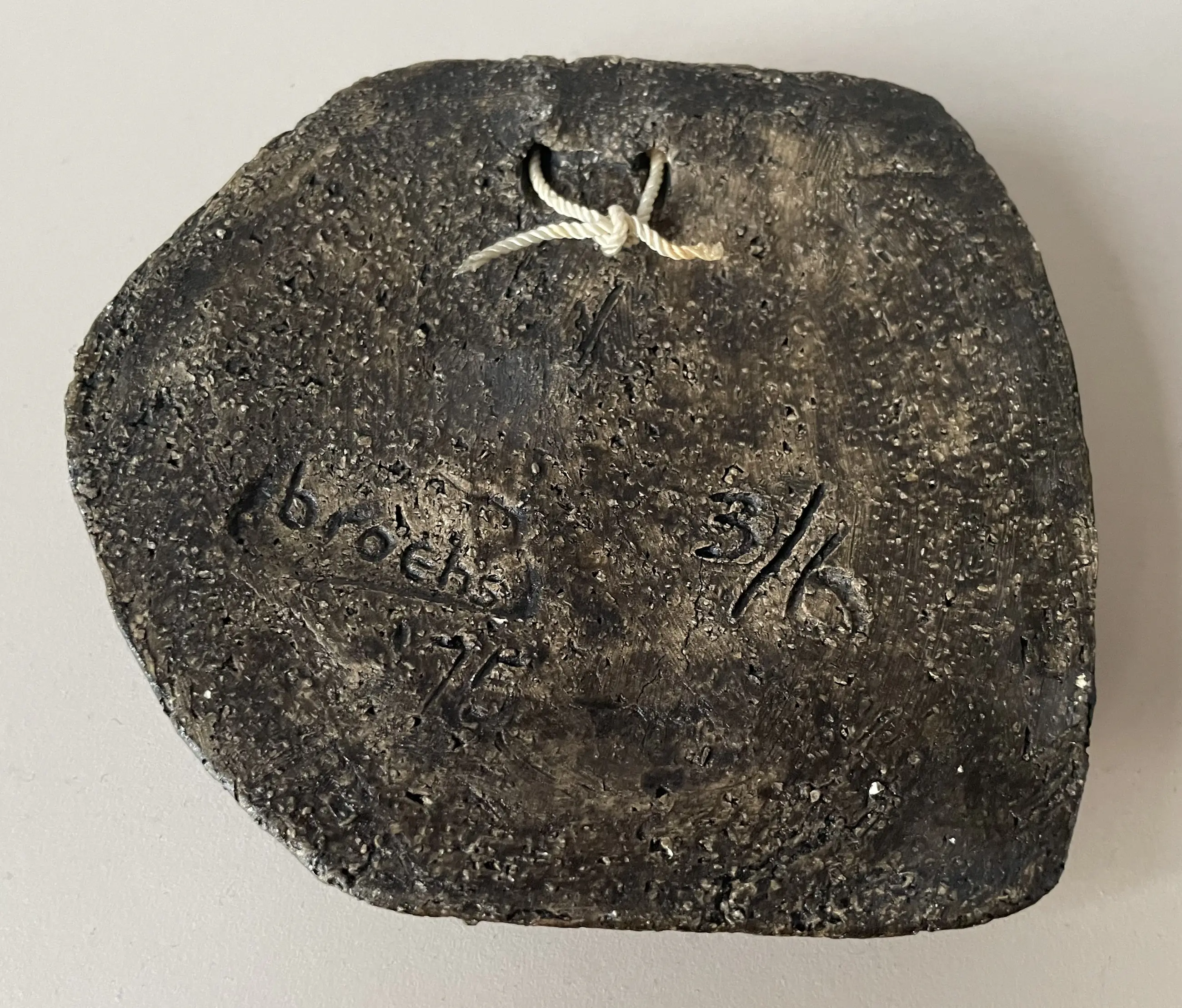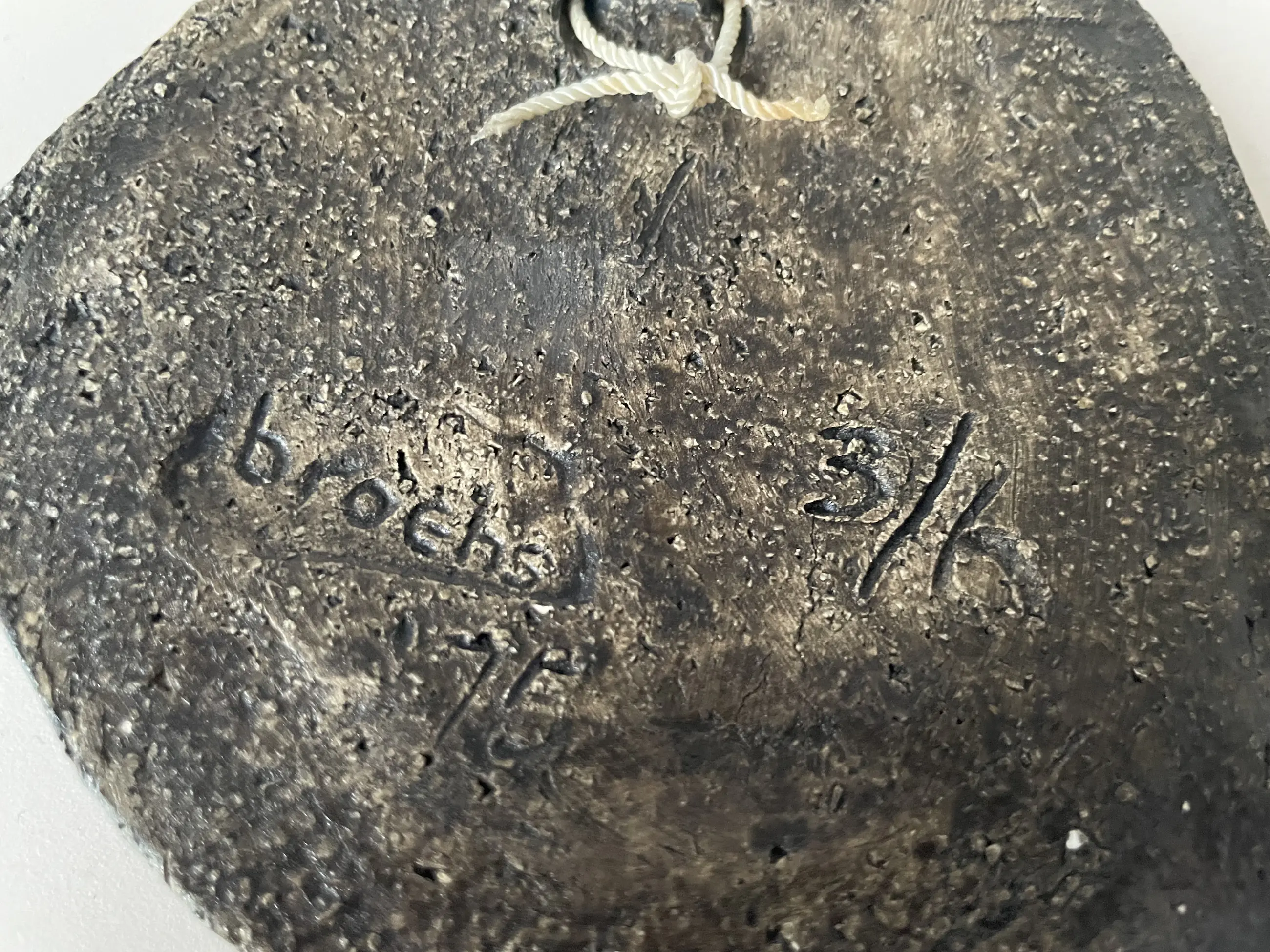 Kunst keramische wandtegel uitgevoerd in brons glazuur door de kunstenaar en beeldhouwer Cornelis Broekhuisen (pseudoniem Cees Broehs) in 1975. De tegel is in beperkte oplage van 6 stuks gemaakt. Dit is nummer 3/6. In perfecte conditie. Gesigneerd 'Broehs' en gedateerd '75 aan de achterkant. Evenals het serienummer 3/6 is aangebracht.
