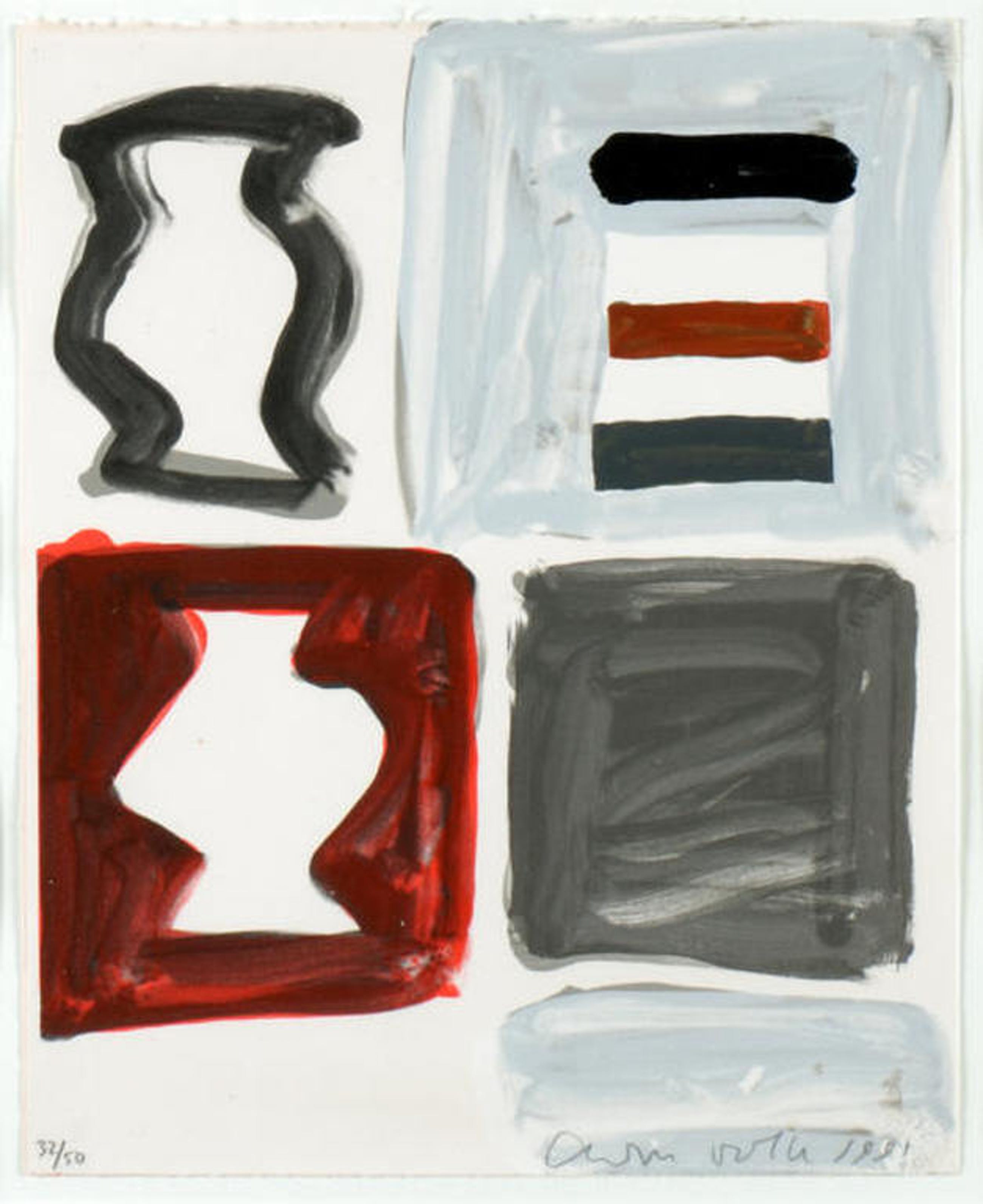 Gesigneerde en genummerde zeefdruk van Cees Dolk 'Vazen'uit 1991. Formaat 47,5 x 38,5 cm. Afgedrukt in een oplage van 50 exemplaren is dit nummer 32. De zeefdruk met passe-partout ( formaat 80 x 70 cm) kan worden opgehaald in onze galerie in Arkel of zonder passe-partout aangetekend worden verzonden.
