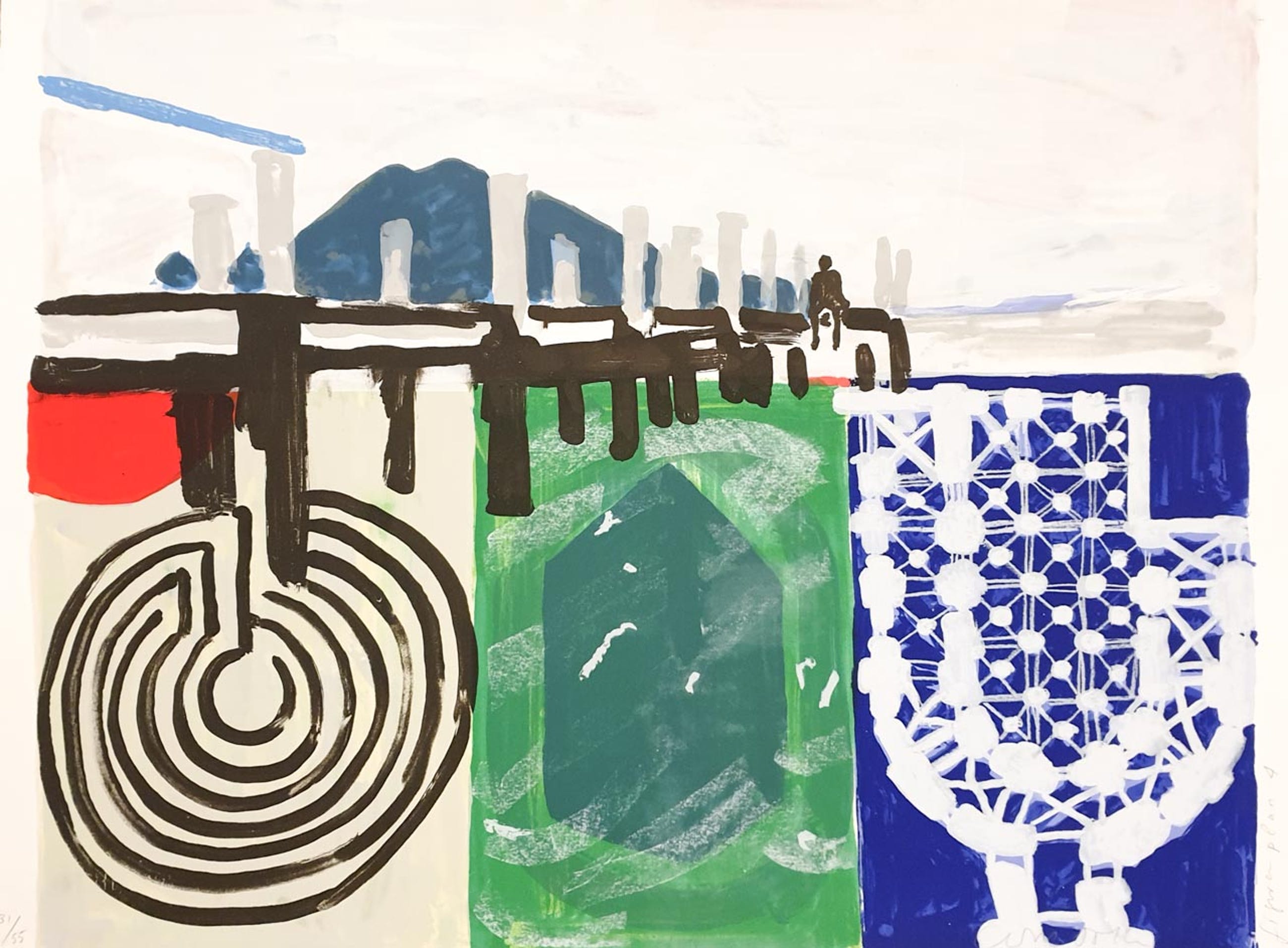 Zeefdruk van Cees Dolk. Het werk is rechtsonder met potlood door de kunstenaar gesigneerd.