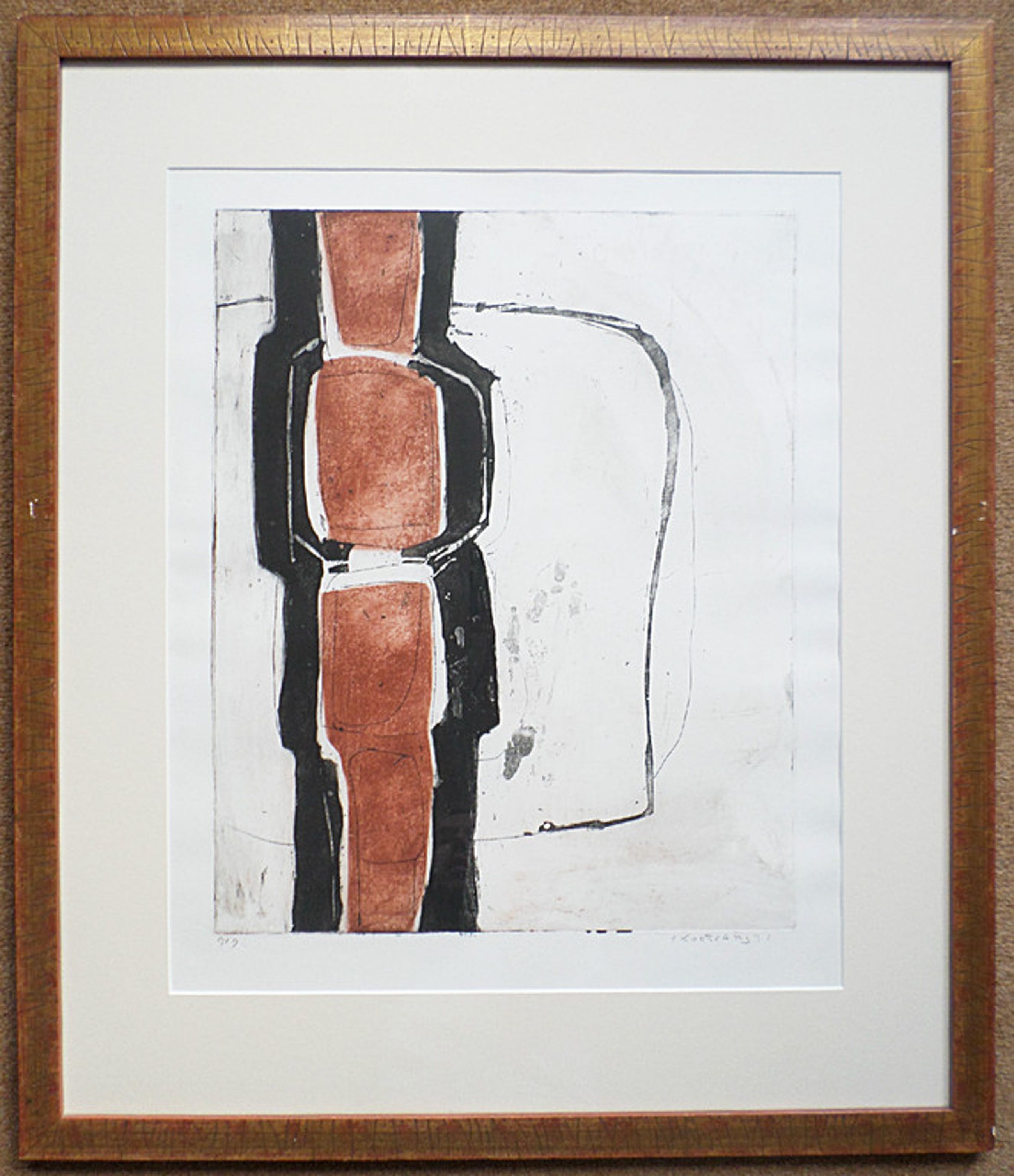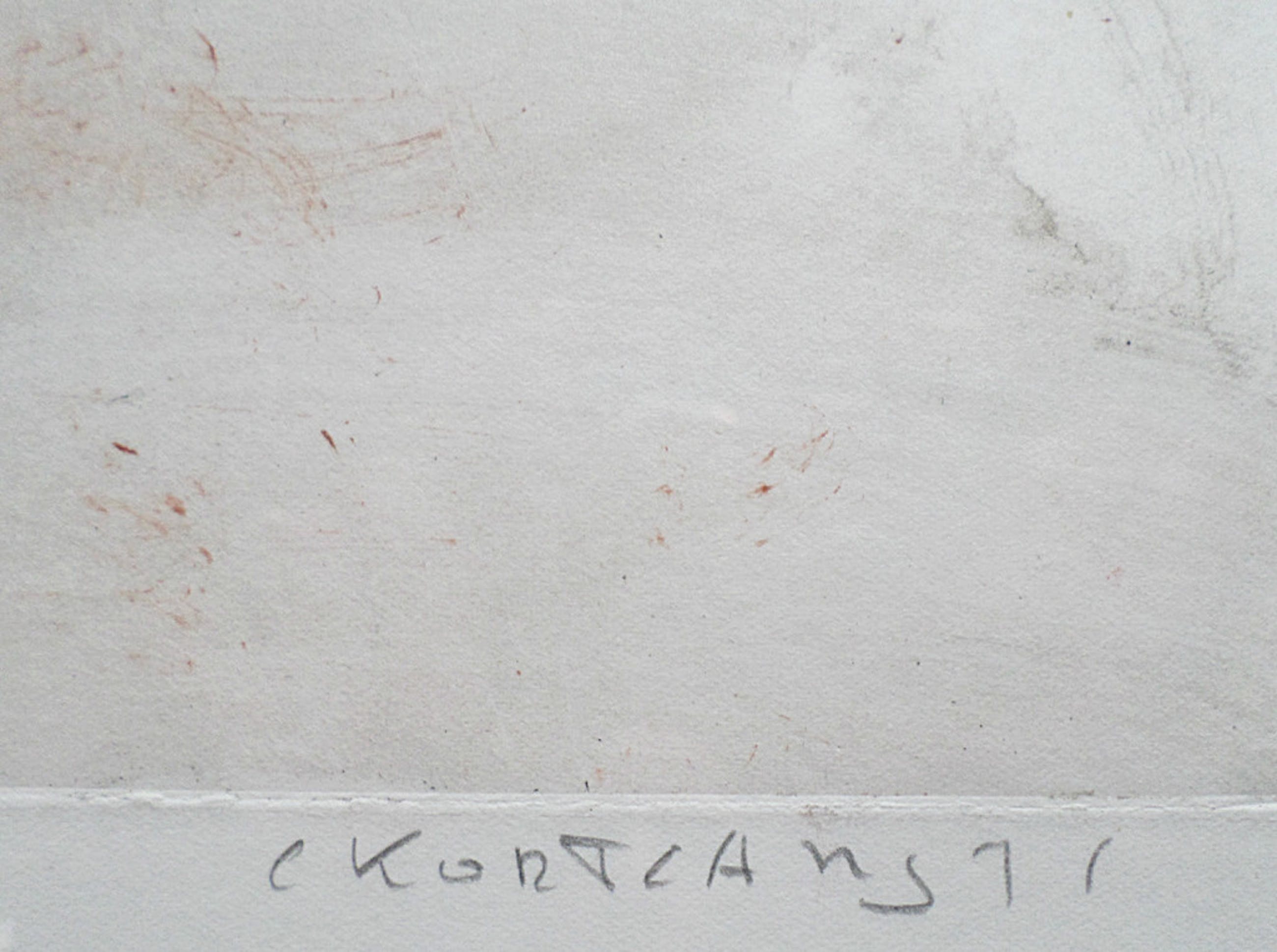 Karakteristieke ets van Cees Kortlang uit 1971. Mooi ingelijst, achter glas en passe-partout. Handgesigneerd, gedateerd en genummerd. Dit is nummer 9 uit een oplage van slechts 9.