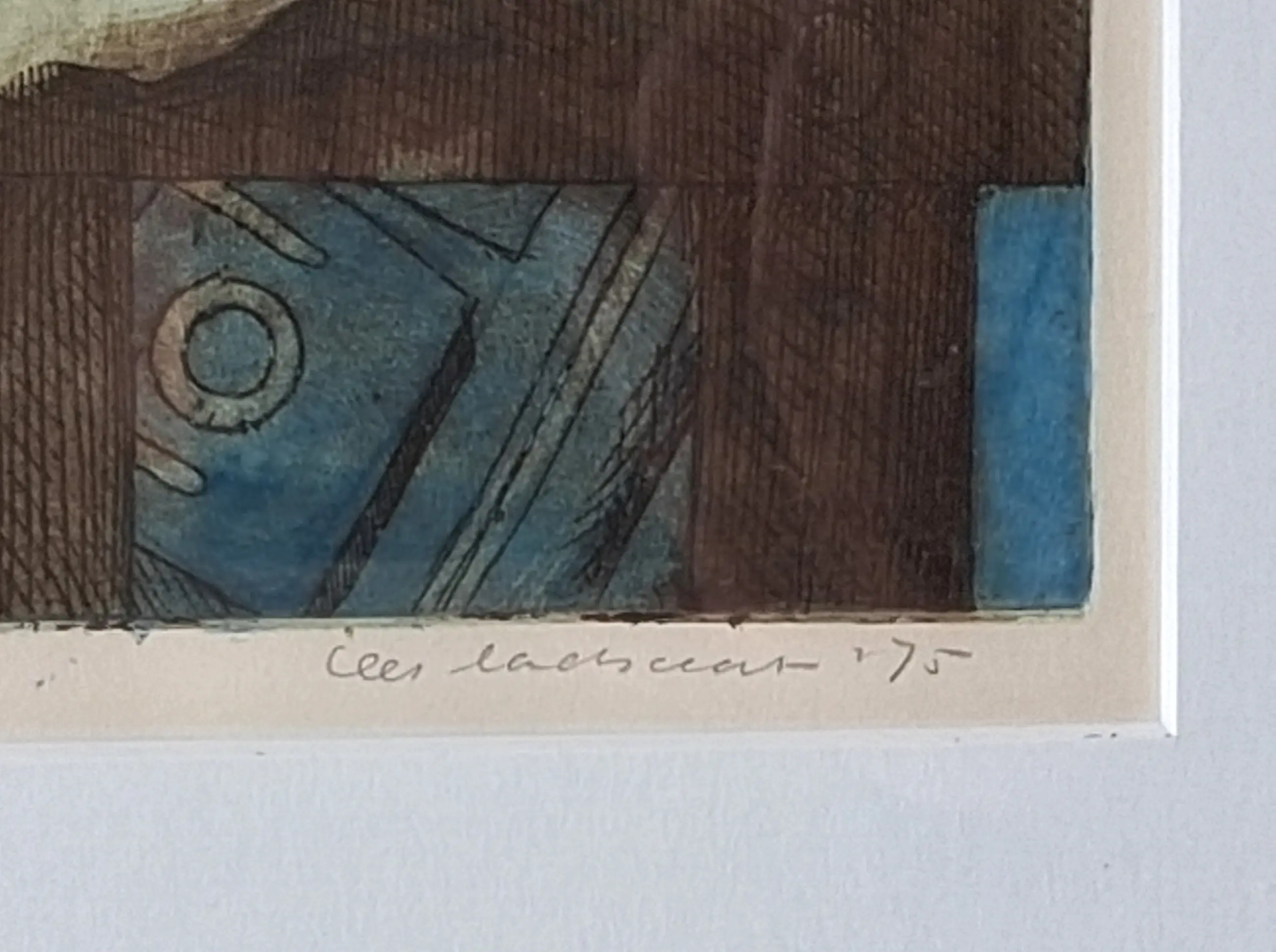 Ets/aquatint van Cees Landsaat, met potlood door de maker voorzien van signatuur, oplagenummer, datum en titel. Ingelijst in aluminium lijst. Het geheel is in nieuwstaat en kan zo aan de muur.