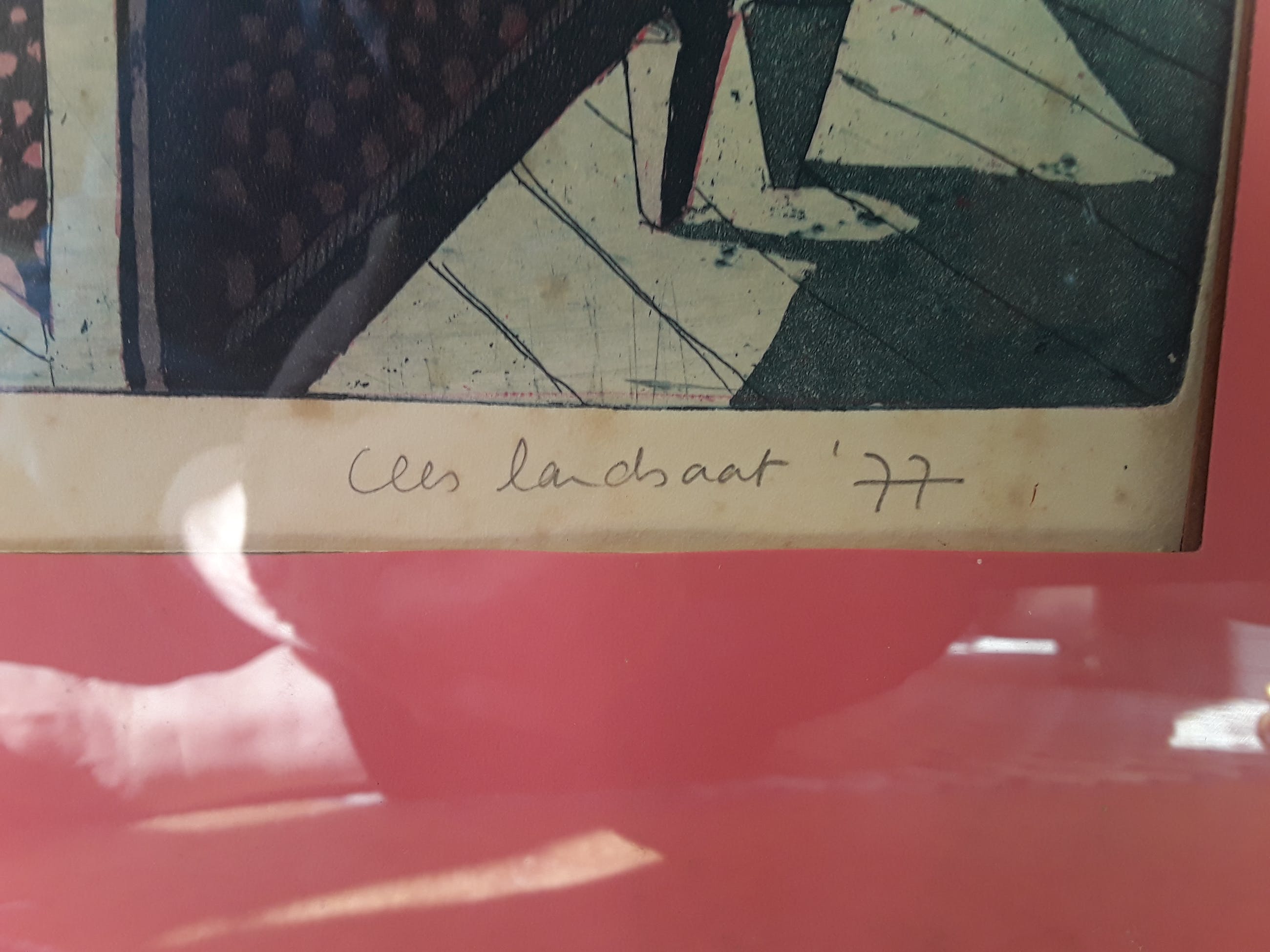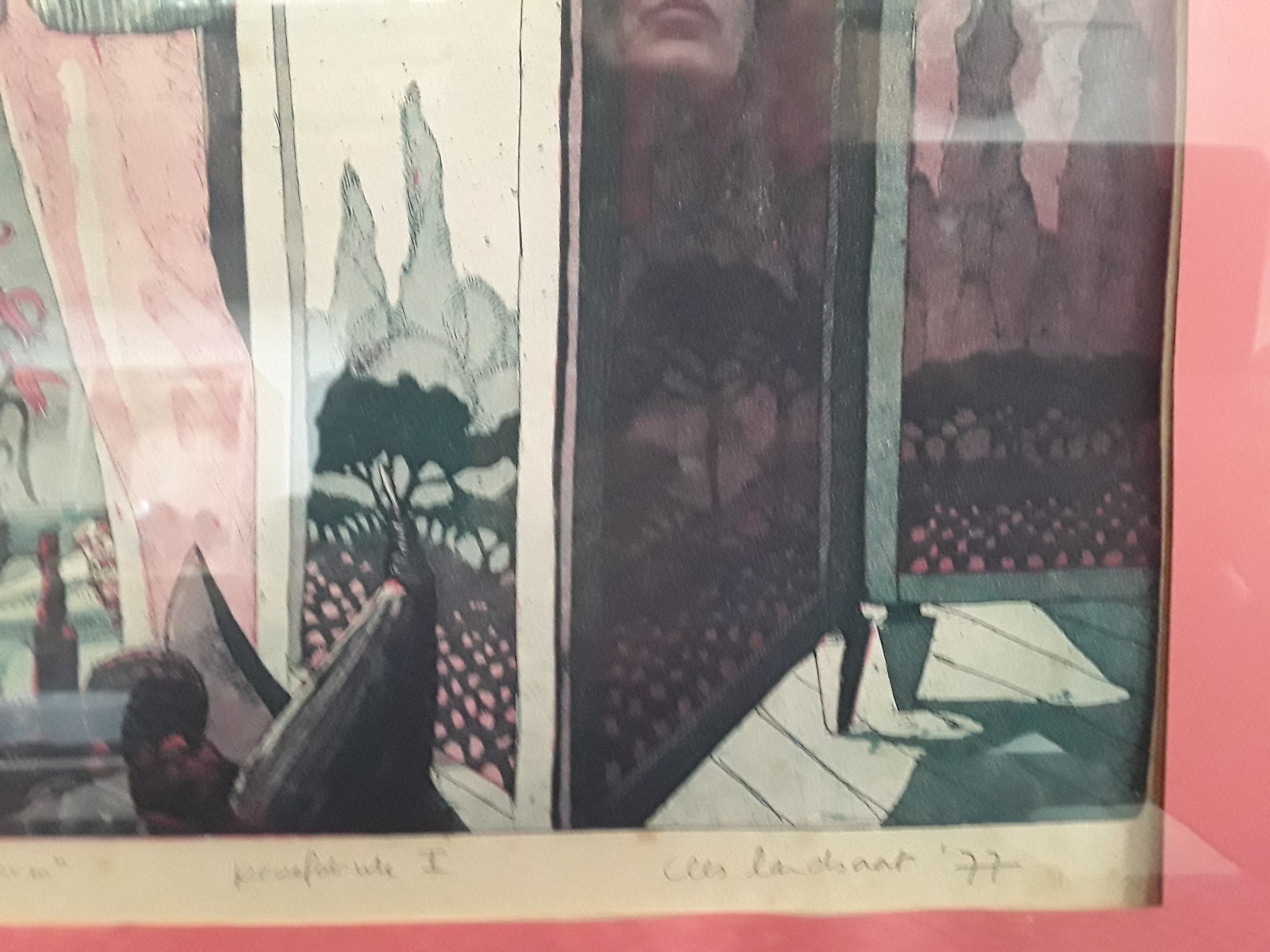 Ophalen in Amsterdam centrum Links onderin zit scheurtje in glas. Lichte foxing op de druk Foeimooie rose passé partoe ,. Foto,s hebben last van spiegeling,je kunt altijd langs komen om het kunstwerk in het echt te zien