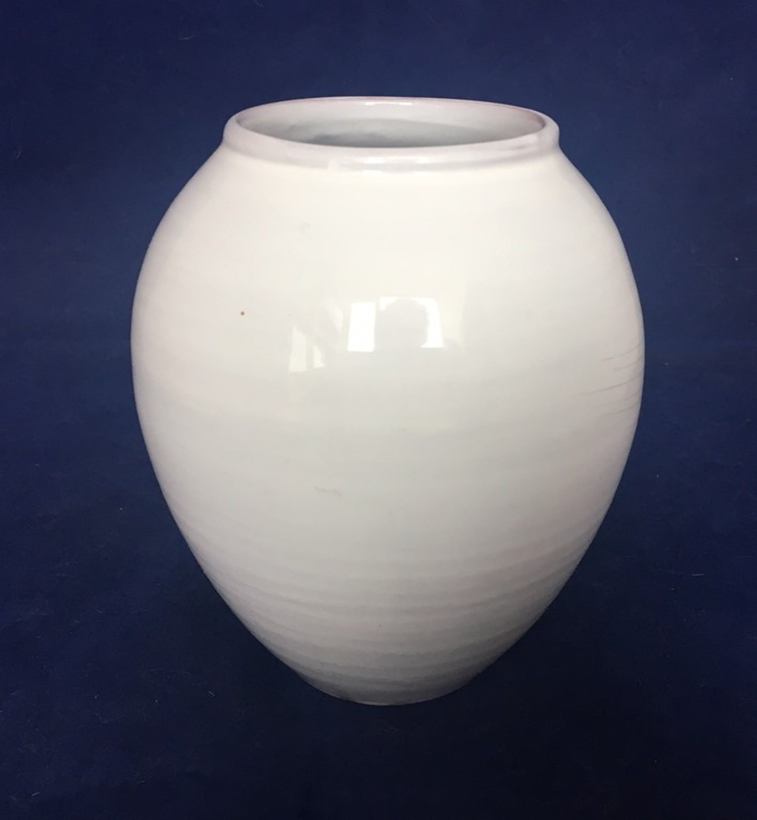 Cees Sluyter wit bolvaasje, hand gedraaid in eigen atelier in Zwammerdam. in prima onbeschadigde conditie, met de hand in het blauw gesigneerd aan de onderzijde.