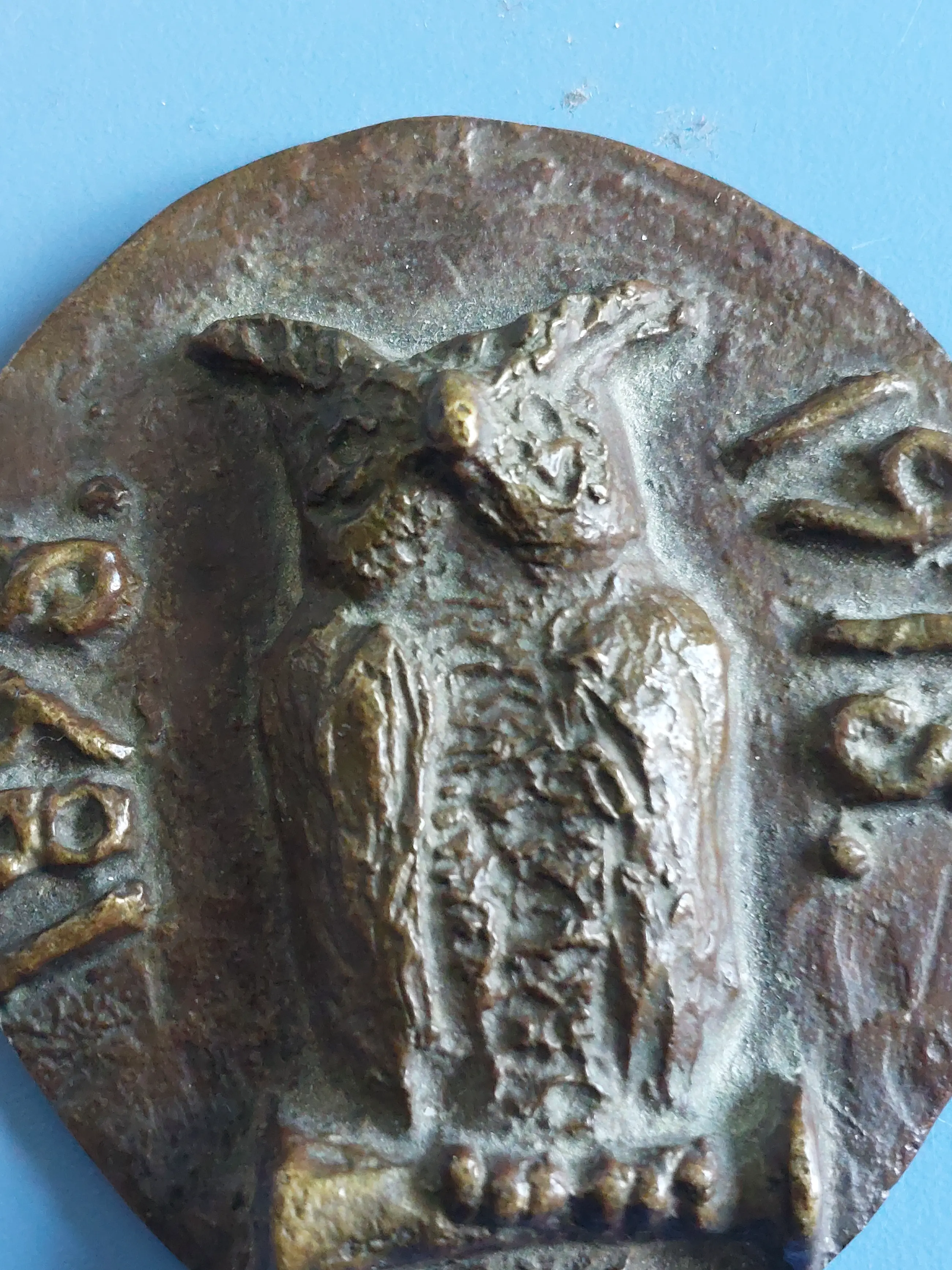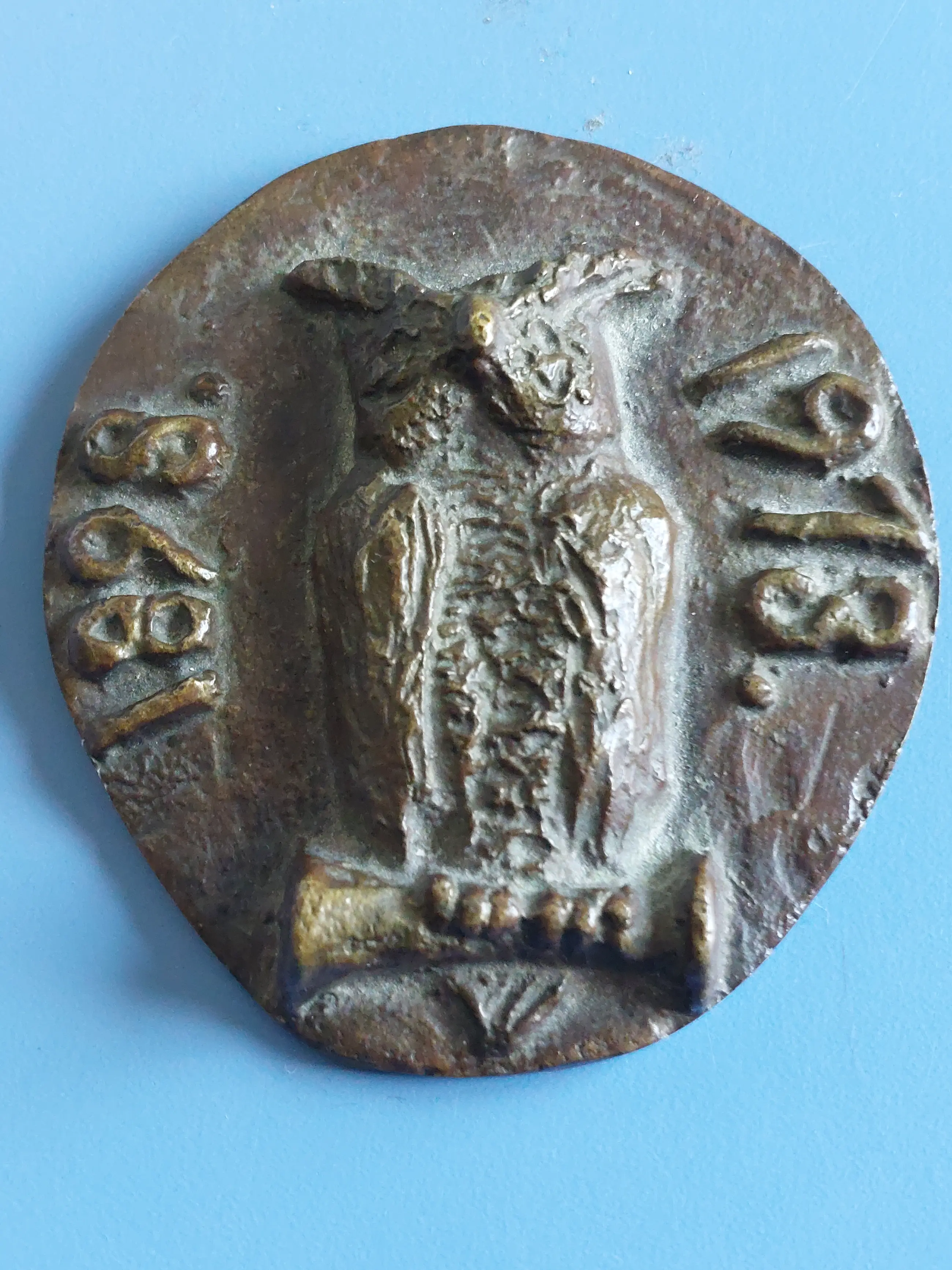 Op de voorzijde staat een uil met een bul in de klauwen en de jaartallen 1898 1973. Aan de achterkant zit een uitsparing zodat je de penning kunt ophangen. Vermoedelijk een universiteitspenning, maar niet nader te bepalen van welke universiteit of ter welke gelegenheid dit is gemaakt. Deze penning bestaat ook in een variant voorde verloskundigen verenging. Dan i.p.v. een bul een stethoscoop.