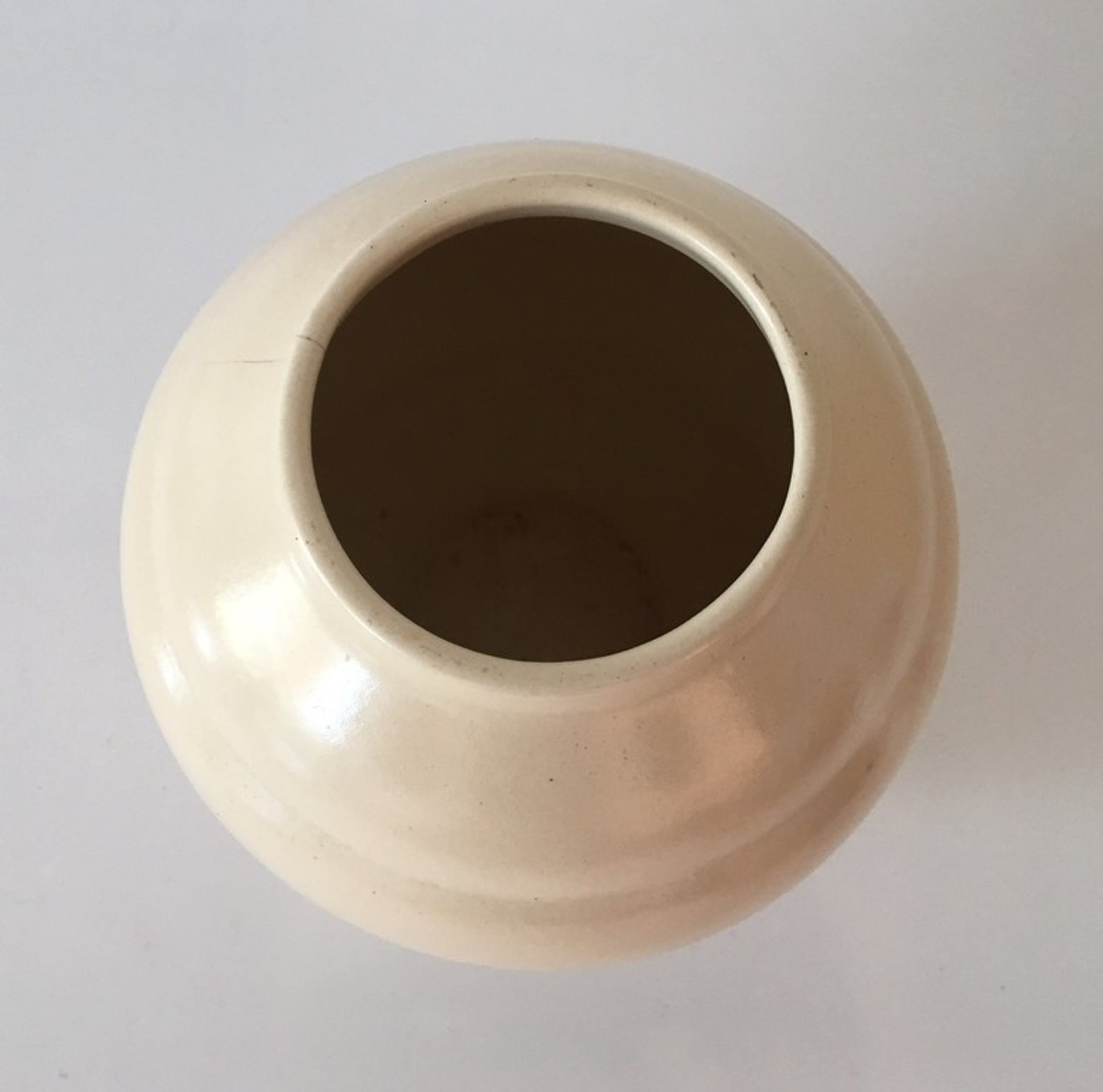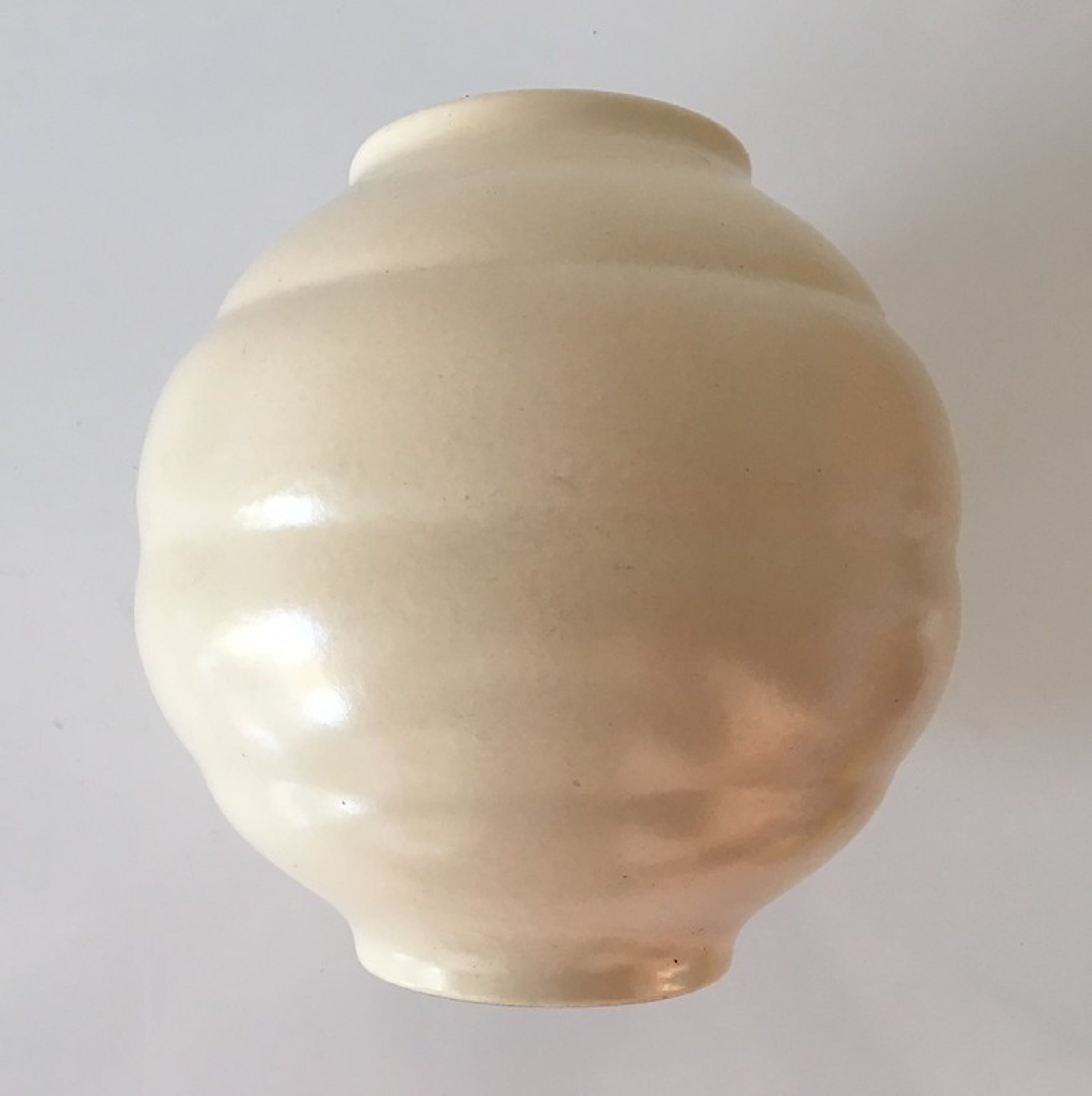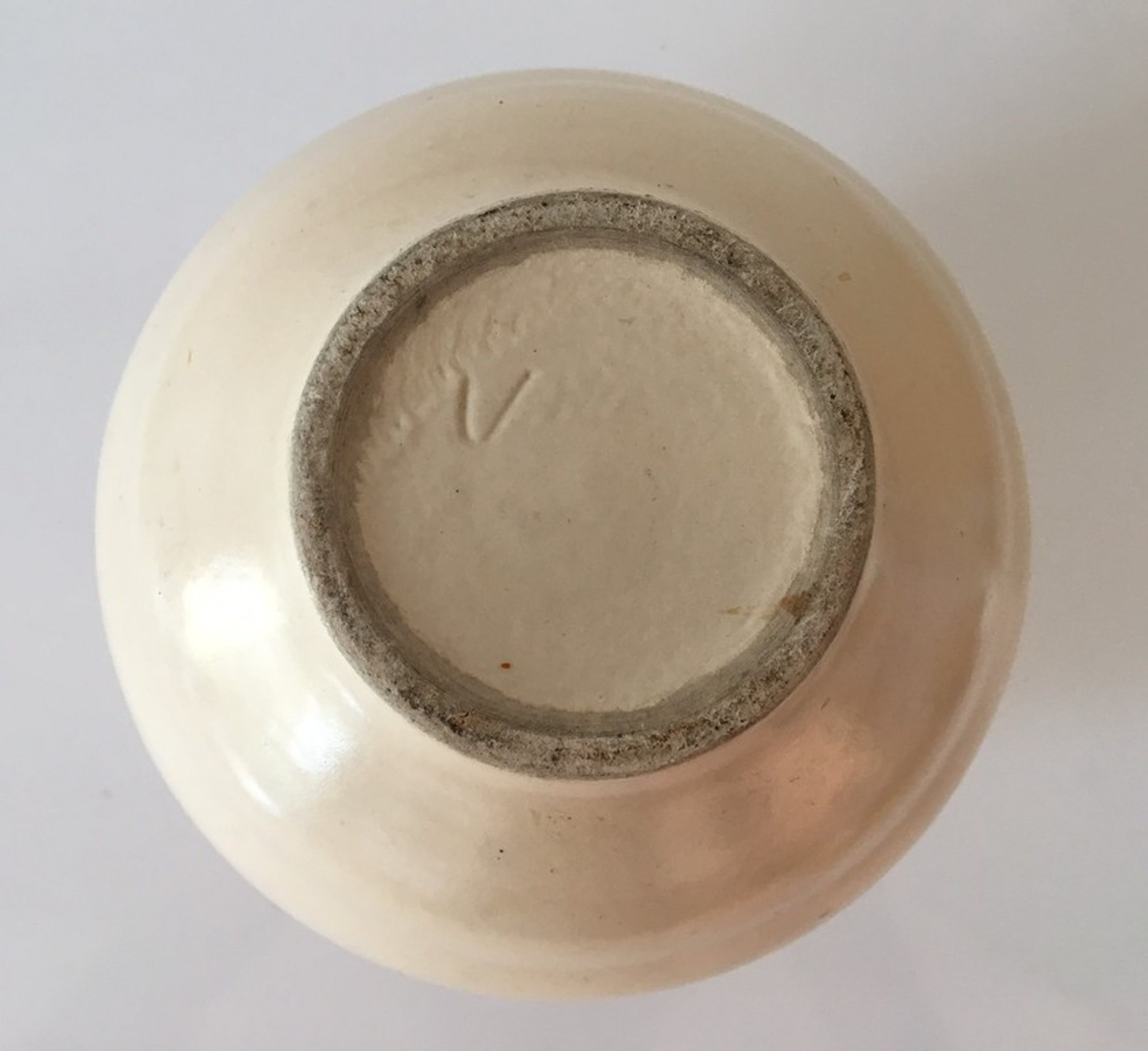 Cees van der Sluys voor de ESKAF - Bolvaas model 310 - Creme wit geglazuurd. Heeft een klein haarlijntje verder onbeschadigd. Niet gemerkt alleen voorzien van een model of decoratie letter V. Afmetingen; 15,3 cm hoog.