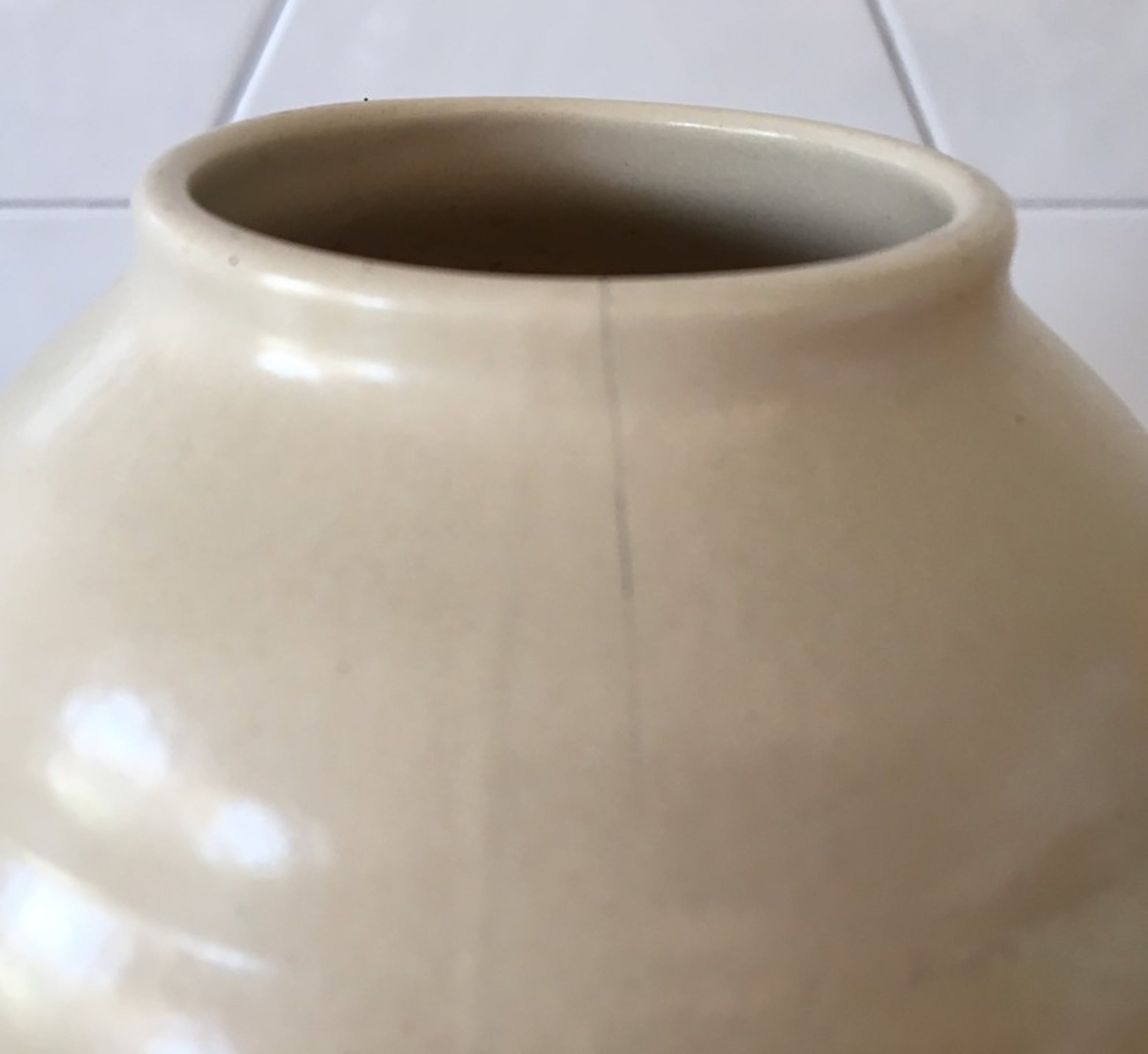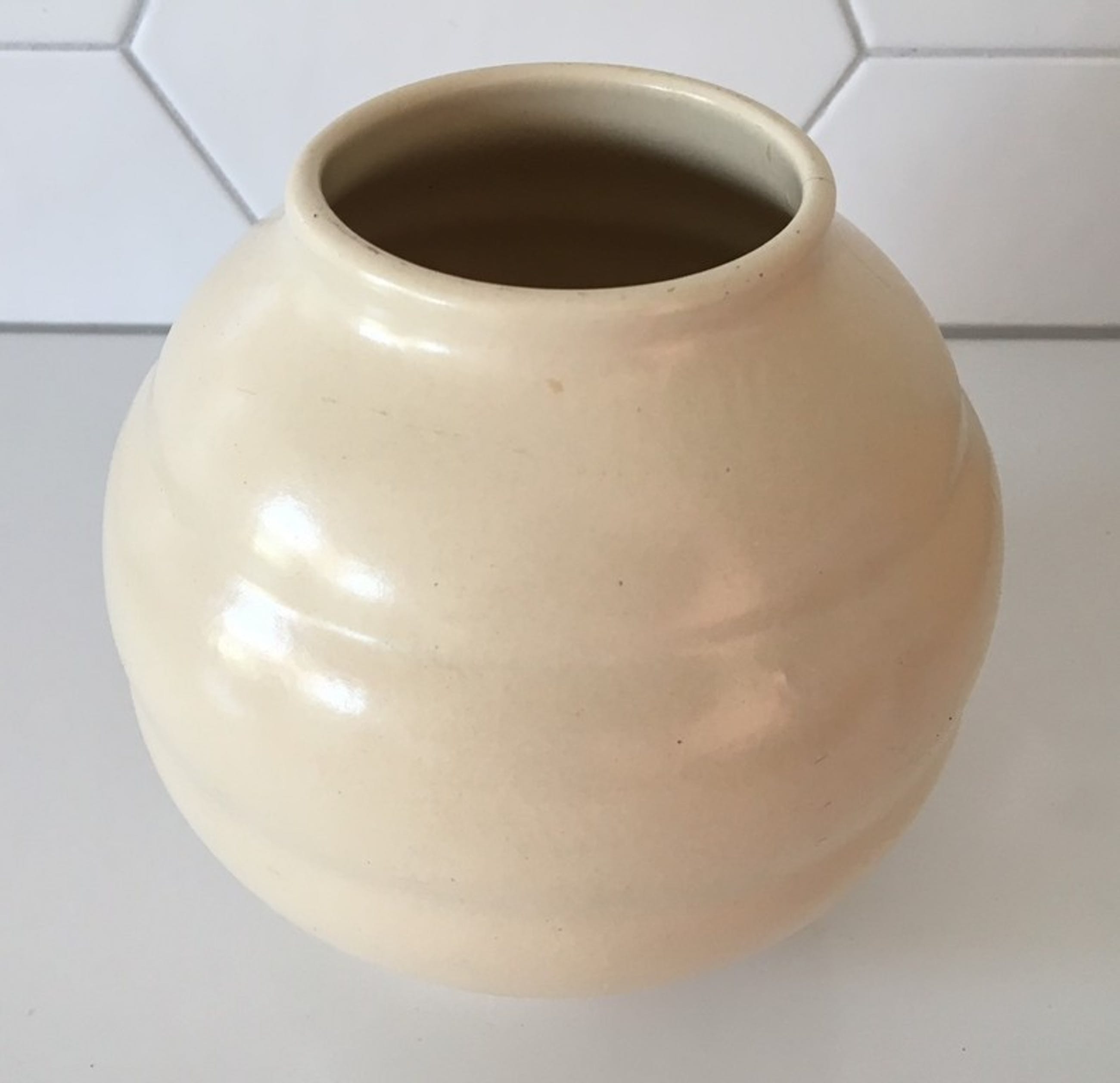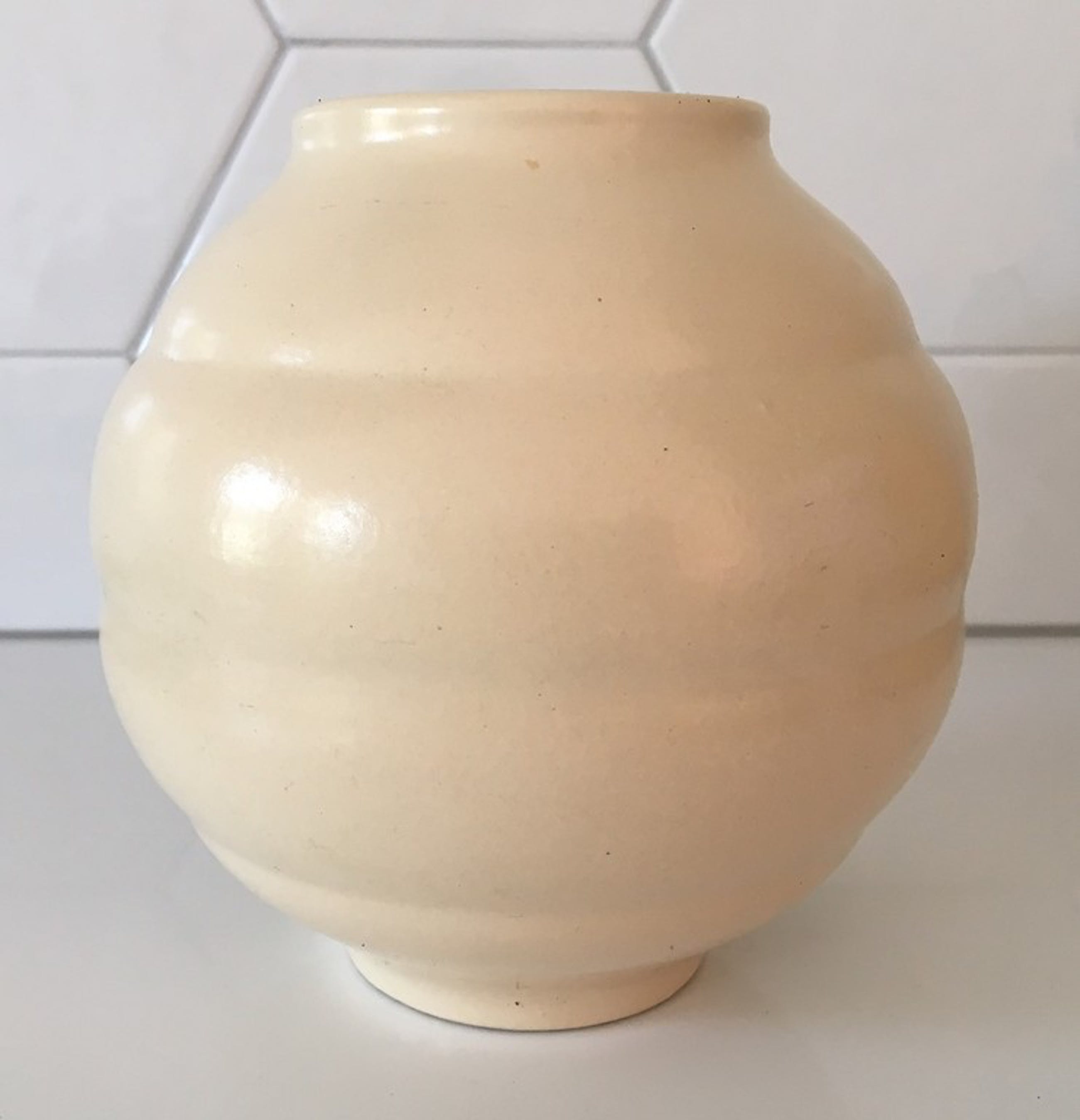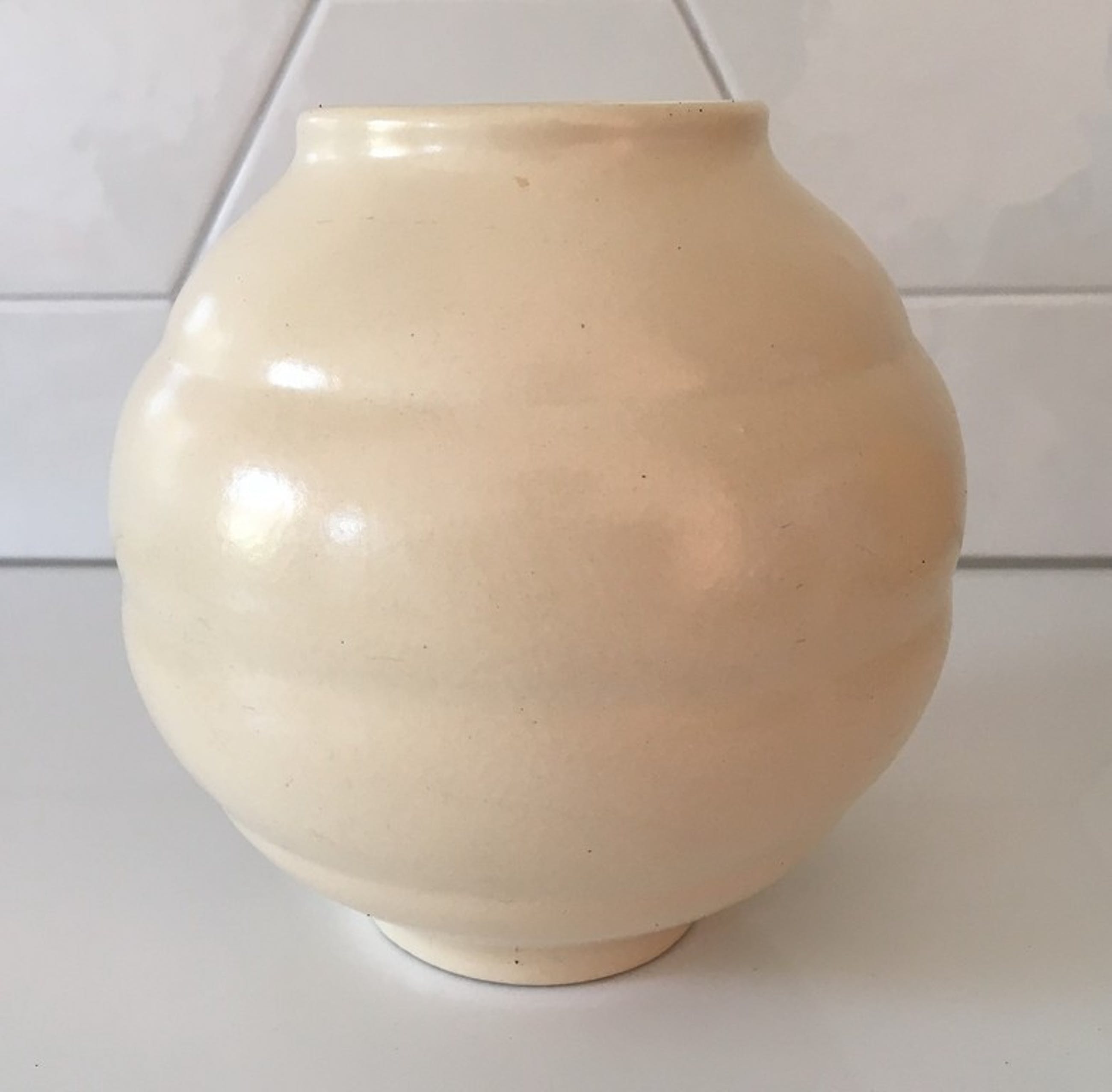 Cees van der Sluys voor de ESKAF - Bolvaas model 310 - Creme wit geglazuurd. Heeft een klein haarlijntje verder onbeschadigd. Niet gemerkt alleen voorzien van een model of decoratie letter V. Afmetingen; 15,3 cm hoog.