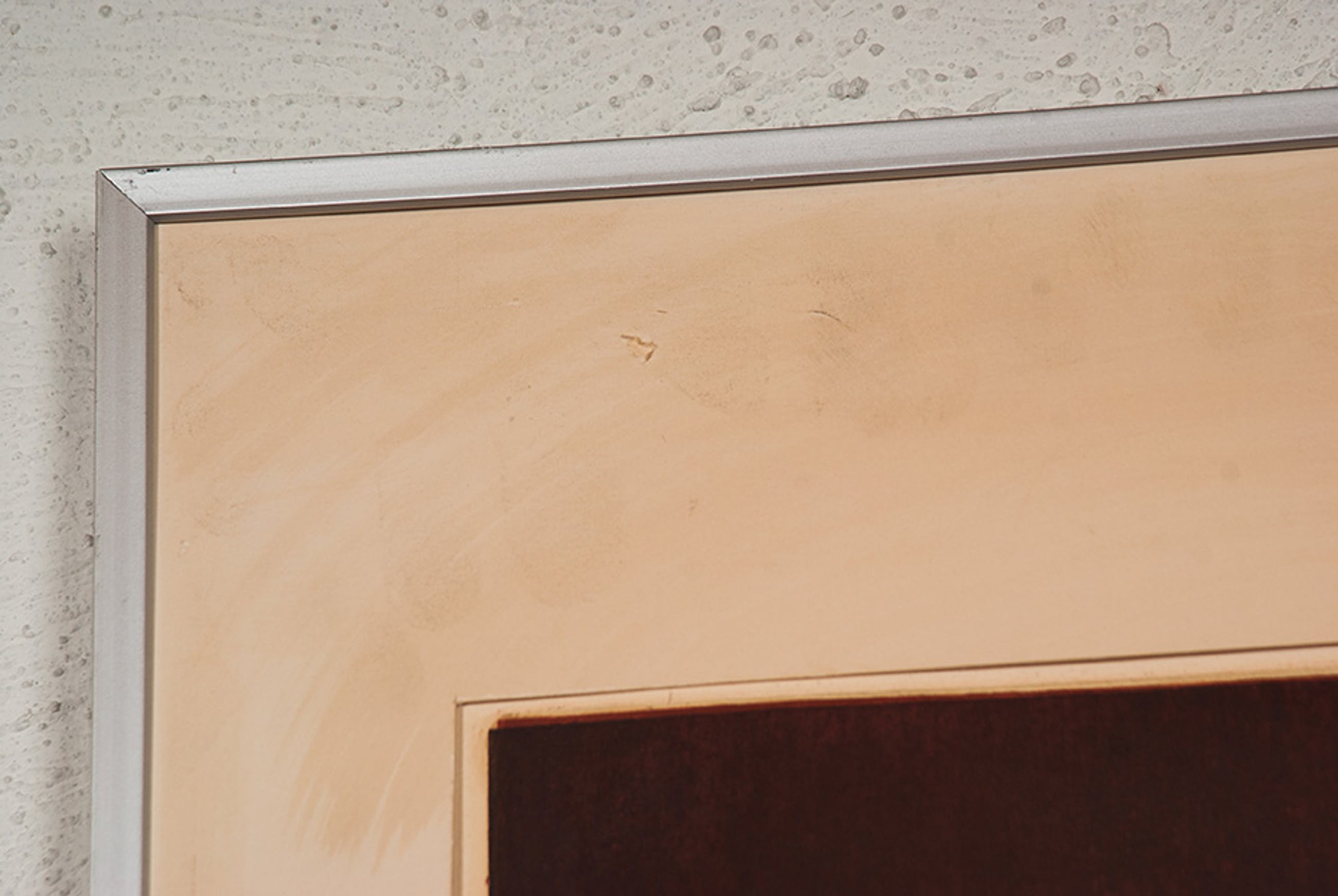 | De glasplaat ontbreekt, het blad en passe-partout is vergeeld; De oppervlakte van het papier is op verschillende plaatsen ingescheurd, met name aan bovenzijde. | |