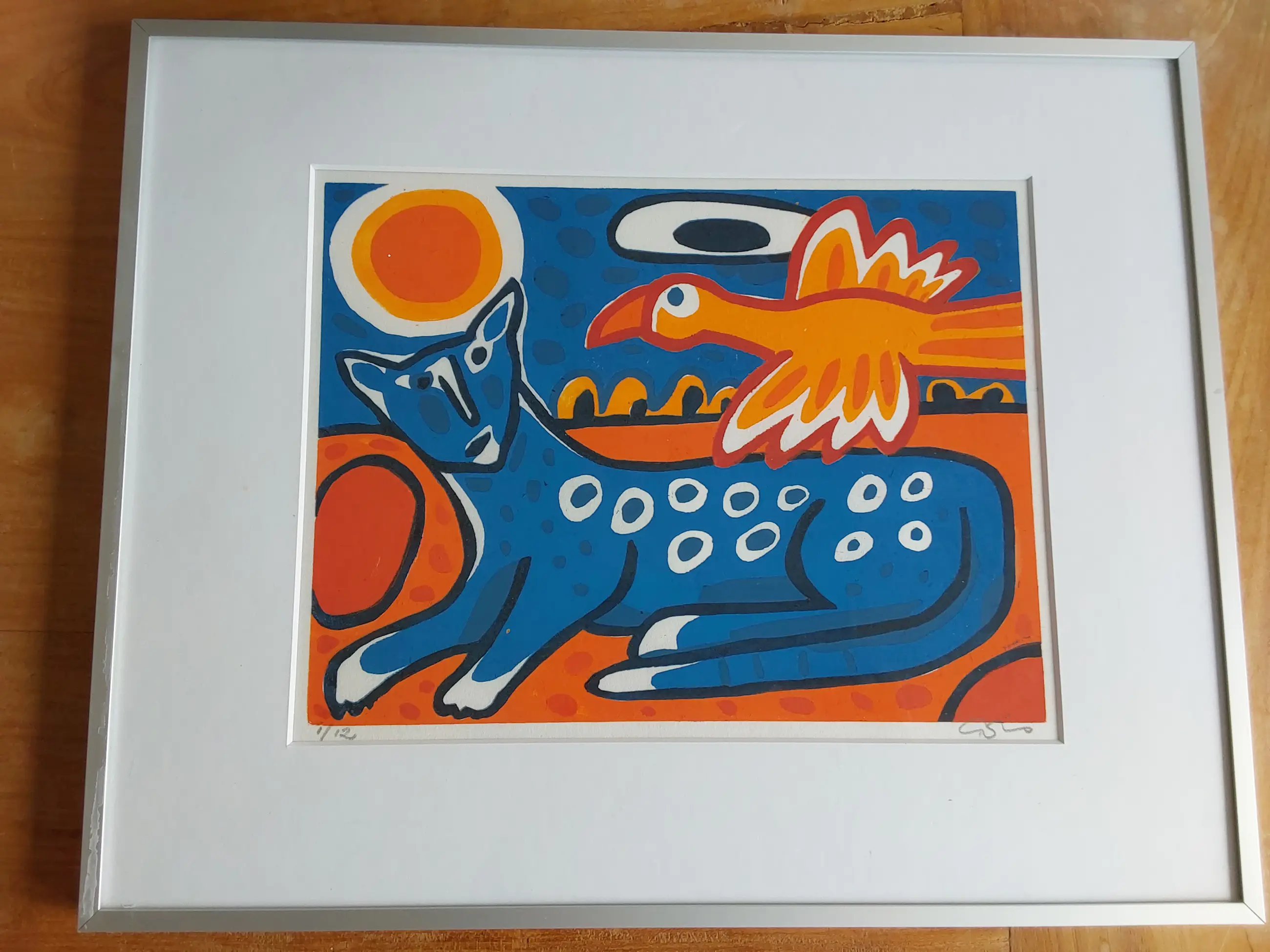 Techniek: Kleur linoleumsnede Het werk vanCees Vis kwam vooral tot stand door persoonlijke belevenissen en emoties van alledag. Om dat in beeld te brengen gebruikte Cees sterk vereenvoudigde vormen, veranderde elementen, laat die weg of voegt toe. Dat alles om zich zo helder mogelijk uit te drukken. De kleuren zijn helder.