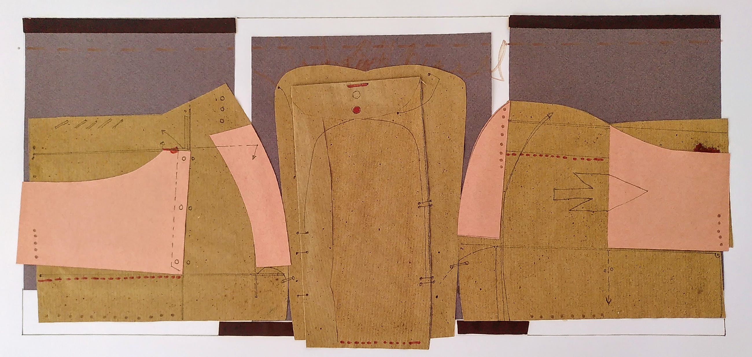 Het betreft een mixed media werk waarbij de basis wordt gevormd door een collage van verschillende vormen dik papier in pasteltinten. Deze zijn voorzien van details in potlood en inkt.