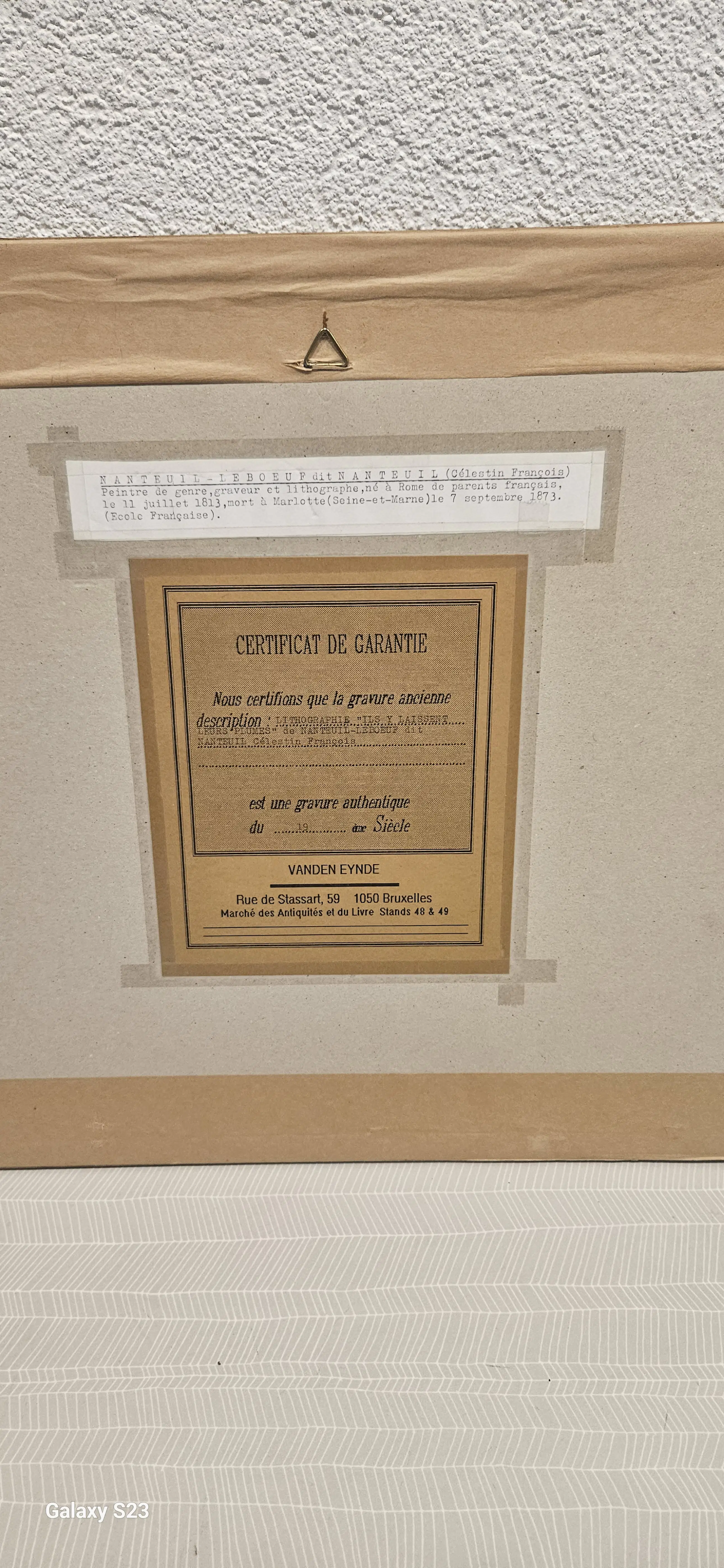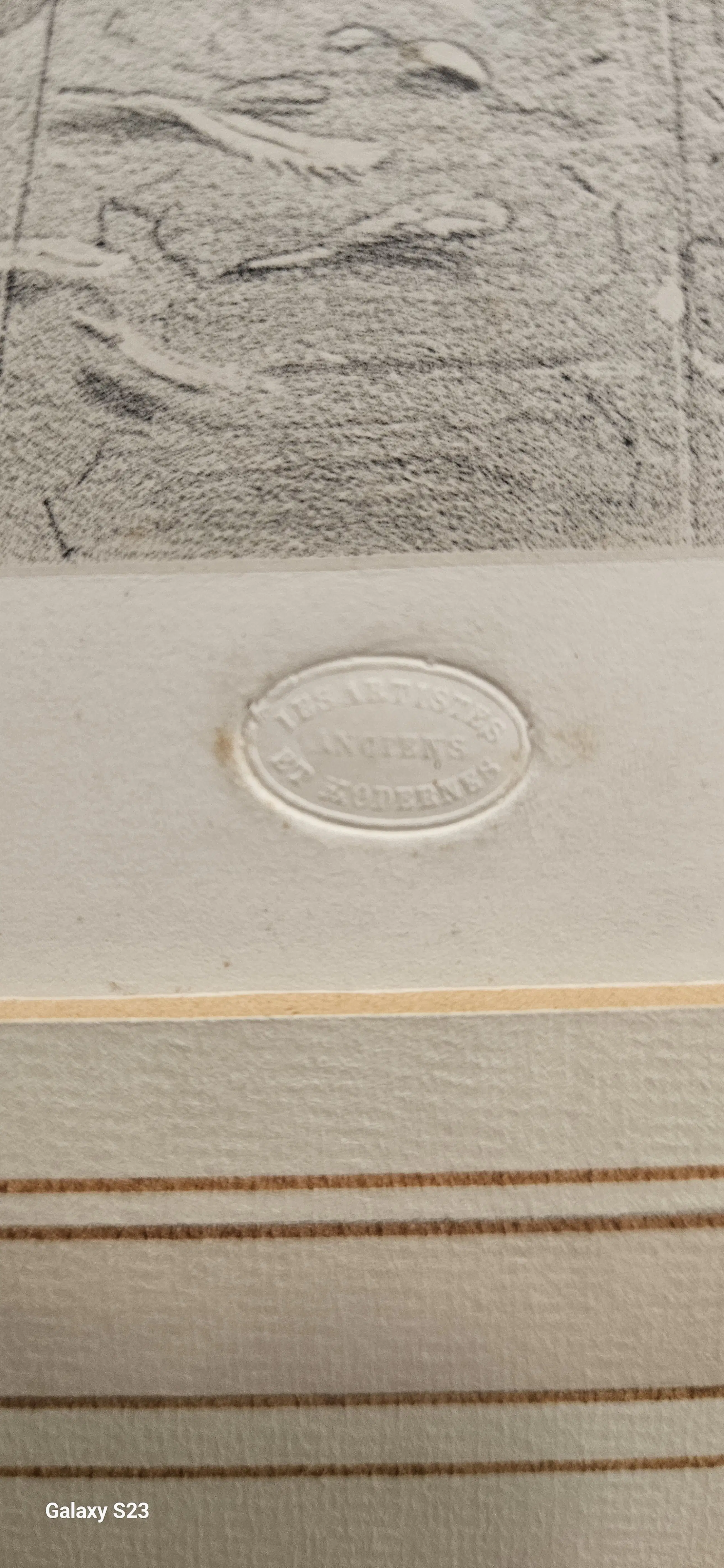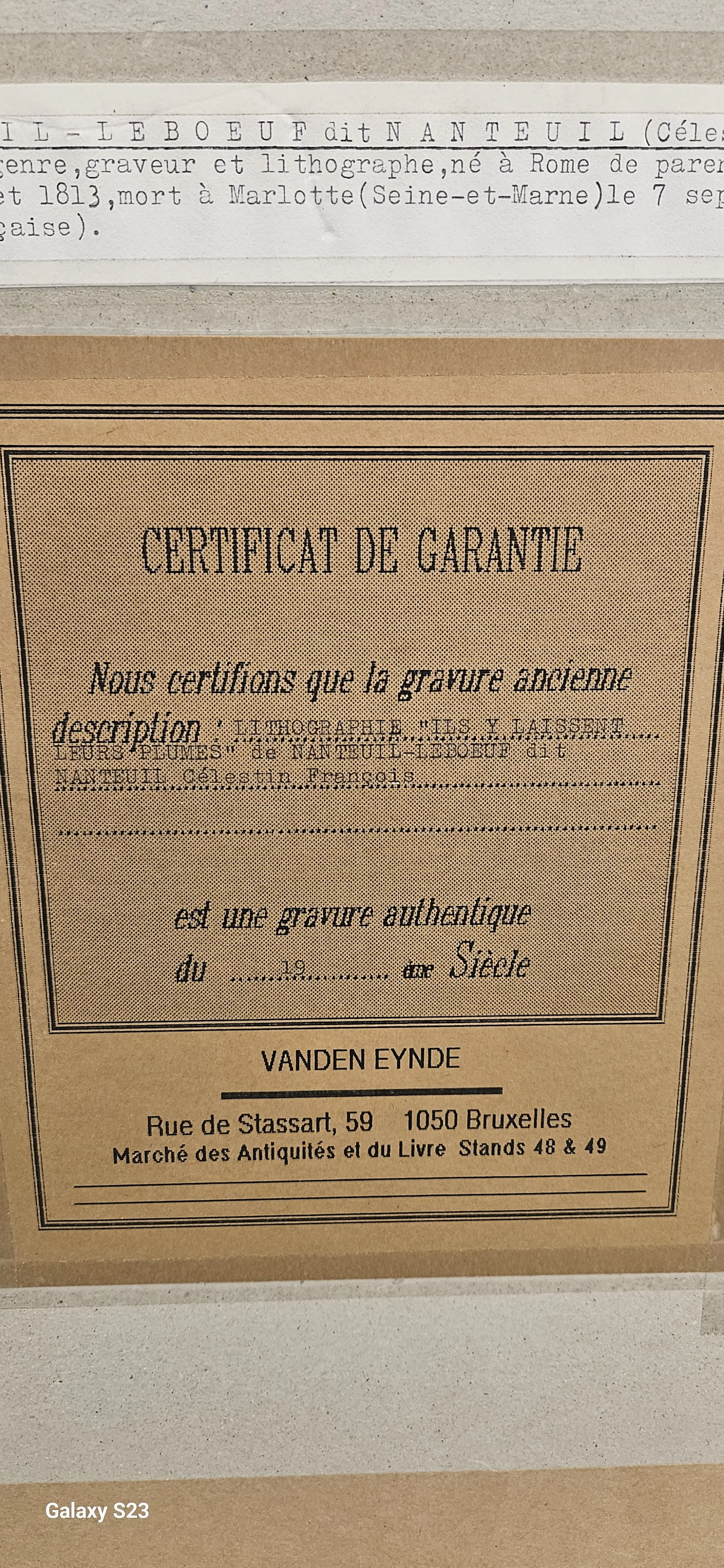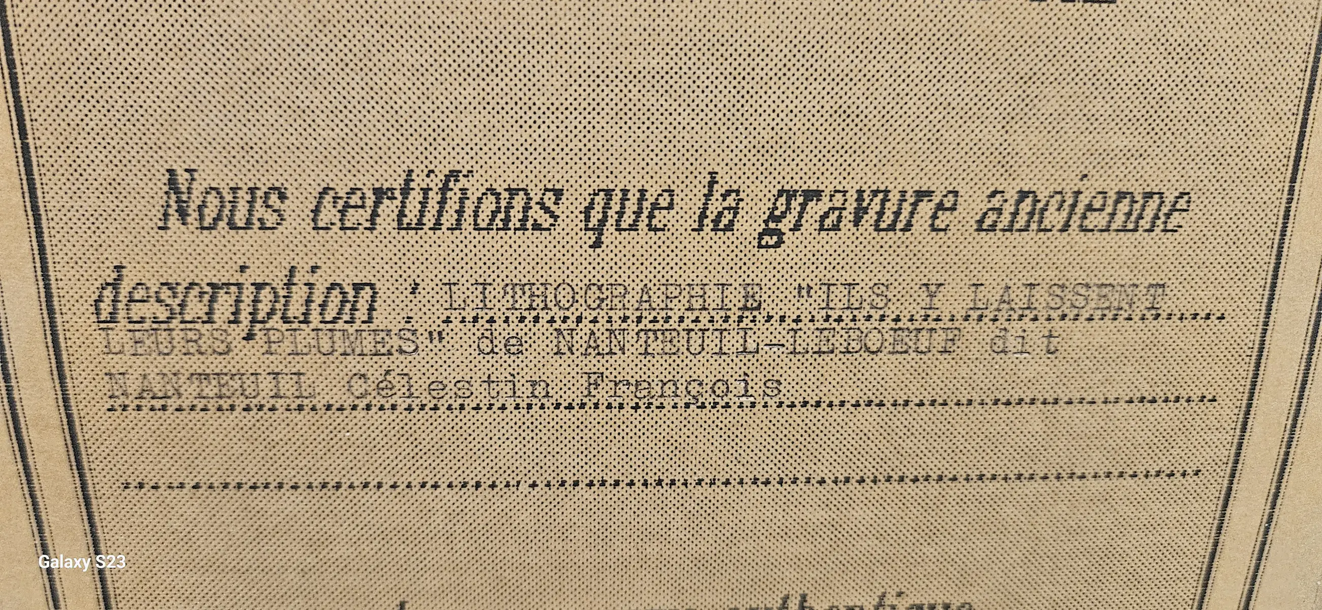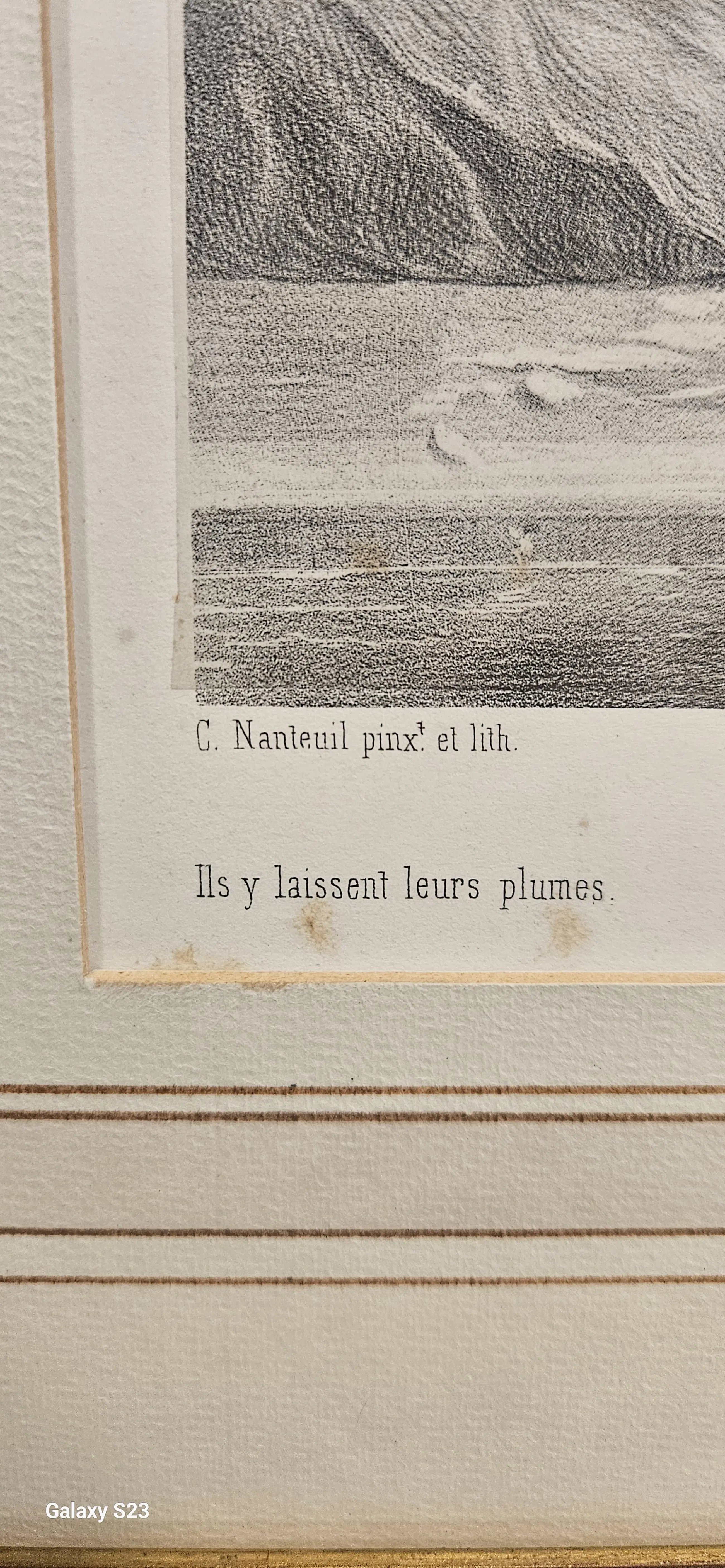 Unieke gravure met certificaat no 19 Ils y laissent leurs plumes Kijk op de foto's voor details en de minimale vlekjes