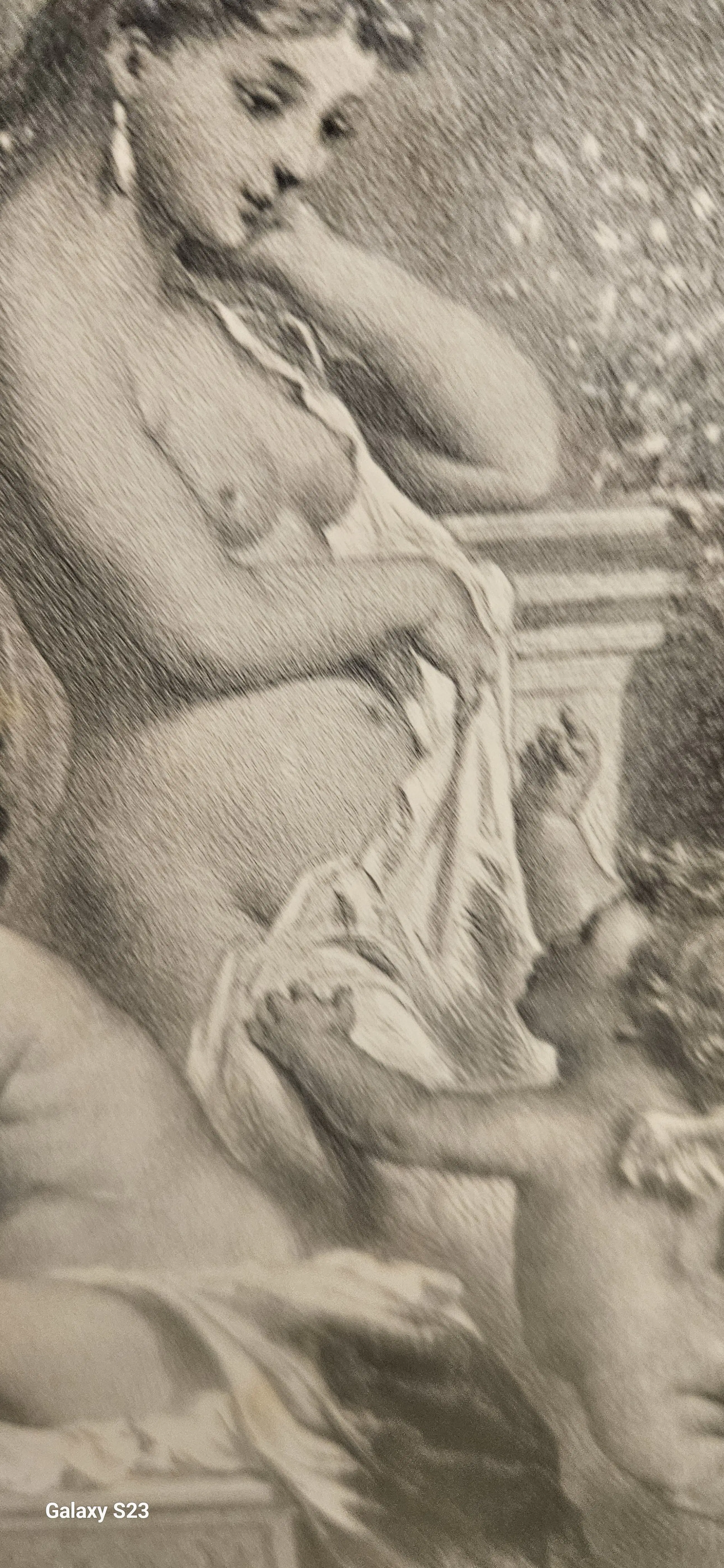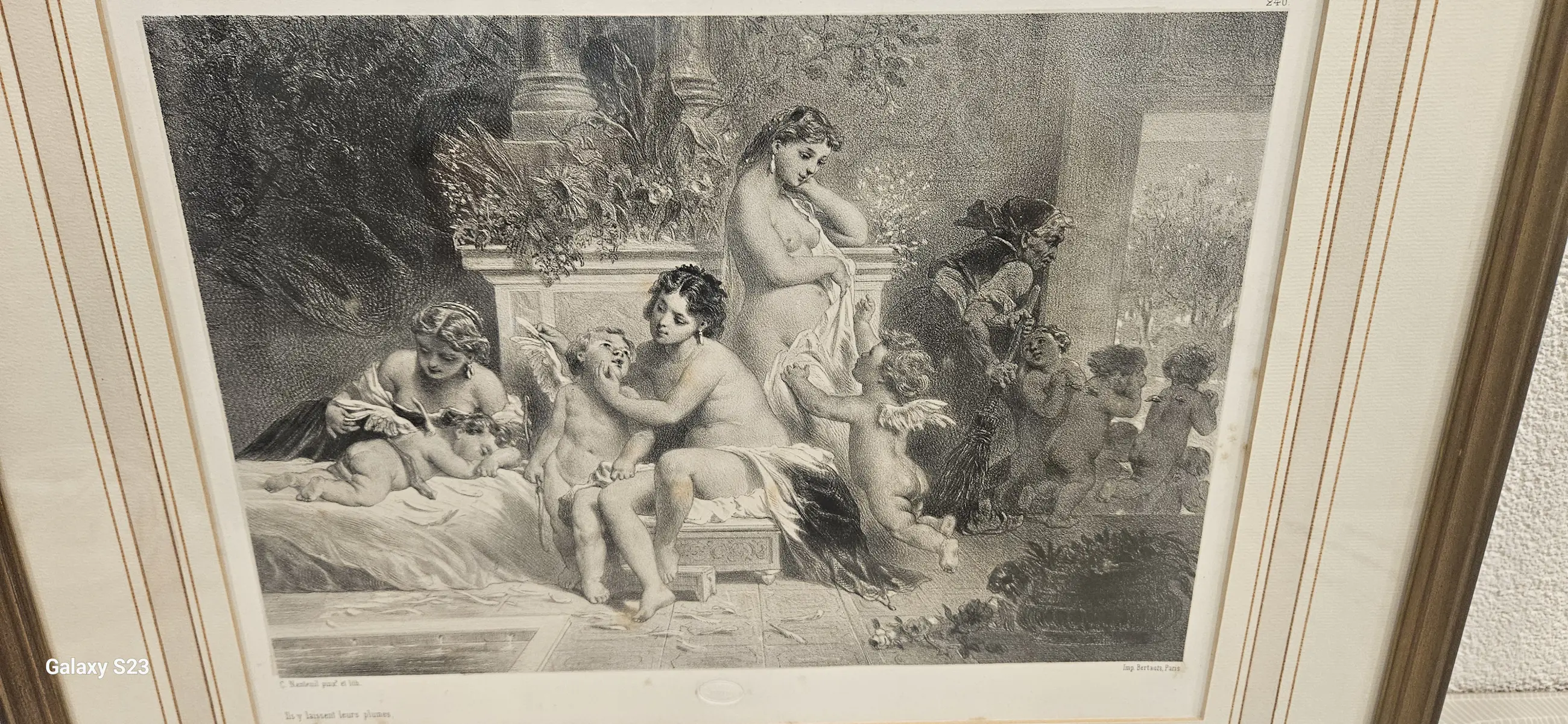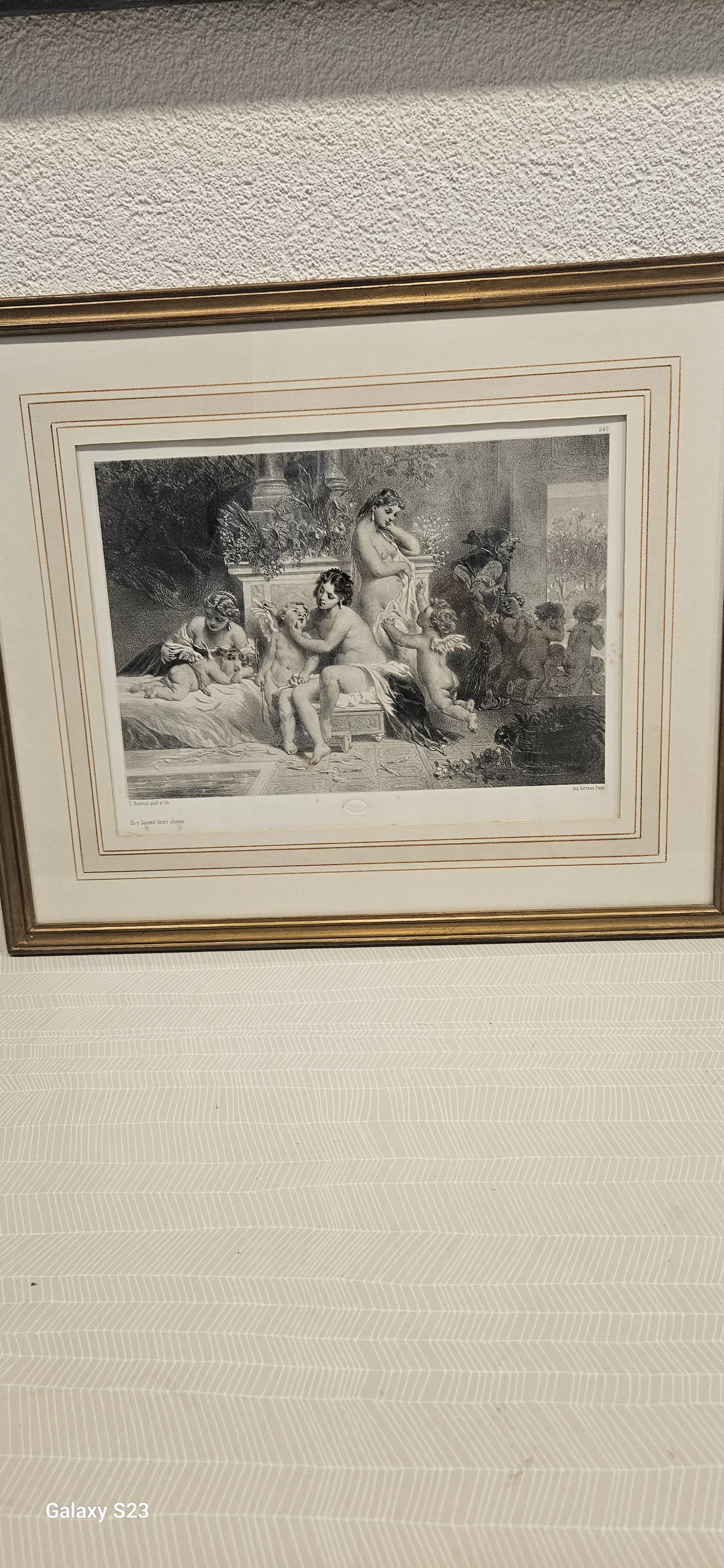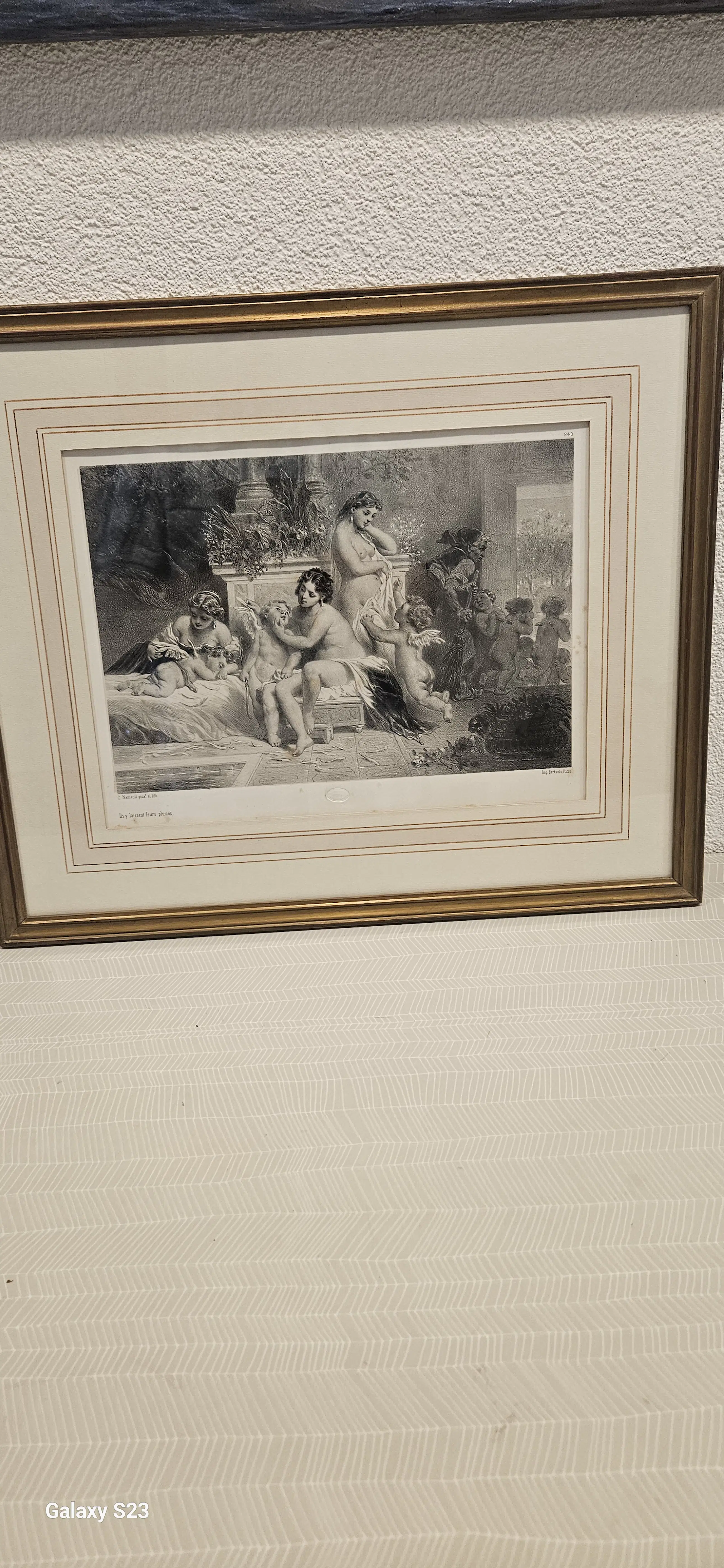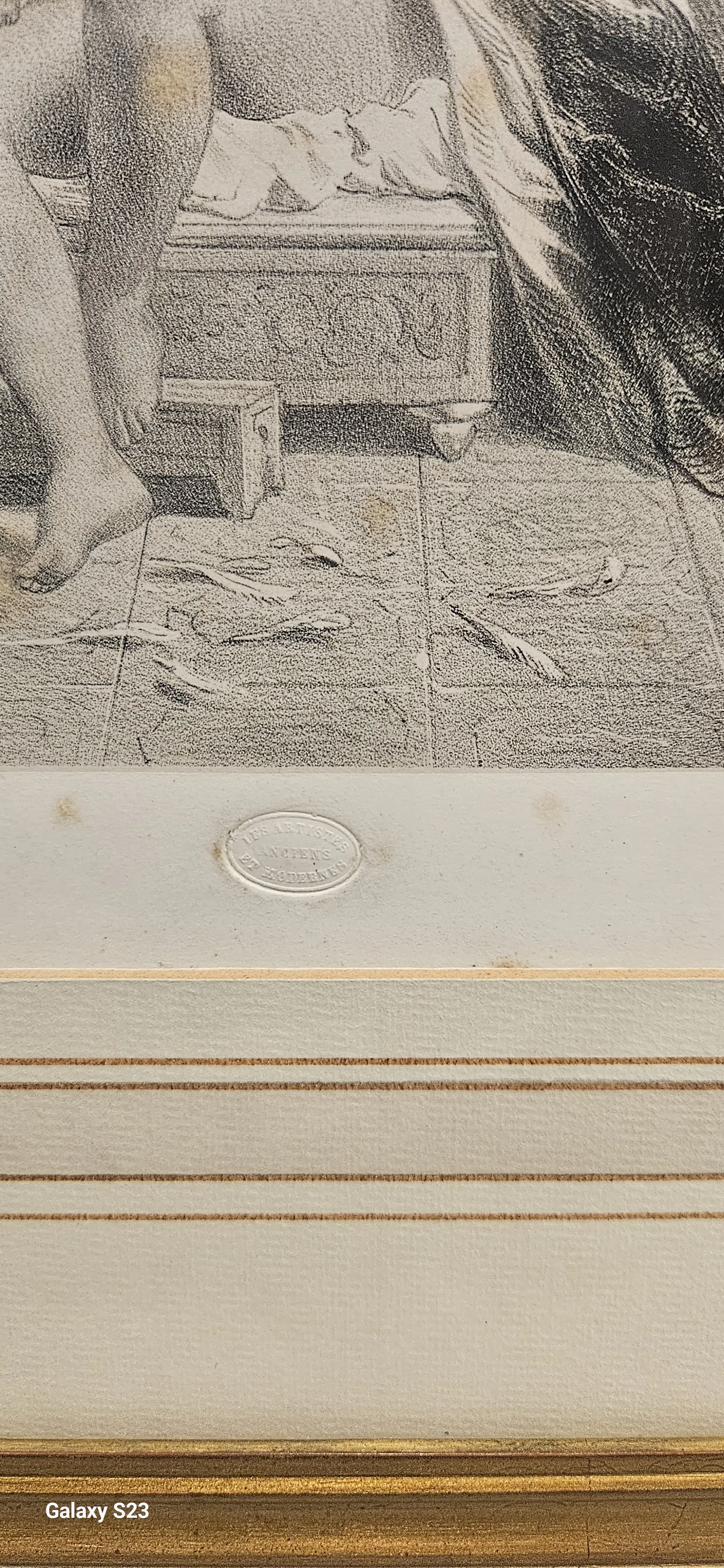Unieke gravure met certificaat no 19 Ils y laissent leurs plumes Kijk op de foto's voor details en de minimale vlekjes
