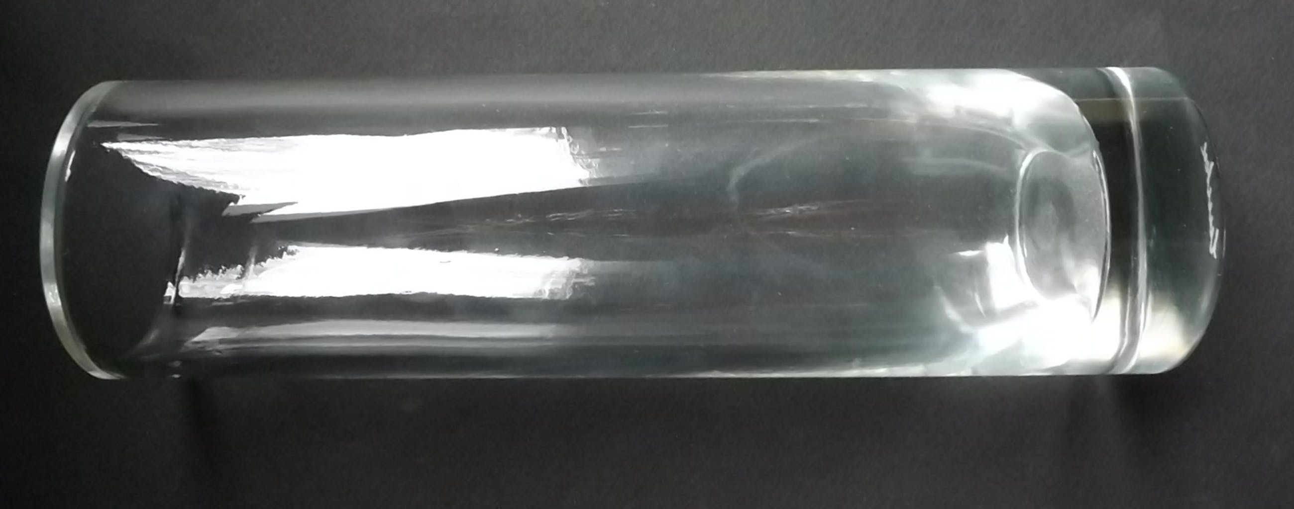 Cenedese cylinder vazen worden in alle kleuren aangeboden, maar een dikwandige doorzichtige kleurloze gesigneerde cylindervaas is echter zeldzaam en daarom een verzamelobject. De vaas onder de voet voluit gesigneerd "Cenedese".