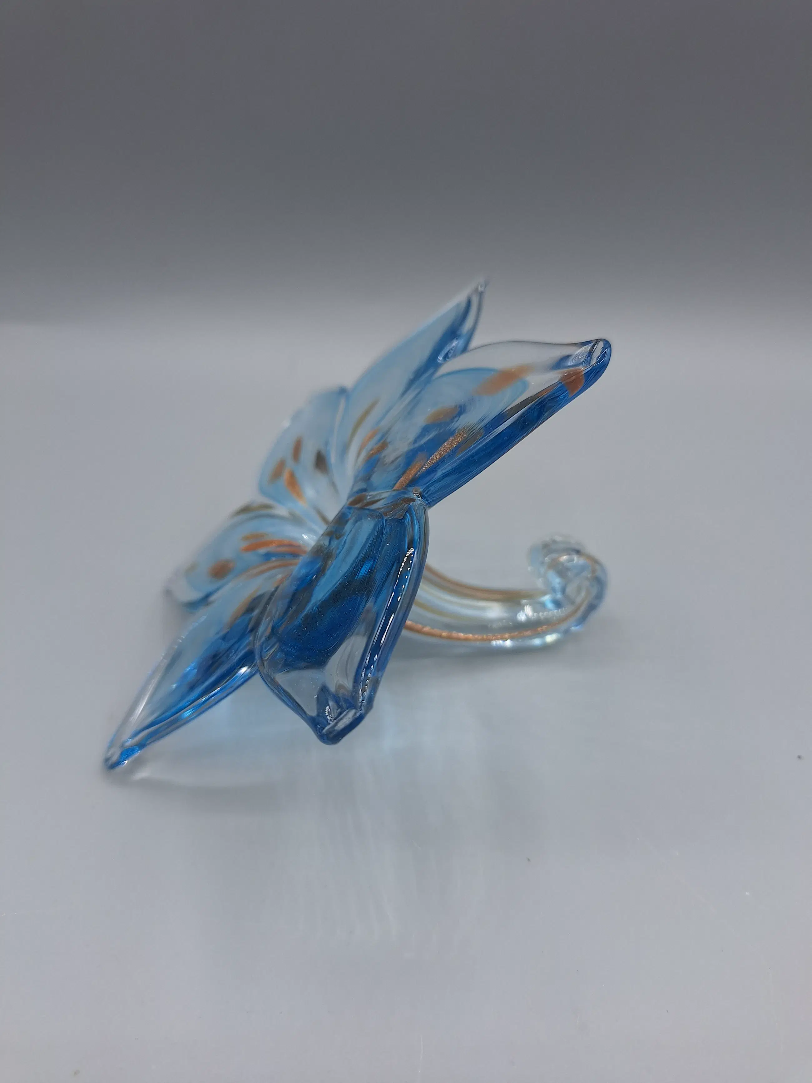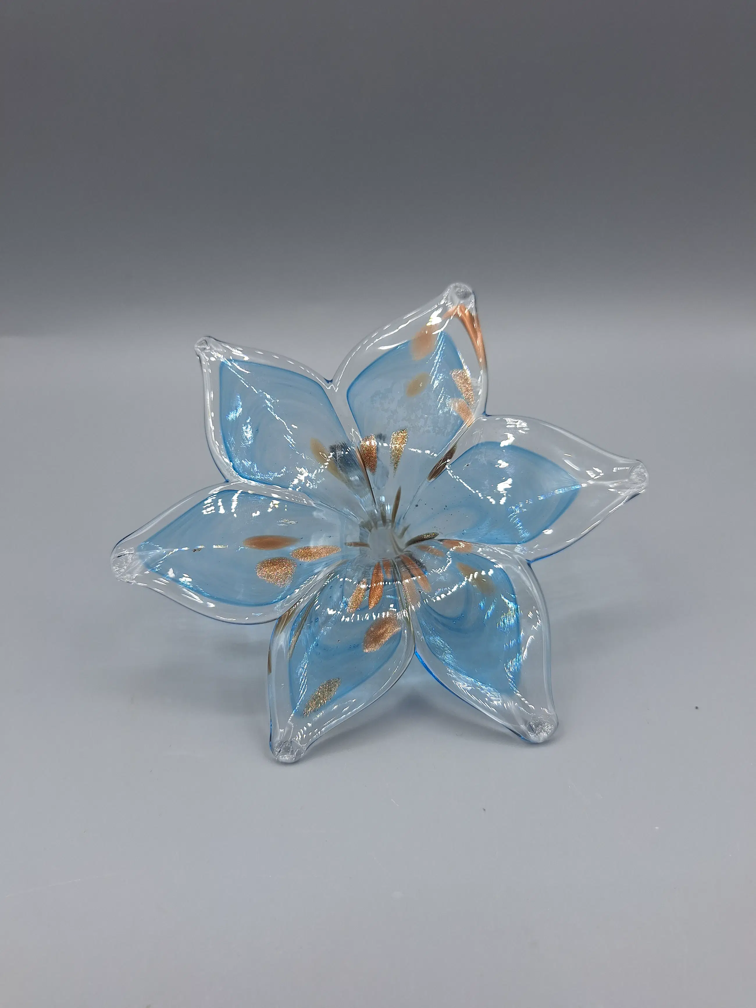 Prachtig handgeblazen glazen bloem Murano glas. Blauw. 13 x 8 cm