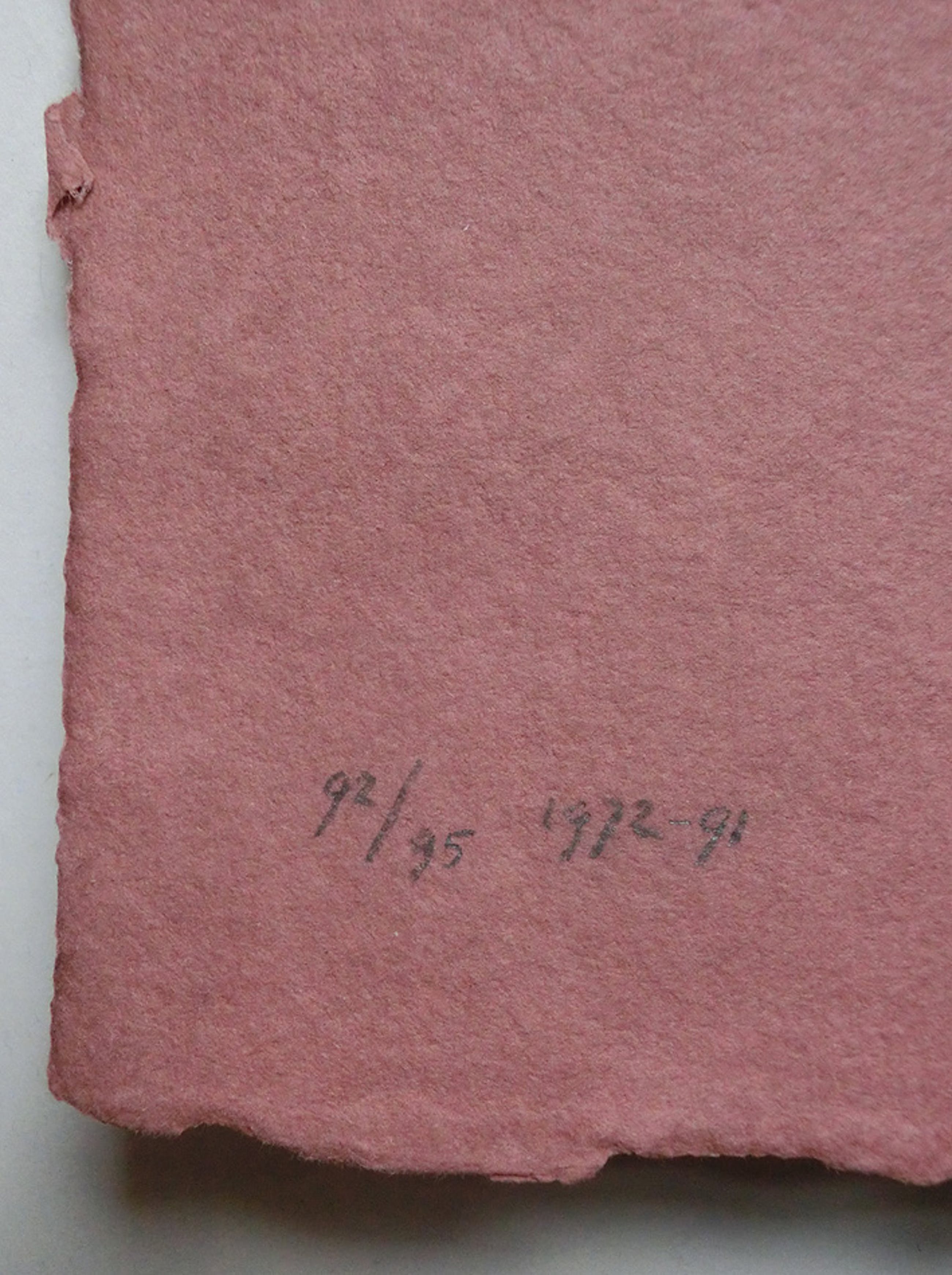 Mooie heldere kleuren dekkend gedrukt op geschept papier. Papier is momenteel niet helemaal vlak omdat het opgerold bewaard is geweest. Dit trekt bij.