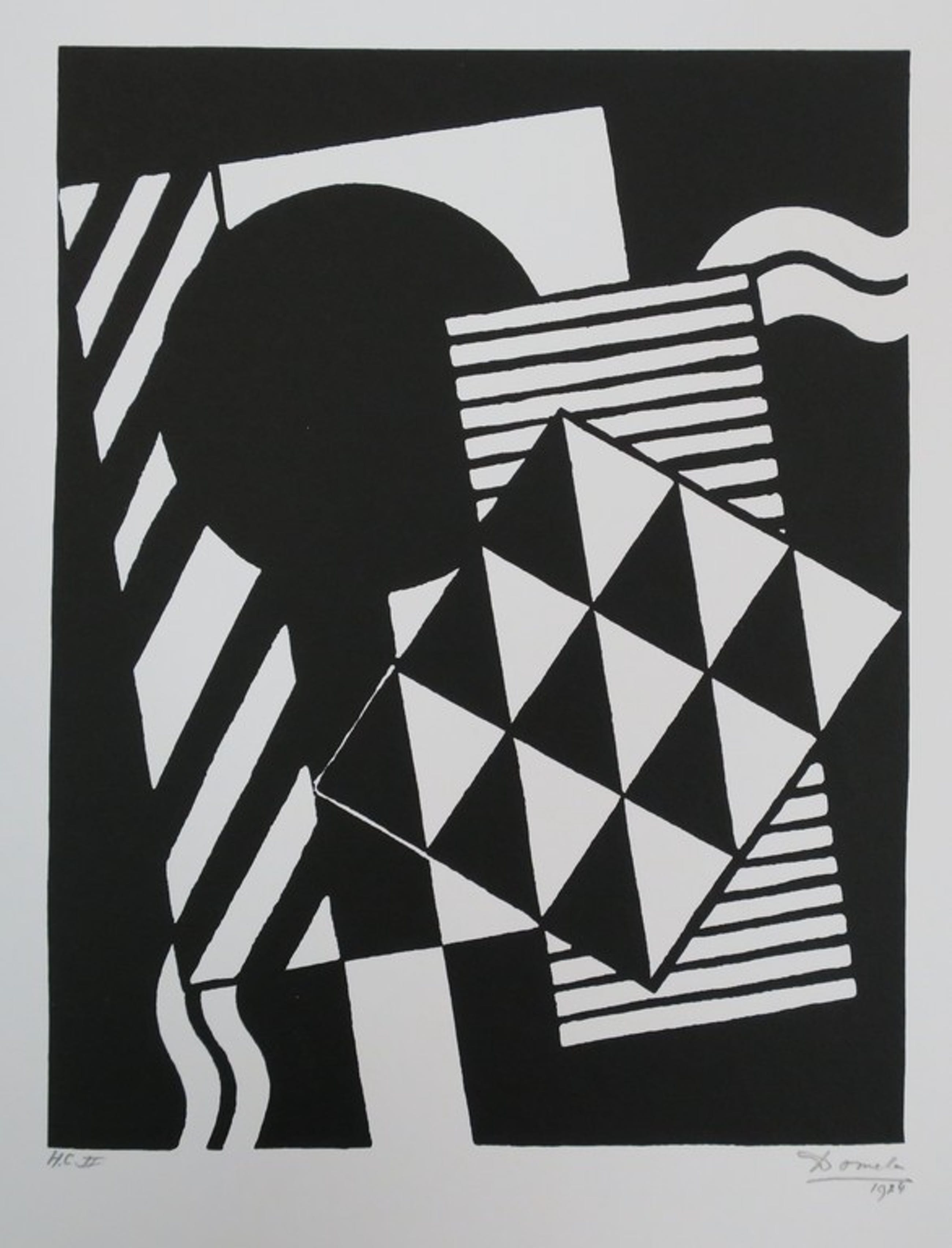 Mooie 'Konstruktive' zeefdruk van César Domela uit 1973 naar werk uit 1924