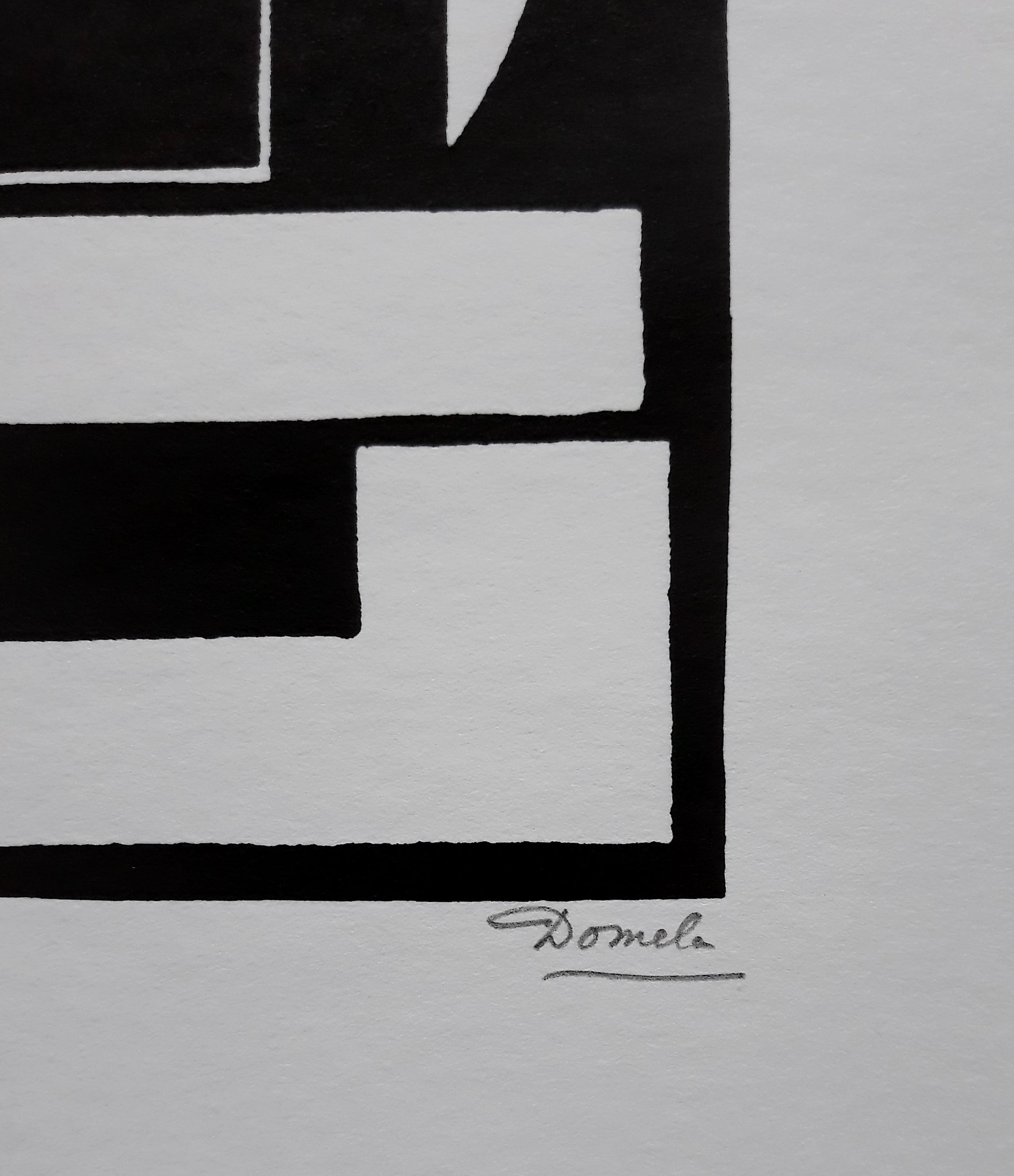 Mooie, strakke compositie van Cesar Domela uit zijn vroege constructivistische periode. Het betreft een herdruk uit 1973 van werk uit “10 Konstuktieve Studien” (1924). Zeefdruk op papier, met potlood gesigneerd en genummerd (78/130). In mint conditie.