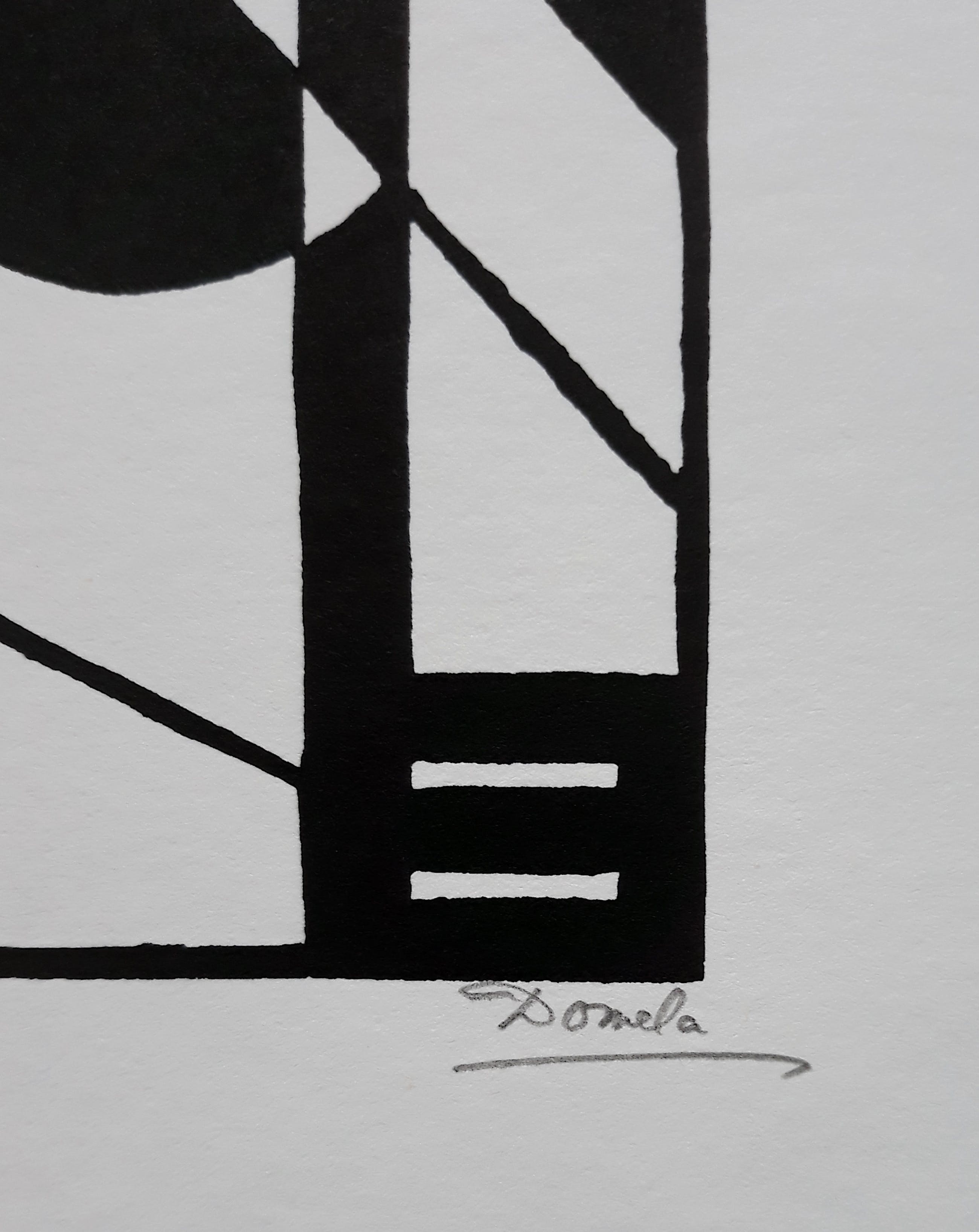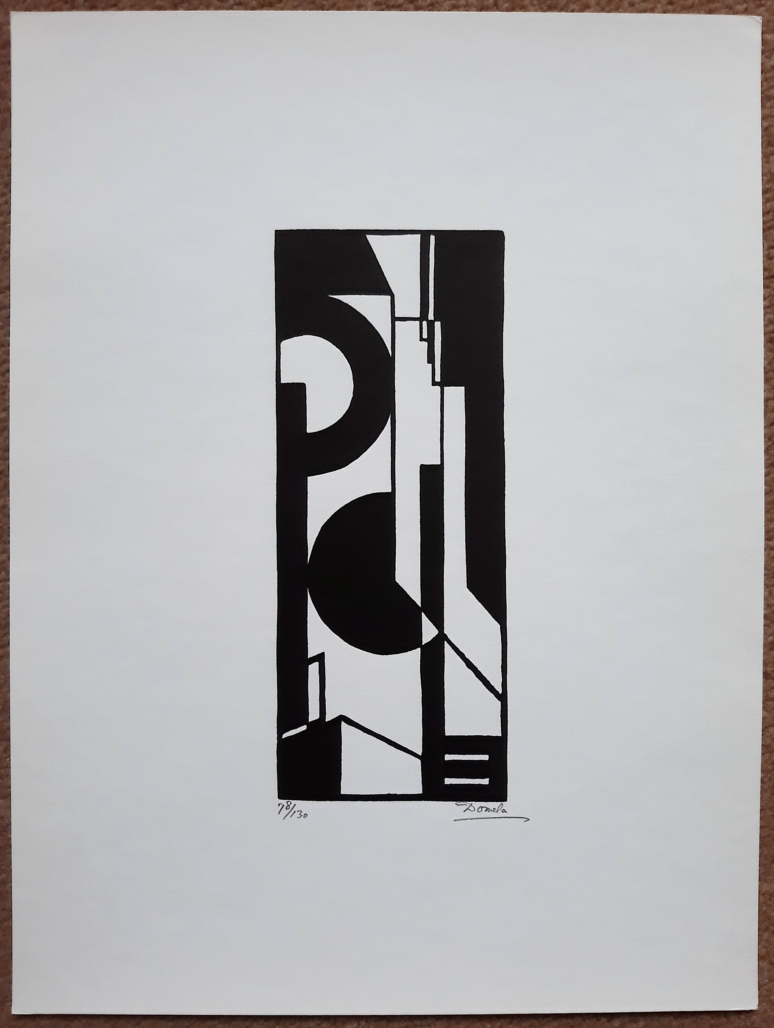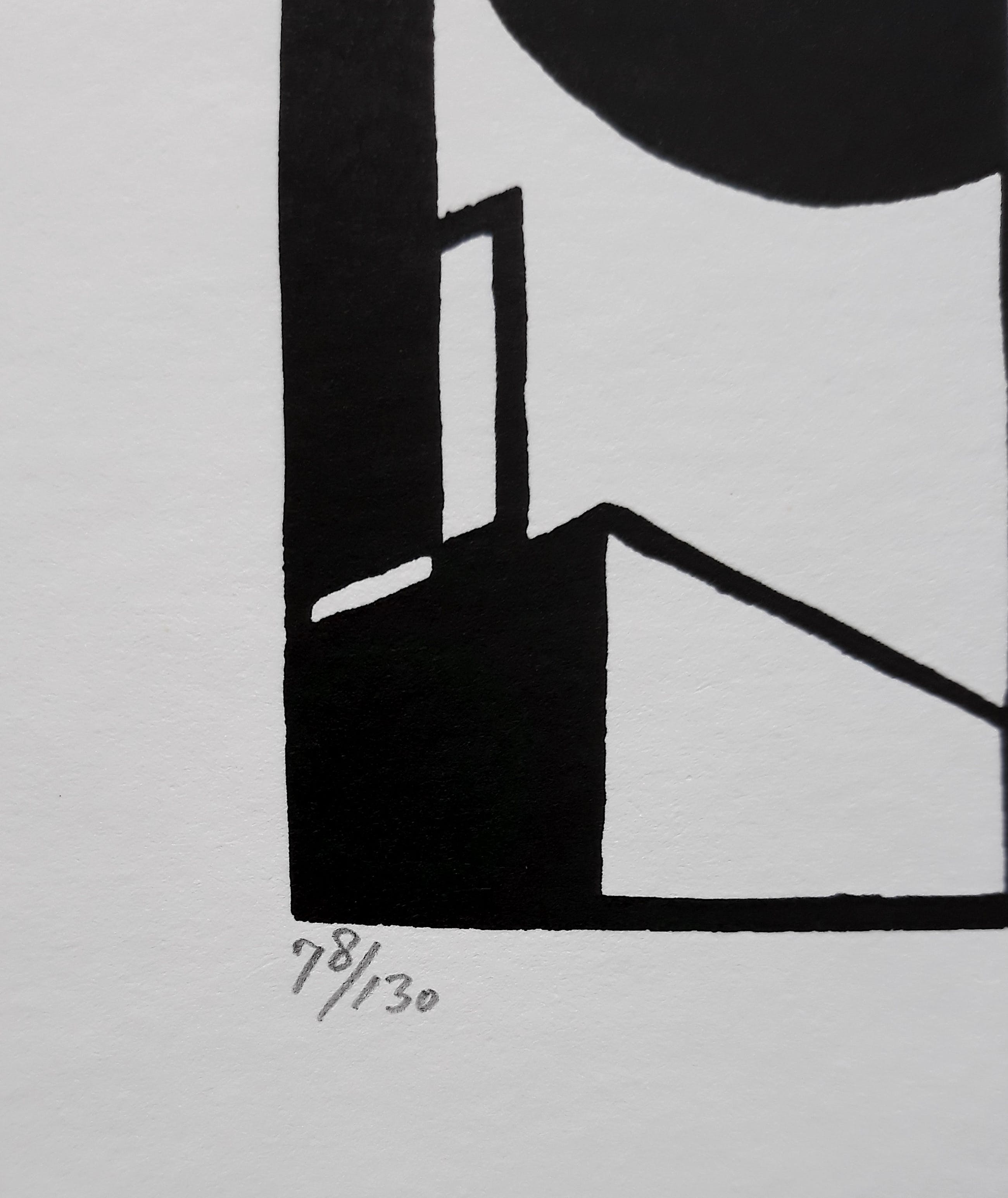 Mooie, strakke compositie van Cesar Domela uit zijn vroege constructivistische periode. Het betreft een herdruk uit 1973 van werk uit “10 Konstuktieve Studien” (1924). Zeefdruk op papier, met potlood gesigneerd en genummerd (78/130). In mint conditie.