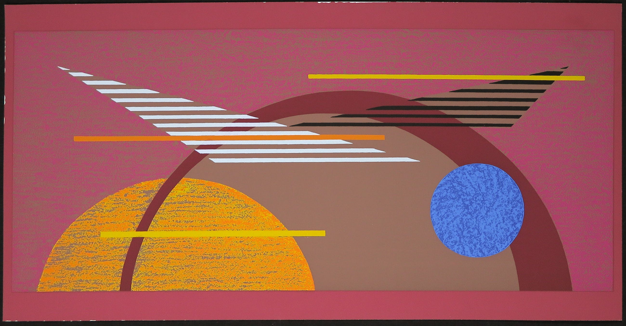 | Lichte vouw in de hoek linksonder van de (ongesigneerde zeefdruk), met lichte slijtage langs de rand. Het werk met de signaturen is wat vlekkerig langs de onderste rand. | |||