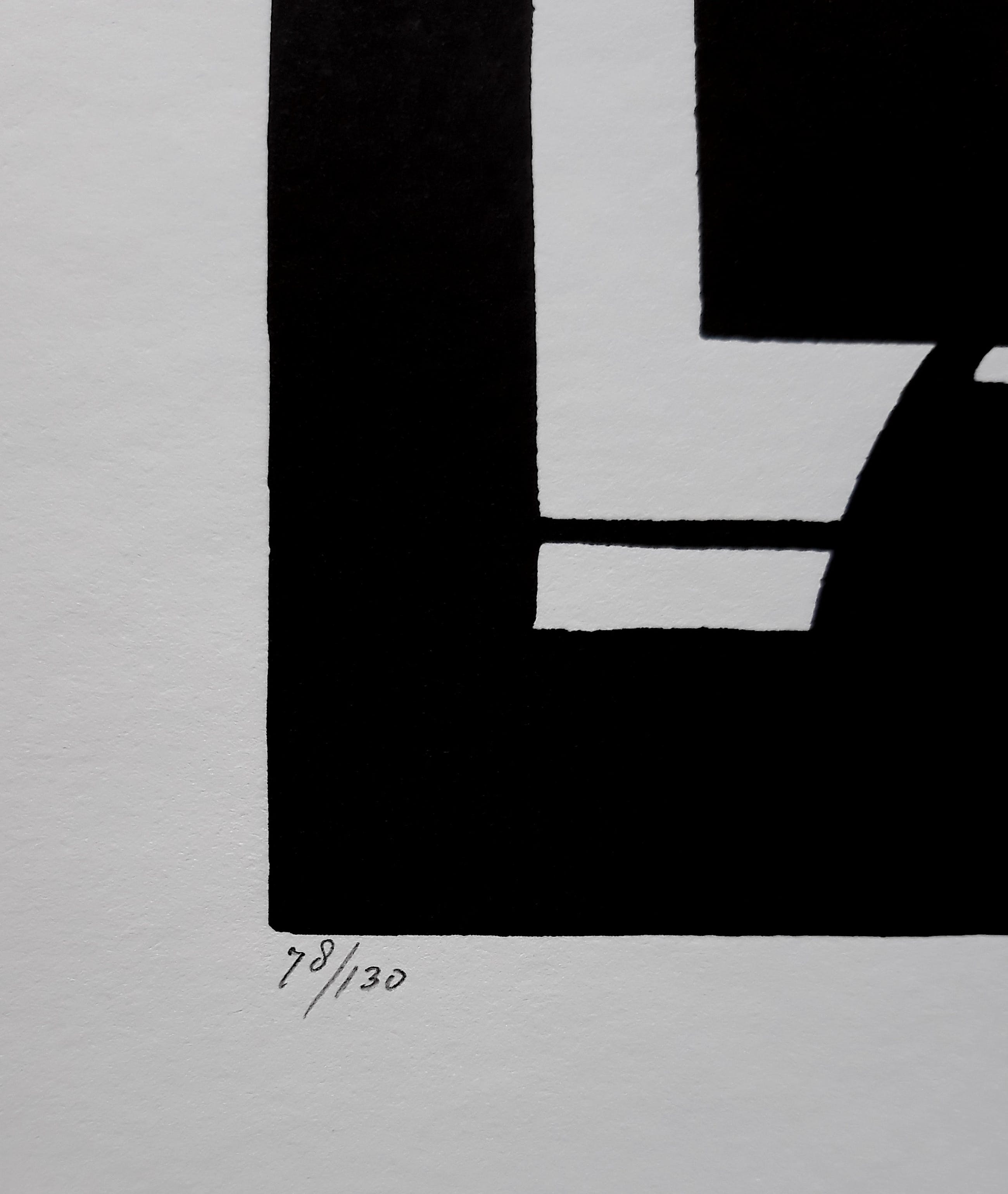 Mooie, strakke compositie van Cesar Domela uit zijn vroege constructivistische periode. Het betreft een herdruk uit 1973 van werk uit “10 Konstuktieve Studien” (1924). Zeefdruk op papier, met potlood gesigneerd en genummerd (78/130). In mint conditie.
