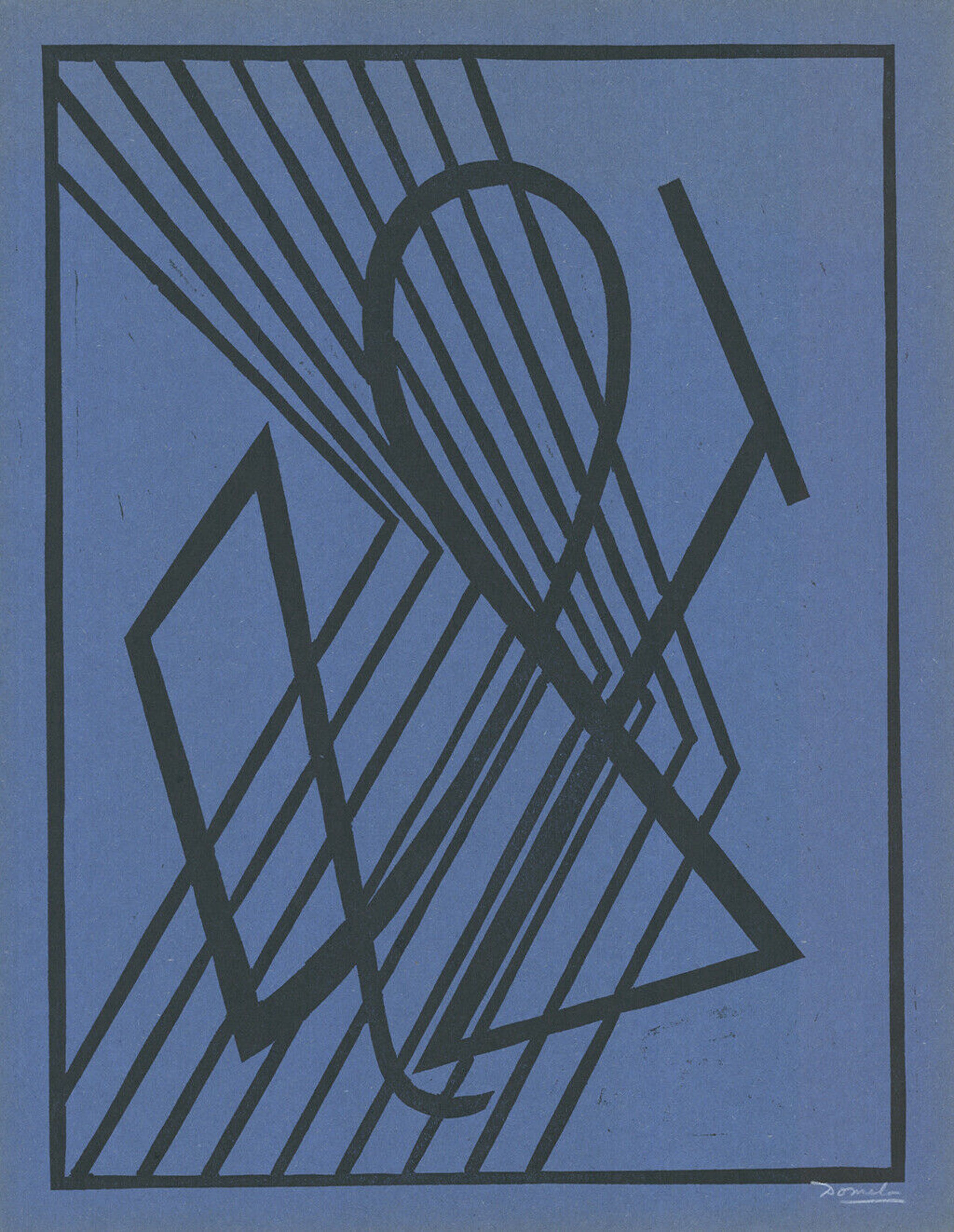 Fraaie houtsnede op geschept blauw papier Ondertekend rechtsonder in wit potlood Maten werk: 29 x 22 cm In goede staat
