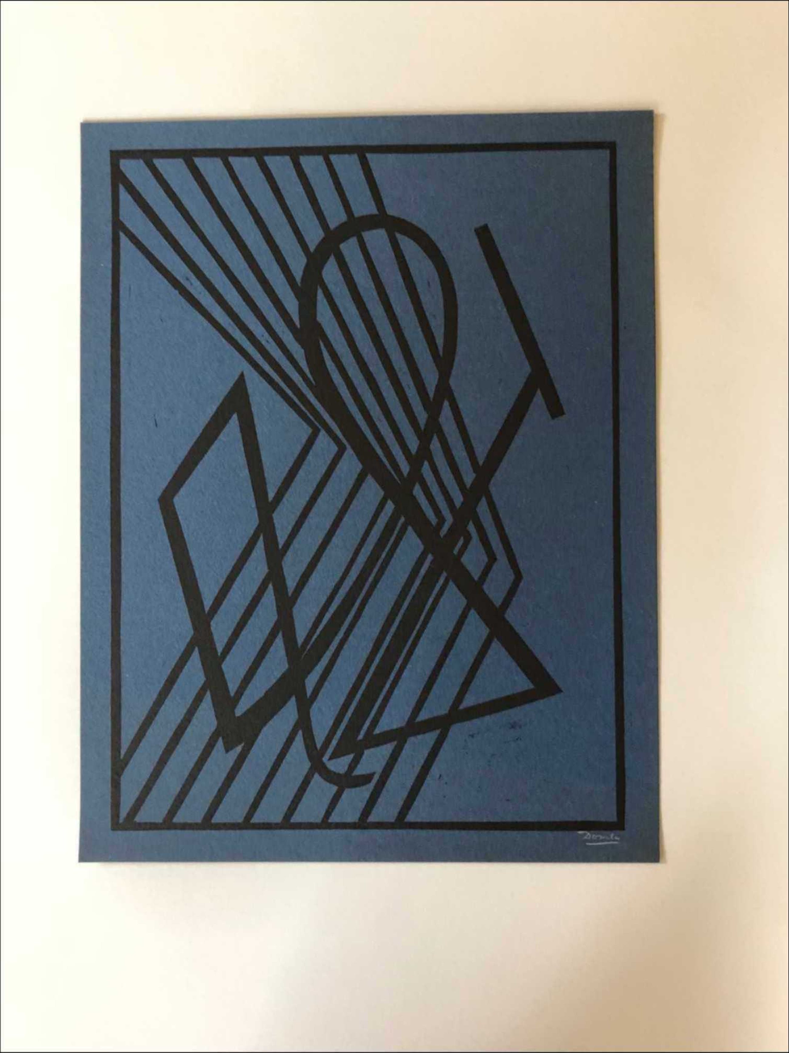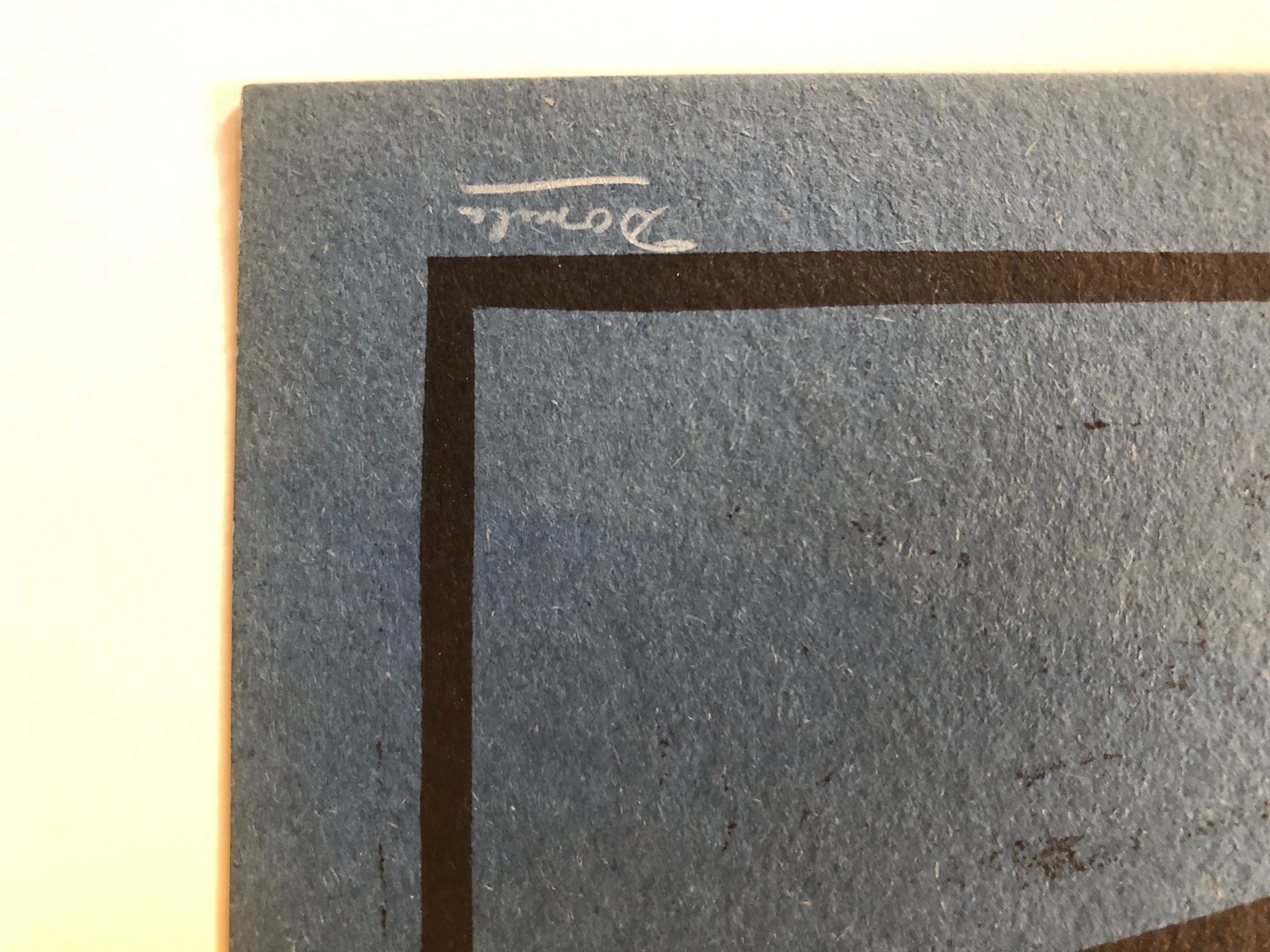Fraaie houtsnede op geschept blauw papier Ondertekend rechtsonder in wit potlood Maten werk: 29 x 22 cm In goede staat