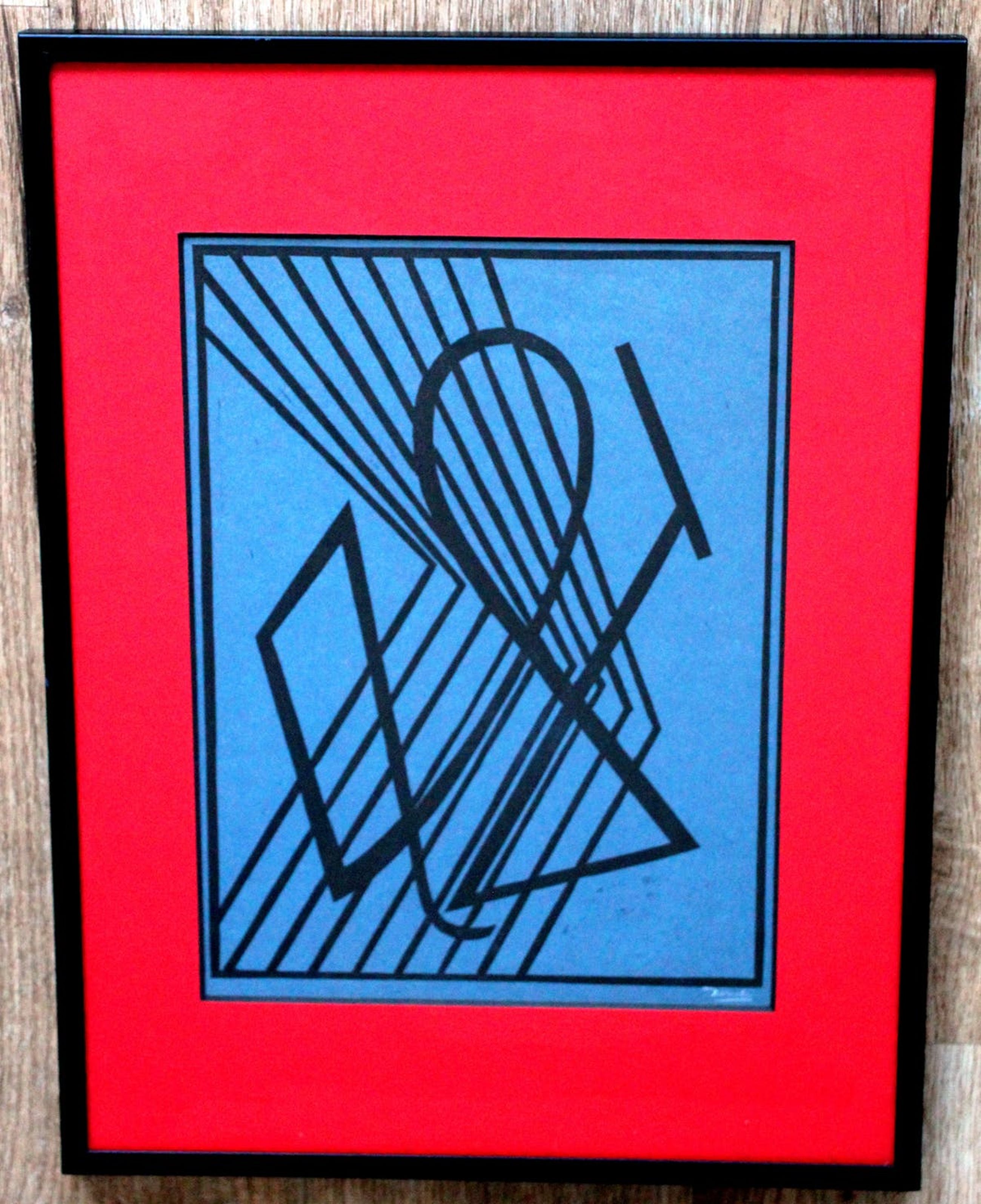 Ingelijste zeefdruk van Cesar Domela . Titel: Amsterdam. Compositie, zwarte lijnen op blauw. Afmetingen incl lijst: H41 x b31cm. Afmetingen voorstelling: H27.5 x b20.5cm. Het werk is rechtsonder gesigneerd door de kunstenaar. De authenticiteit van dit werk wordt volledig gegarandeerd. Een certificaat van echtheid kan, op aanvraag, worden gemaild.