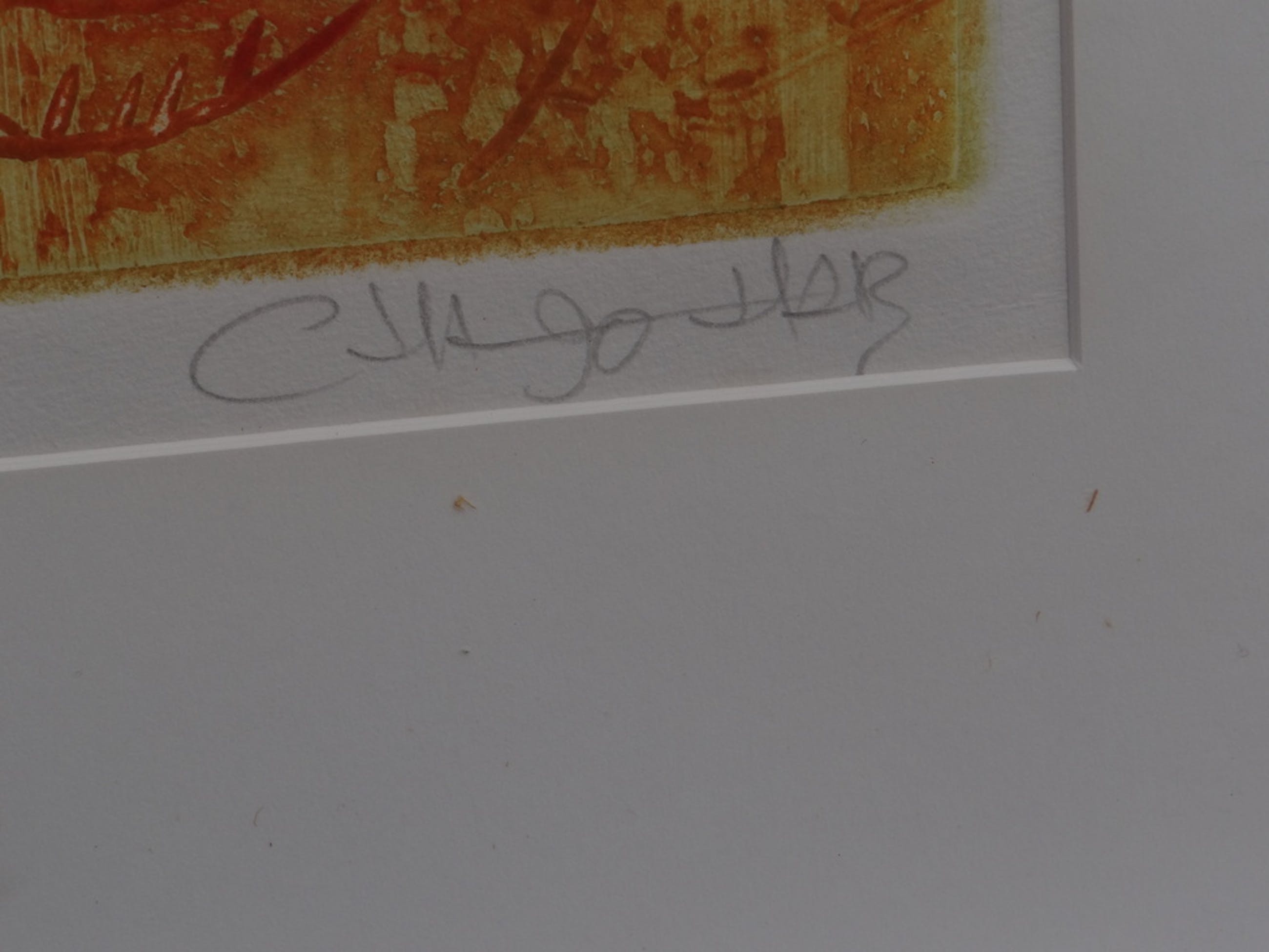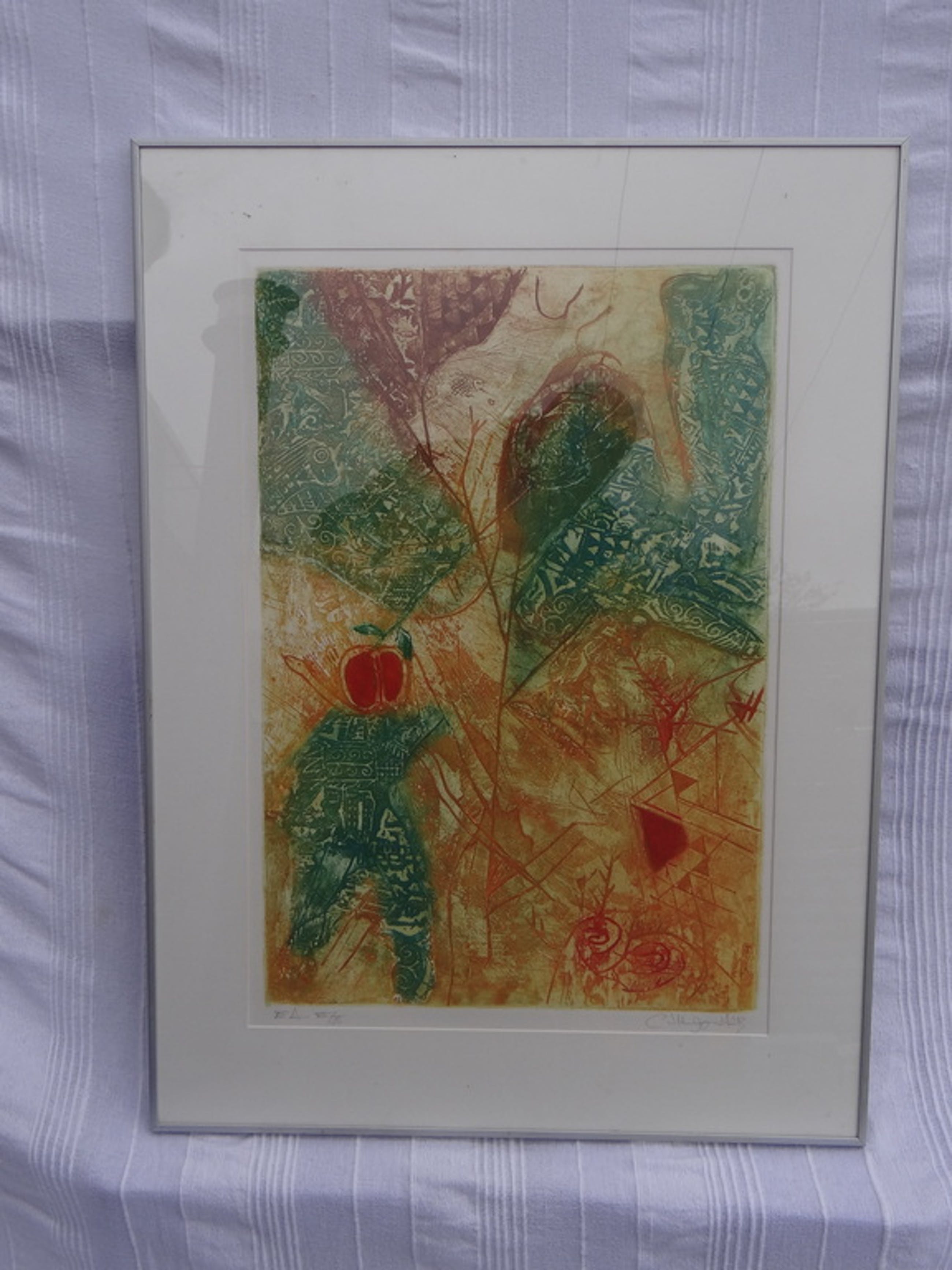 Kleurenets van Chabab Tayefeh Mohajer. Eveneens ander werk van Chabab Tayefeh Mohajer aangeboden in de veiling. In de serie passen de etsen heel mooi bij elkaar.