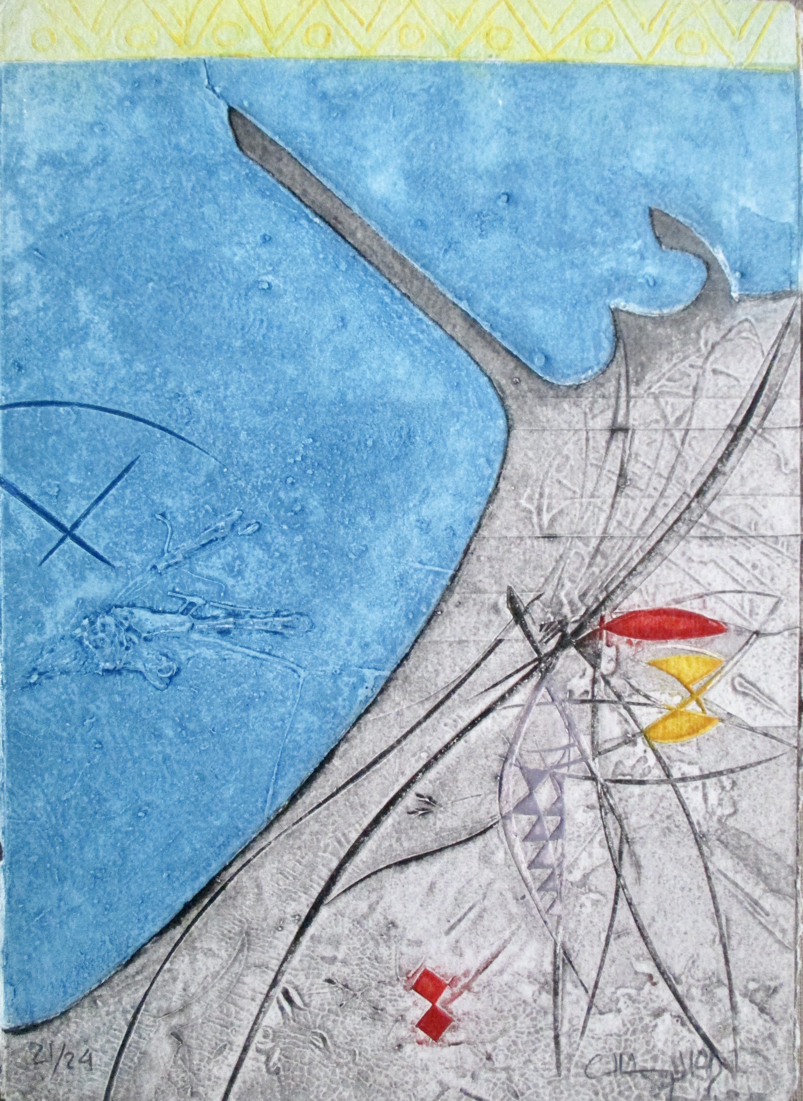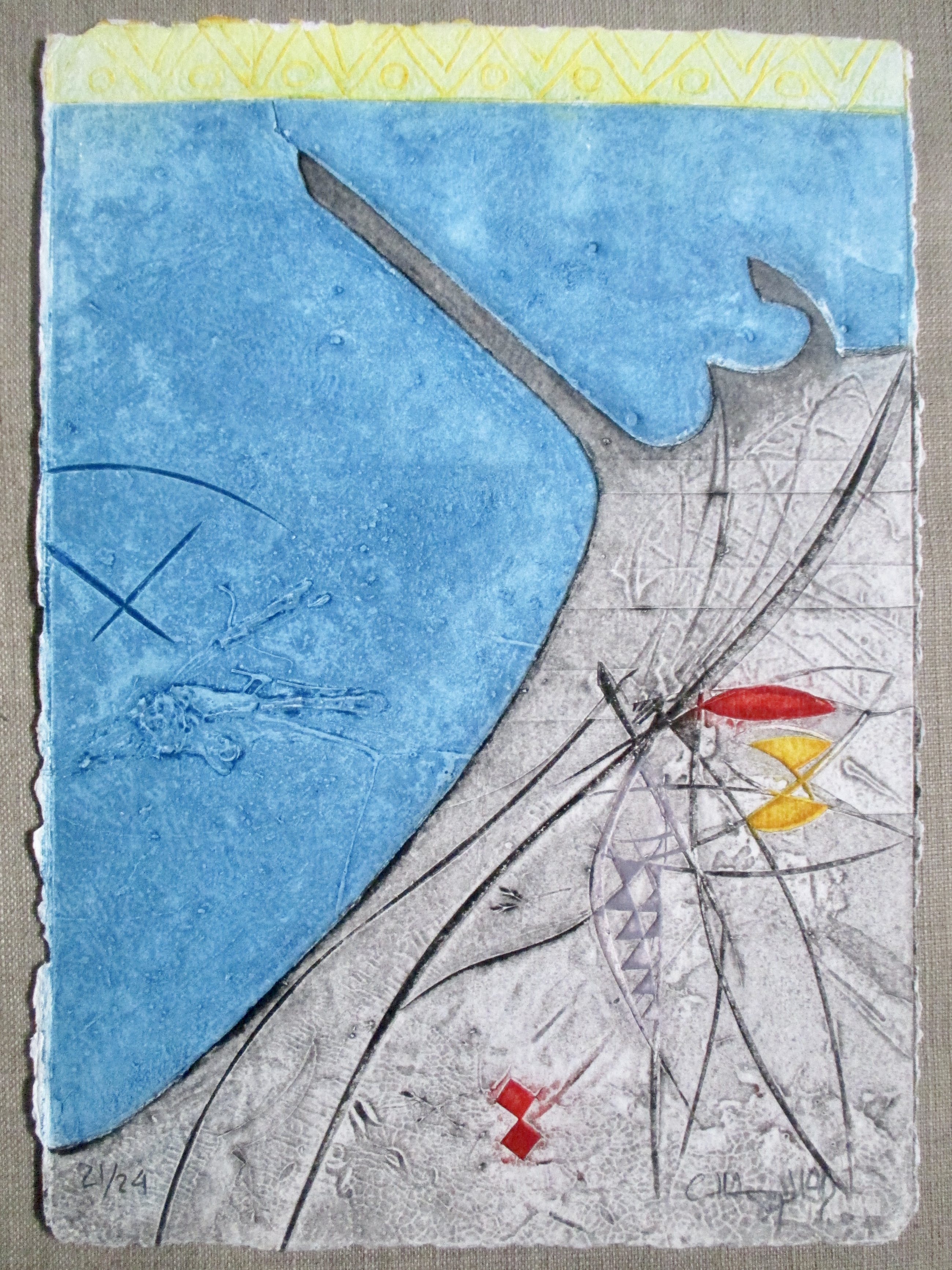 Ets van Chabab Mohajer, ik denk een carborundum druk met reliëf. Gesigneerd en genummerd in potlood. Verzending tussen twee plaatjes, 8,25, aangetekend 10,20
