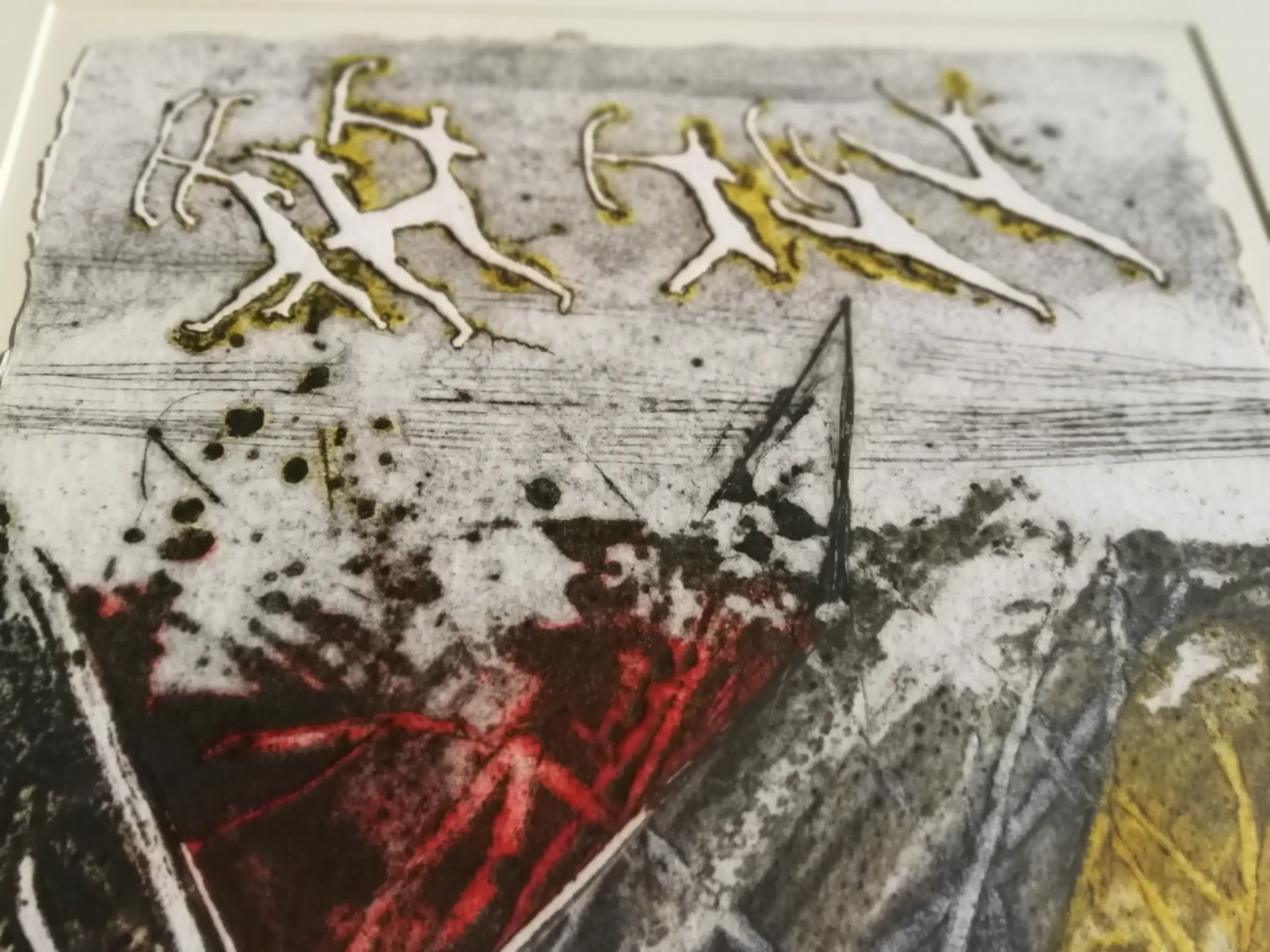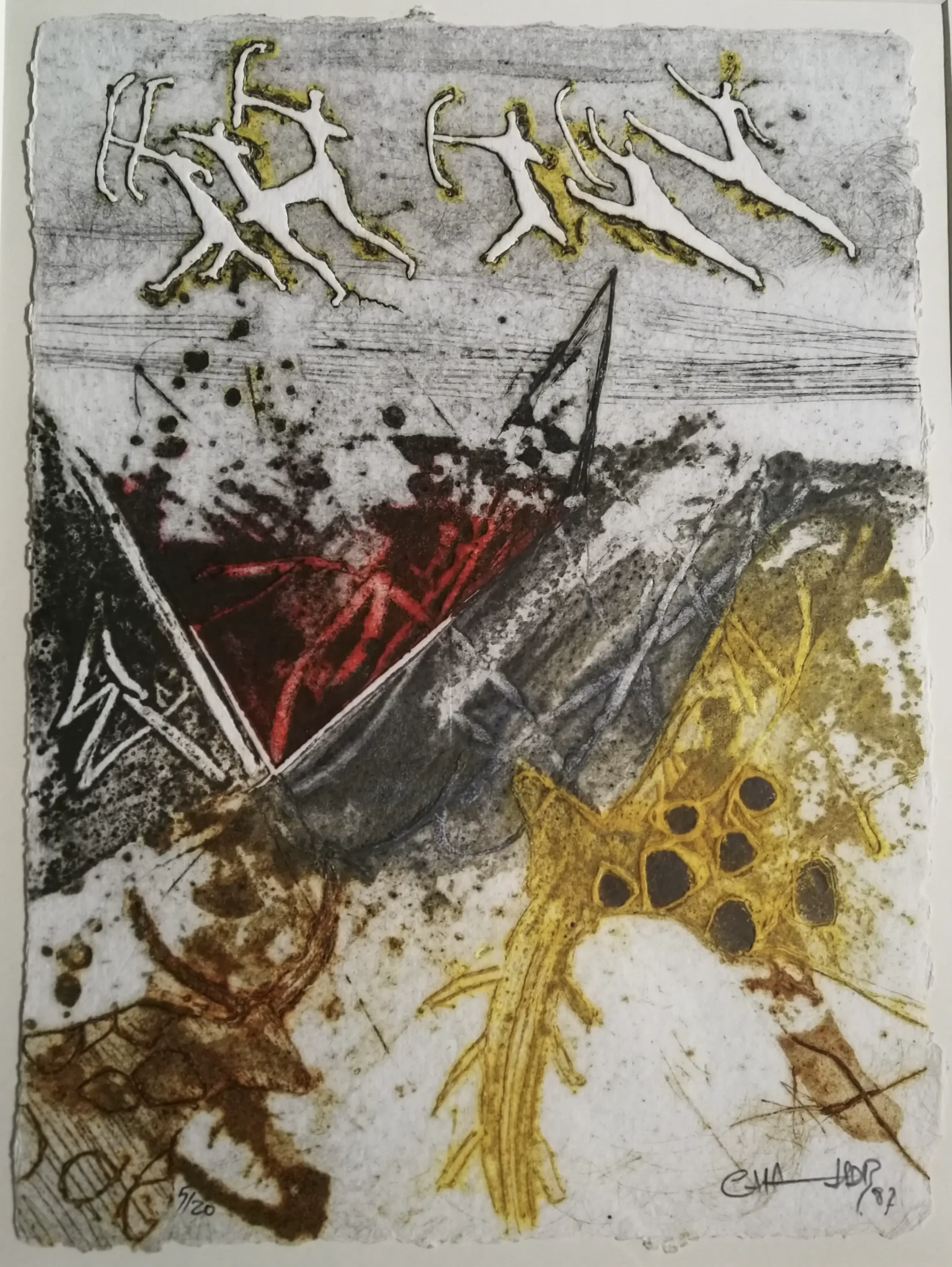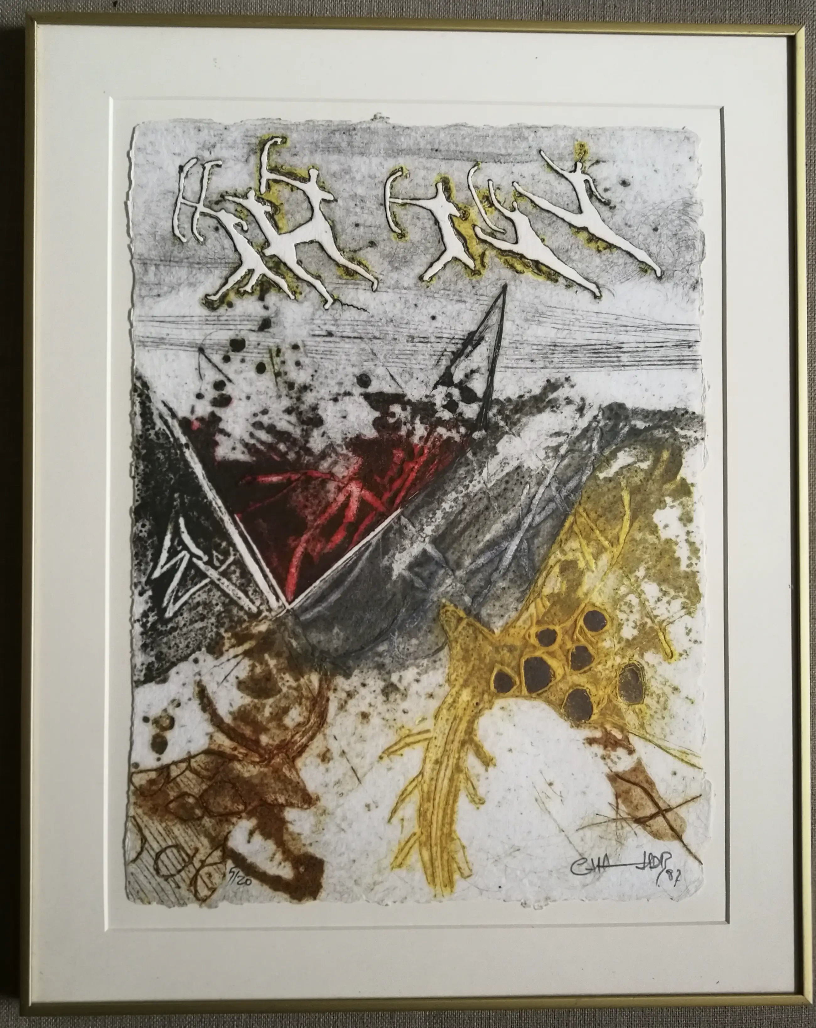Mooie reliefets op geschept papier van Chabab Tayefeh Mohajer , gesigneerd, gedateerd en genummerd in potlood. Fraai ingelijst met passe-partout achter glas in goudkleurige aluminiumlijst. verzending 9 euro, aangetekend 10,95